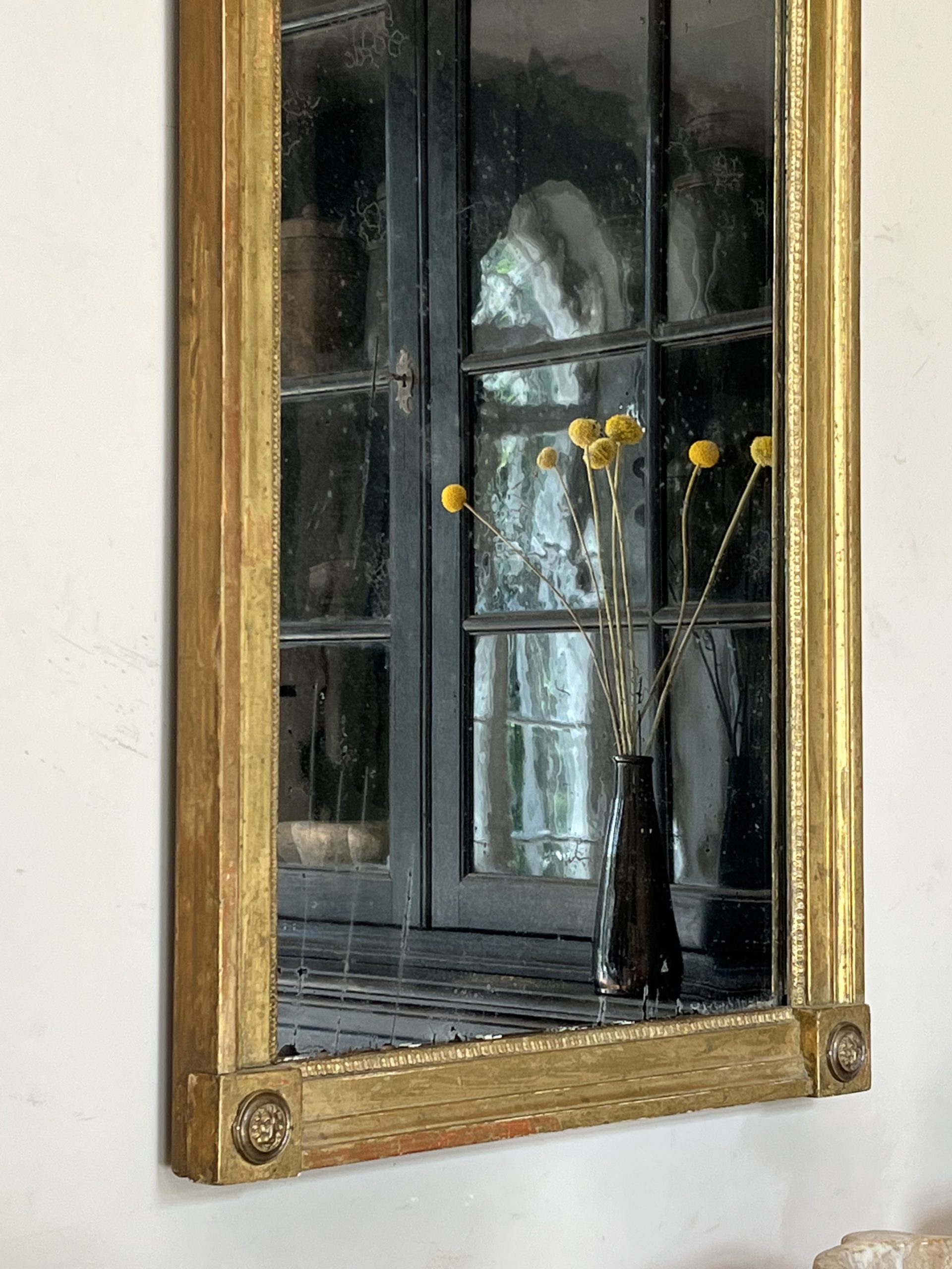 NEW ARRIVALS Late 18th Century Gild Wood Mirror Rectangular gilded mirror with lion heads in the corners. Wonderful patina and old mirror glass.hight 89 cm (35,03 in)width 49 cm (19,29 in)please contact for further info