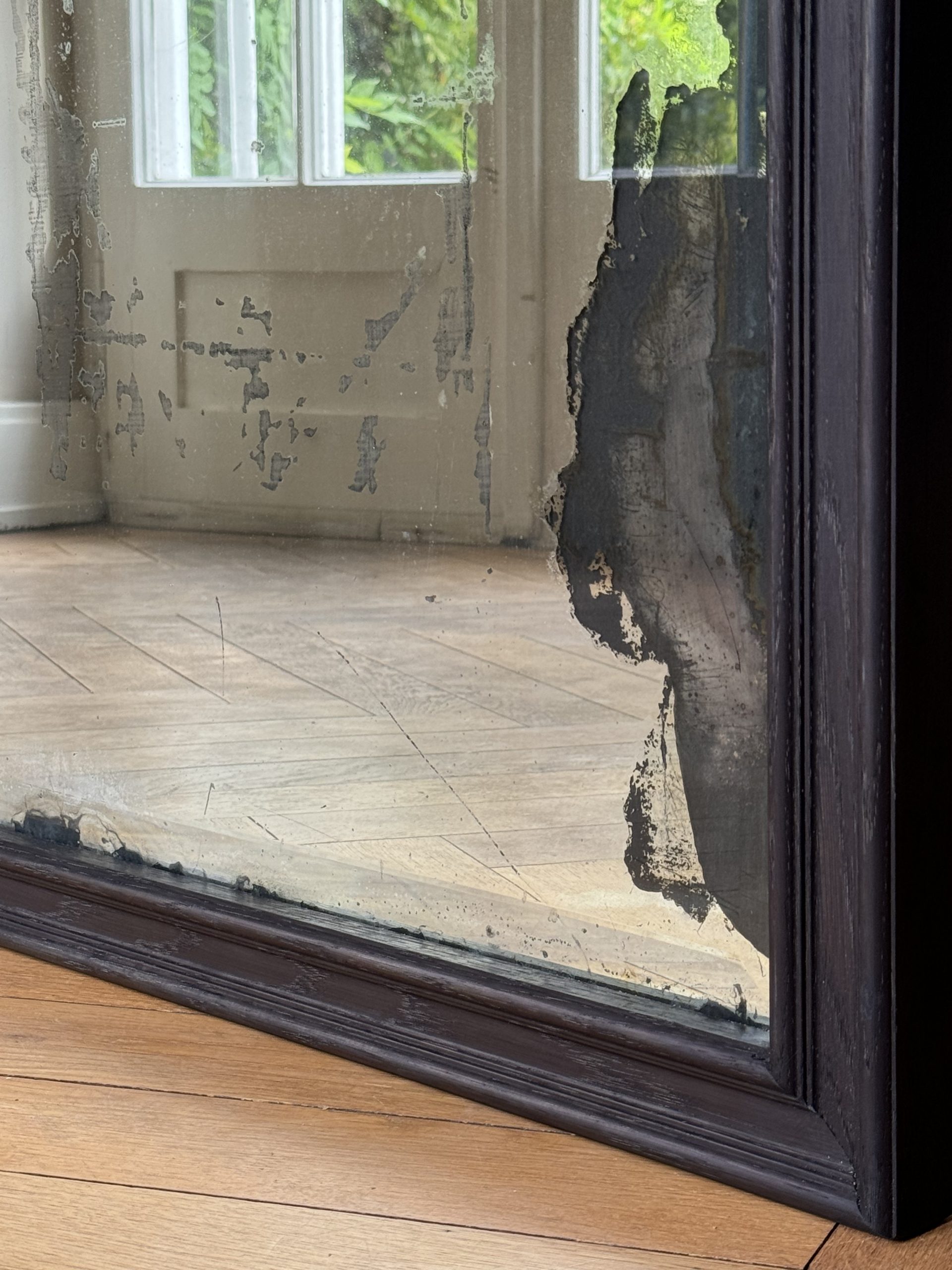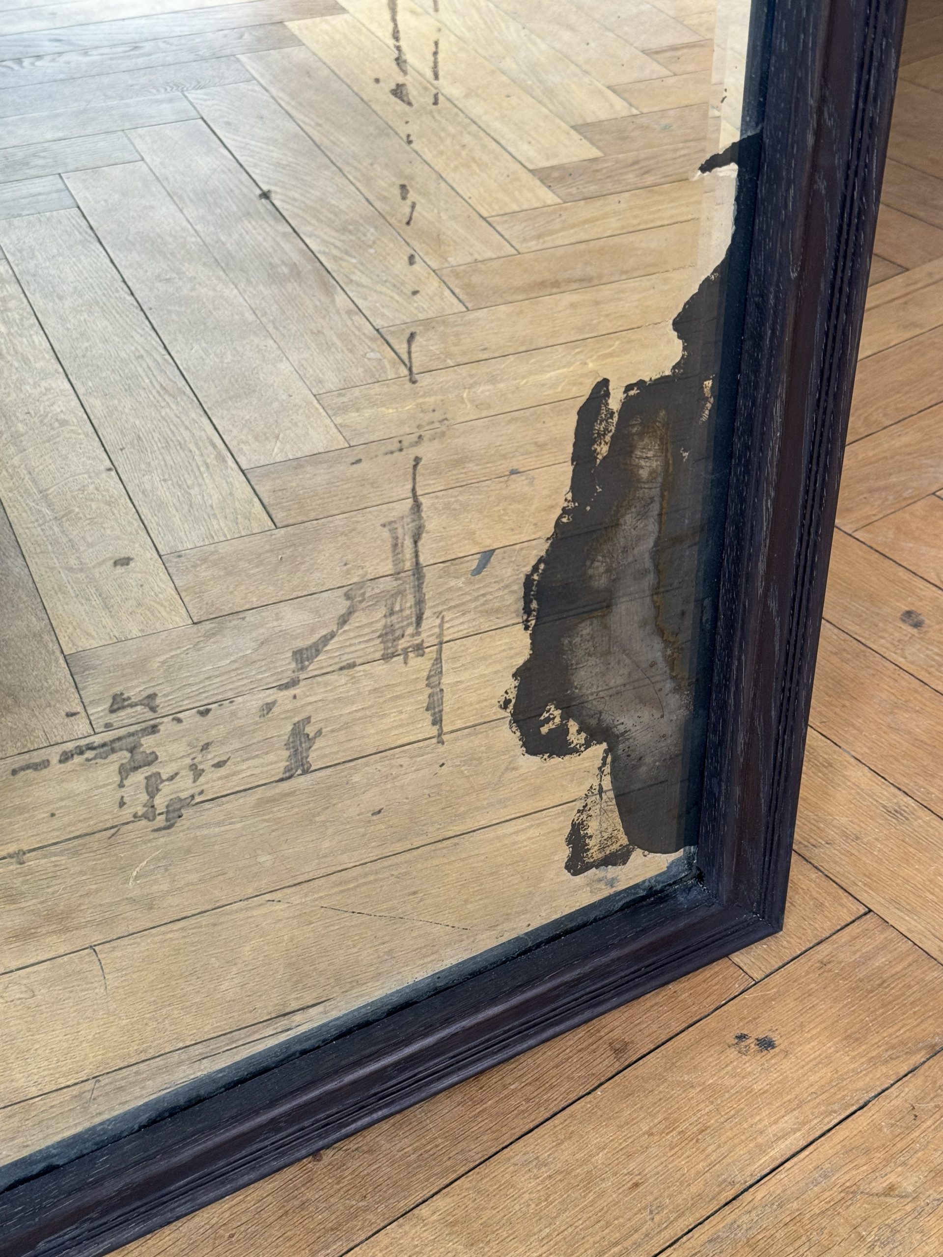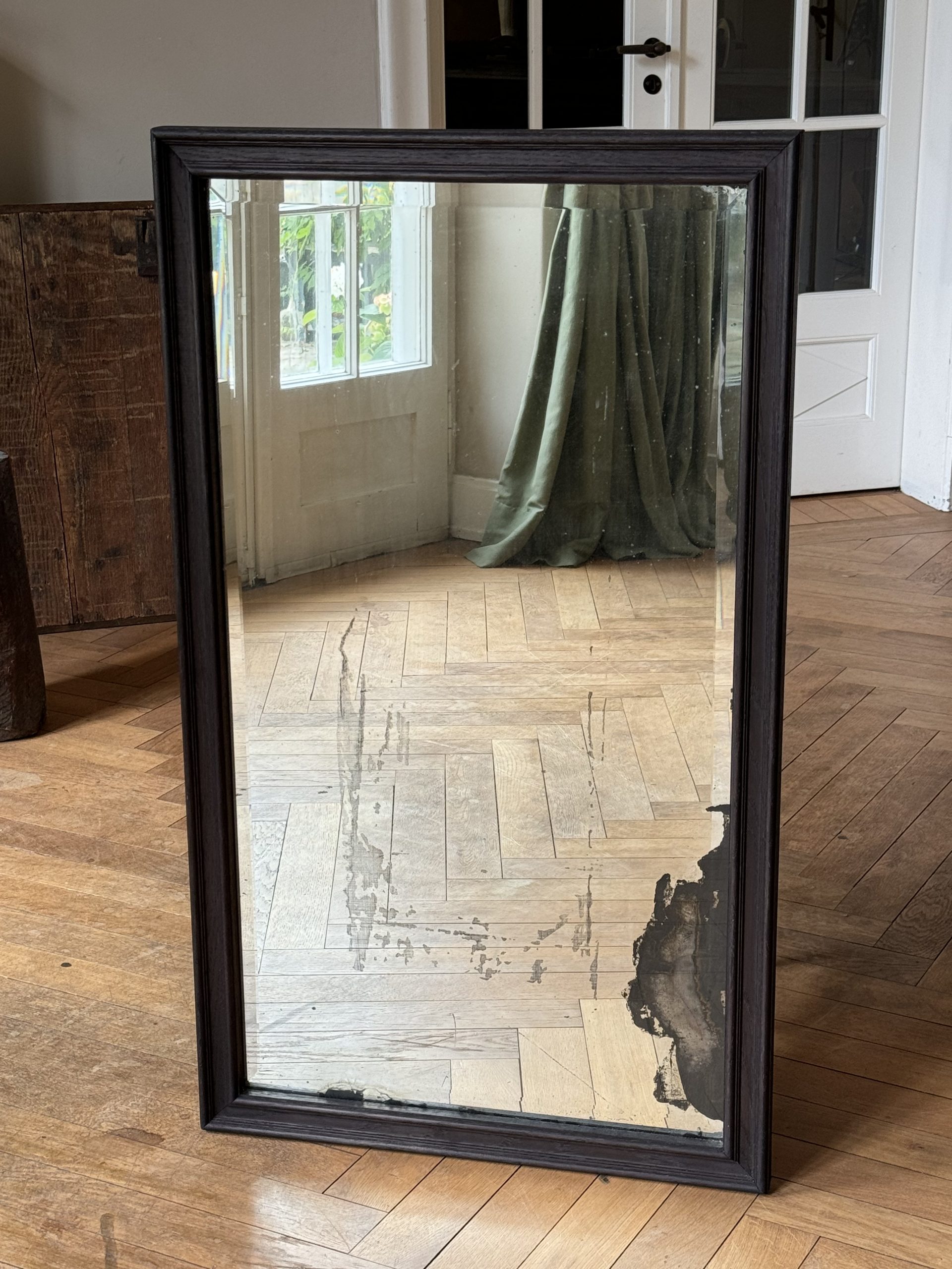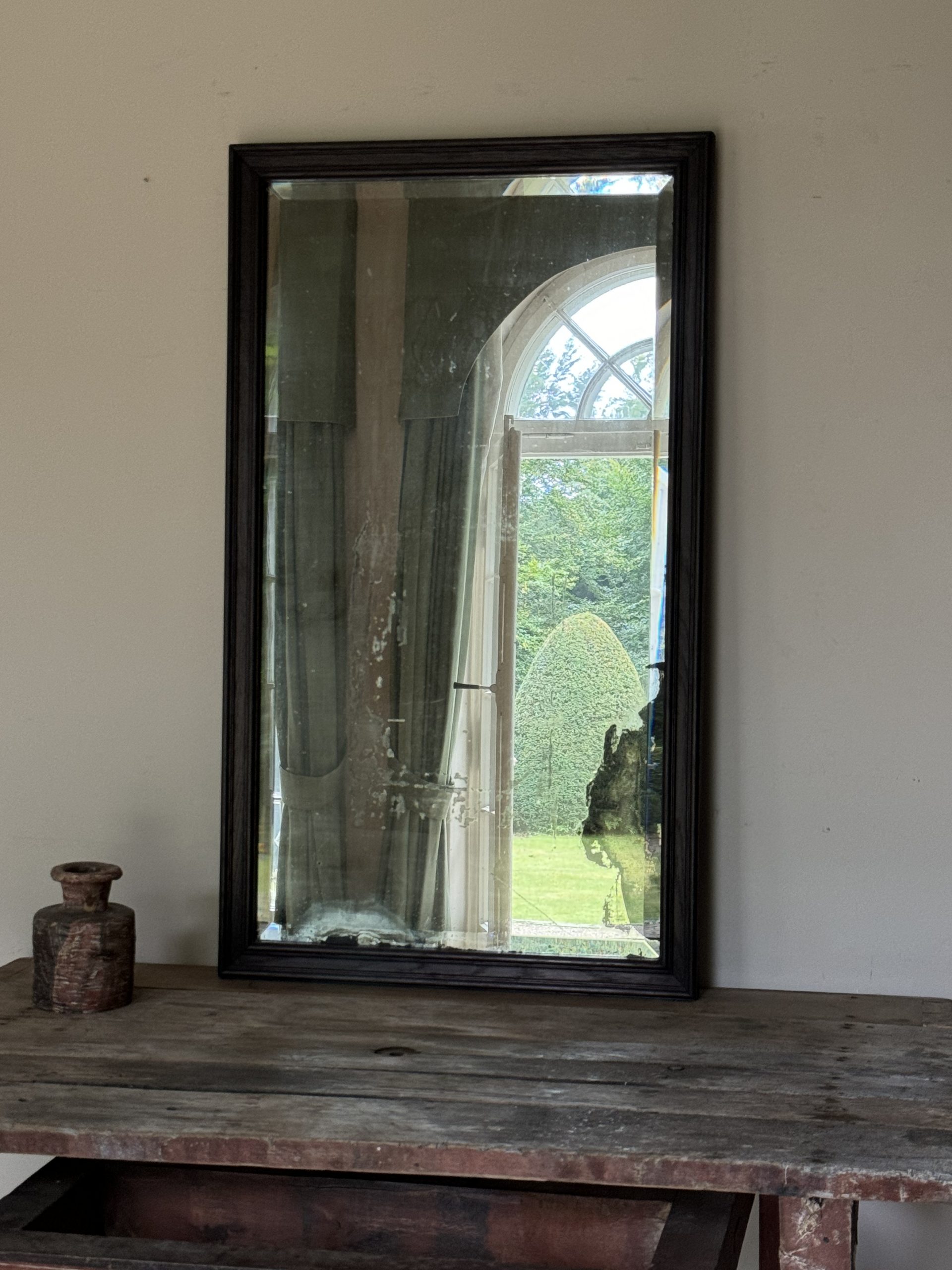 NEW ARRIVALS Ebonized Mirror Large antique mirror plate framed in a later ebonized oak frame.hight 114 cm (44,88 in)width 66 cm (25,98 in)please contact for further info