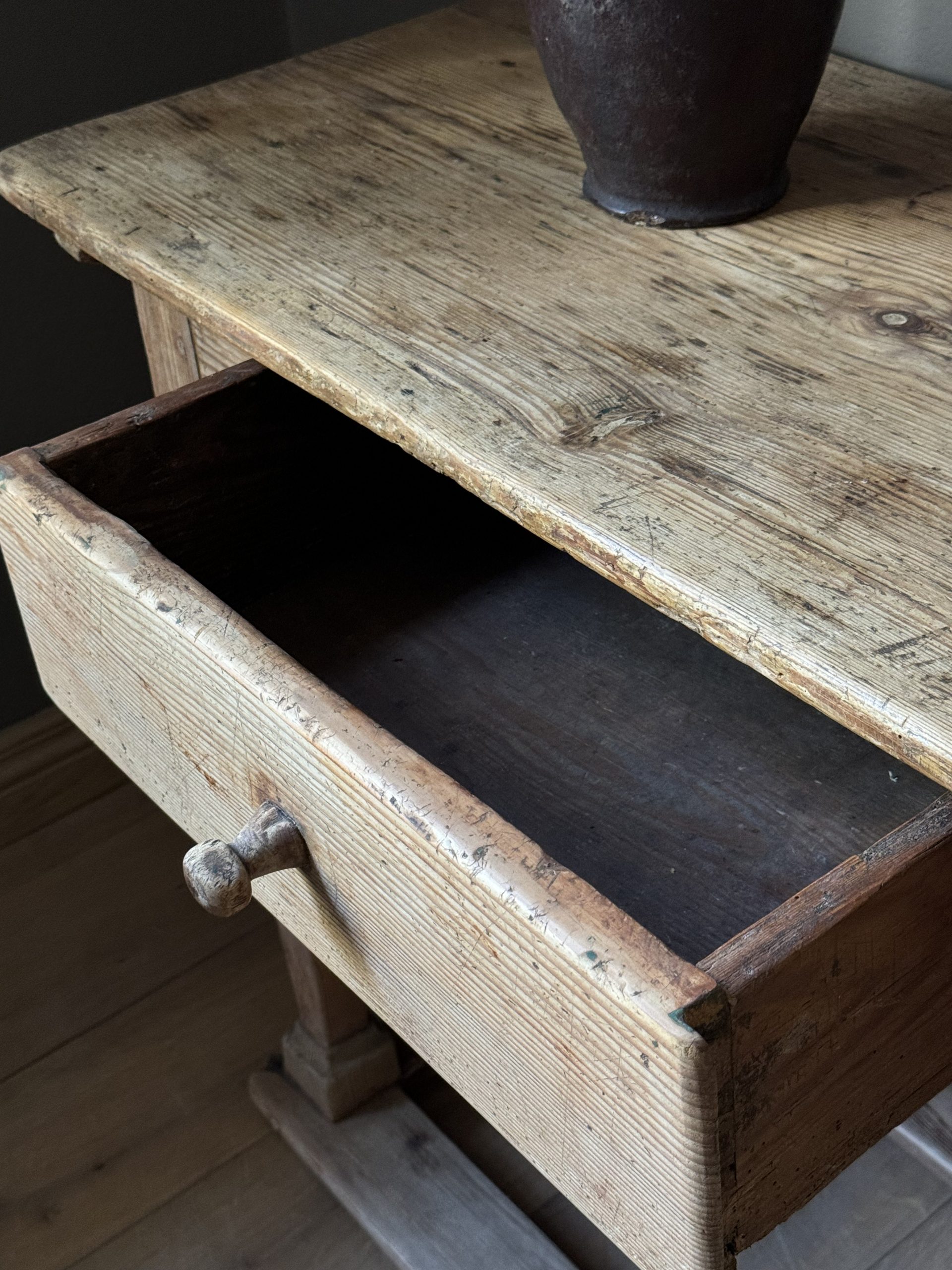 NEW ARRIVALS Swedish Baroque Side Table Charming Swedish 18th Century pine side table with drawer.hight 76 cm (29,92 in)depth 43,5 cm (17,12 in)width 97 cm (38,18 in)on hold