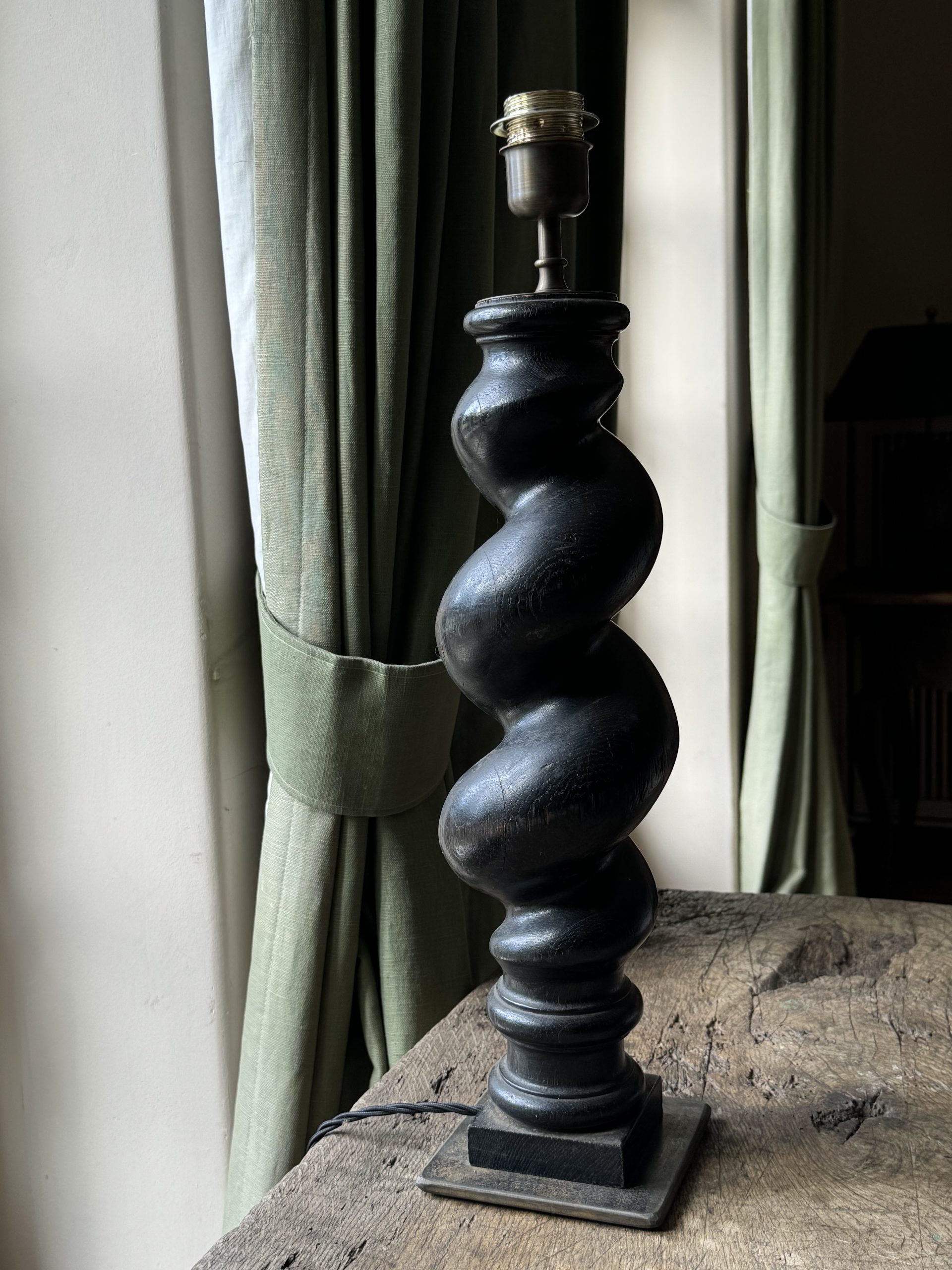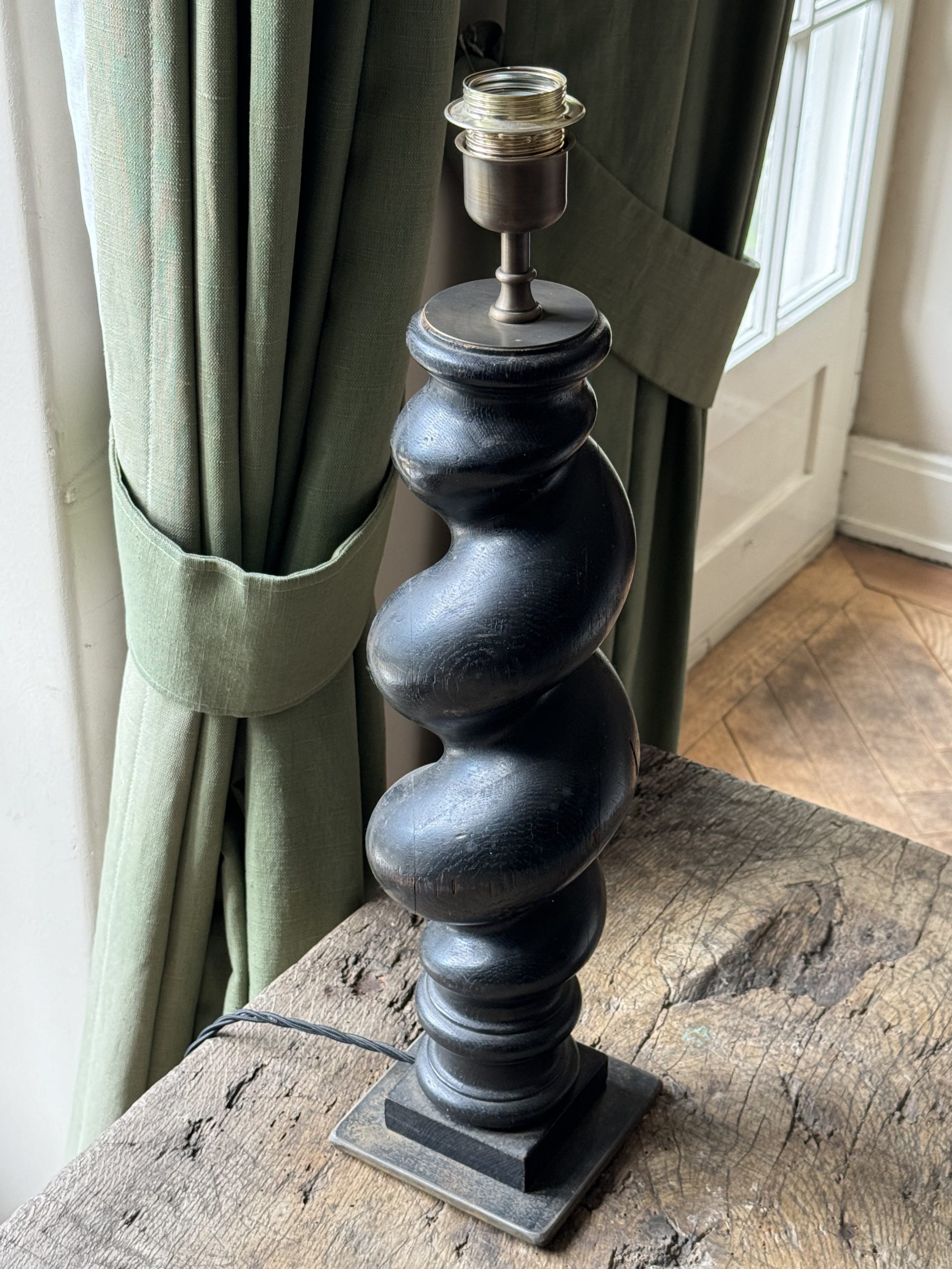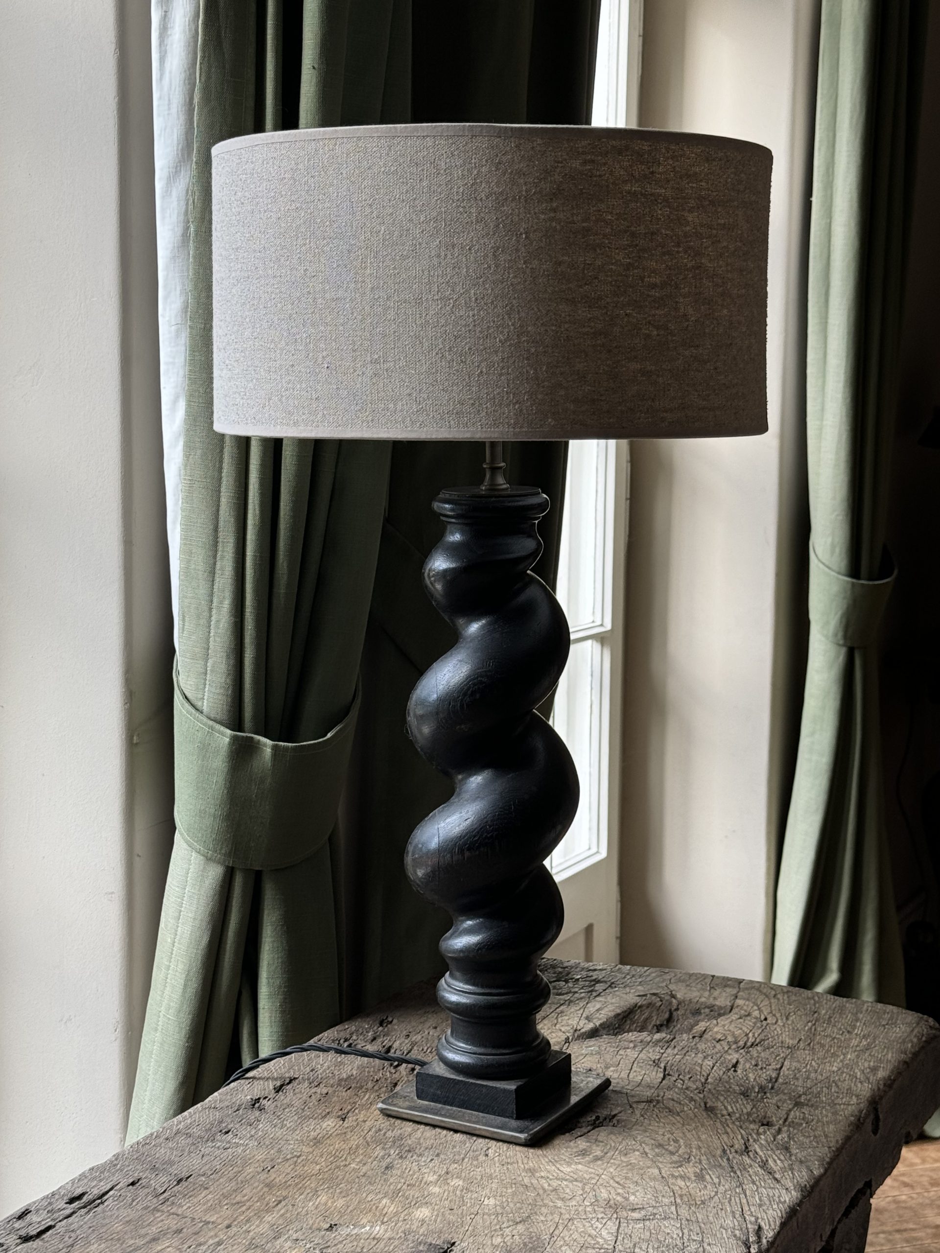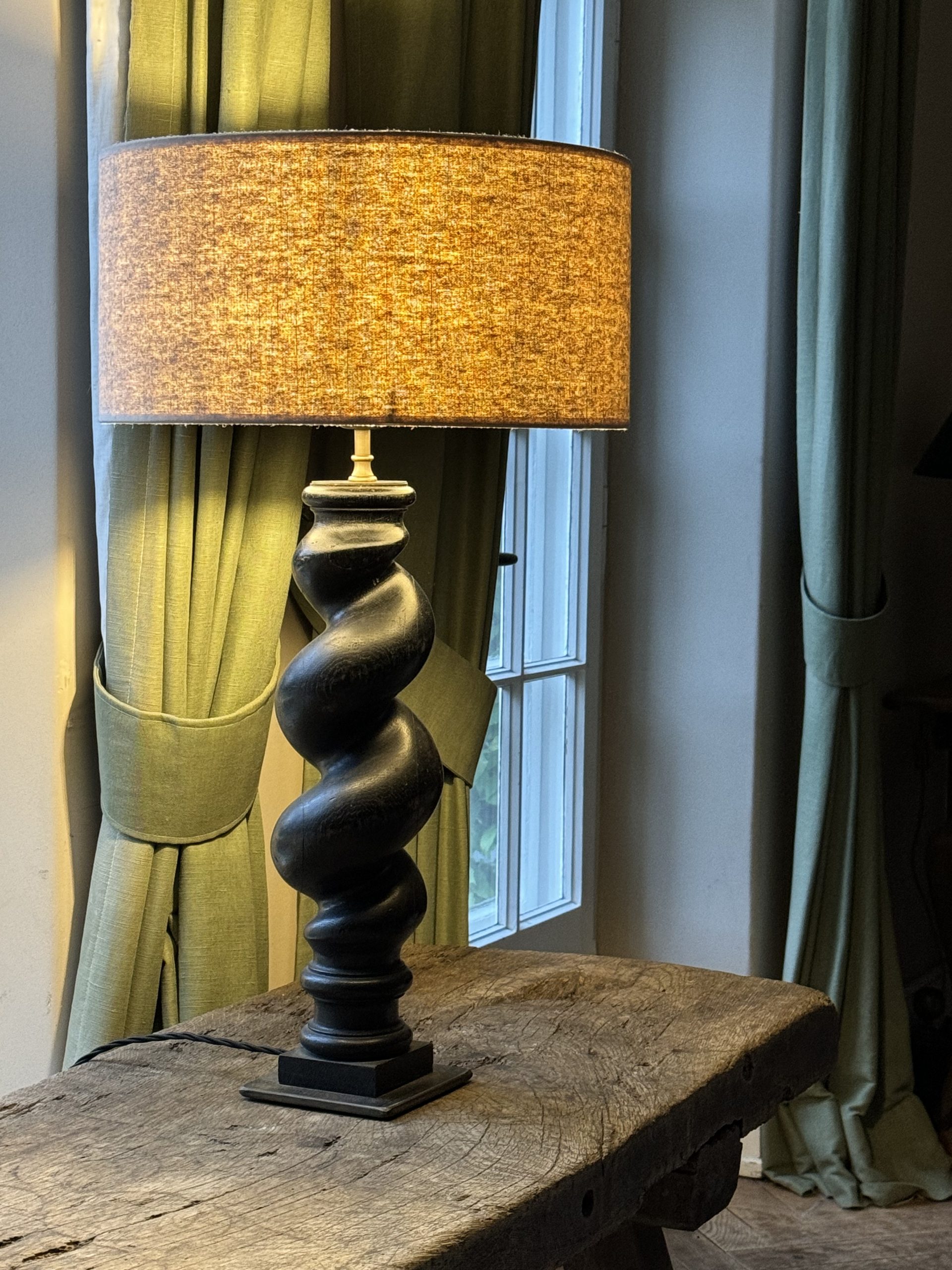 NEW ARRIVALS Table Lamp No. 2 Antique wooden column (18th Century). Hand patinated brass parts, safety fabric cablehight (top edge of lampshade) 72 cm (28,34 in)diameter lampshade 40 cm (15,74 in)diameter column 13 cm (5,11 in)please contact for further info