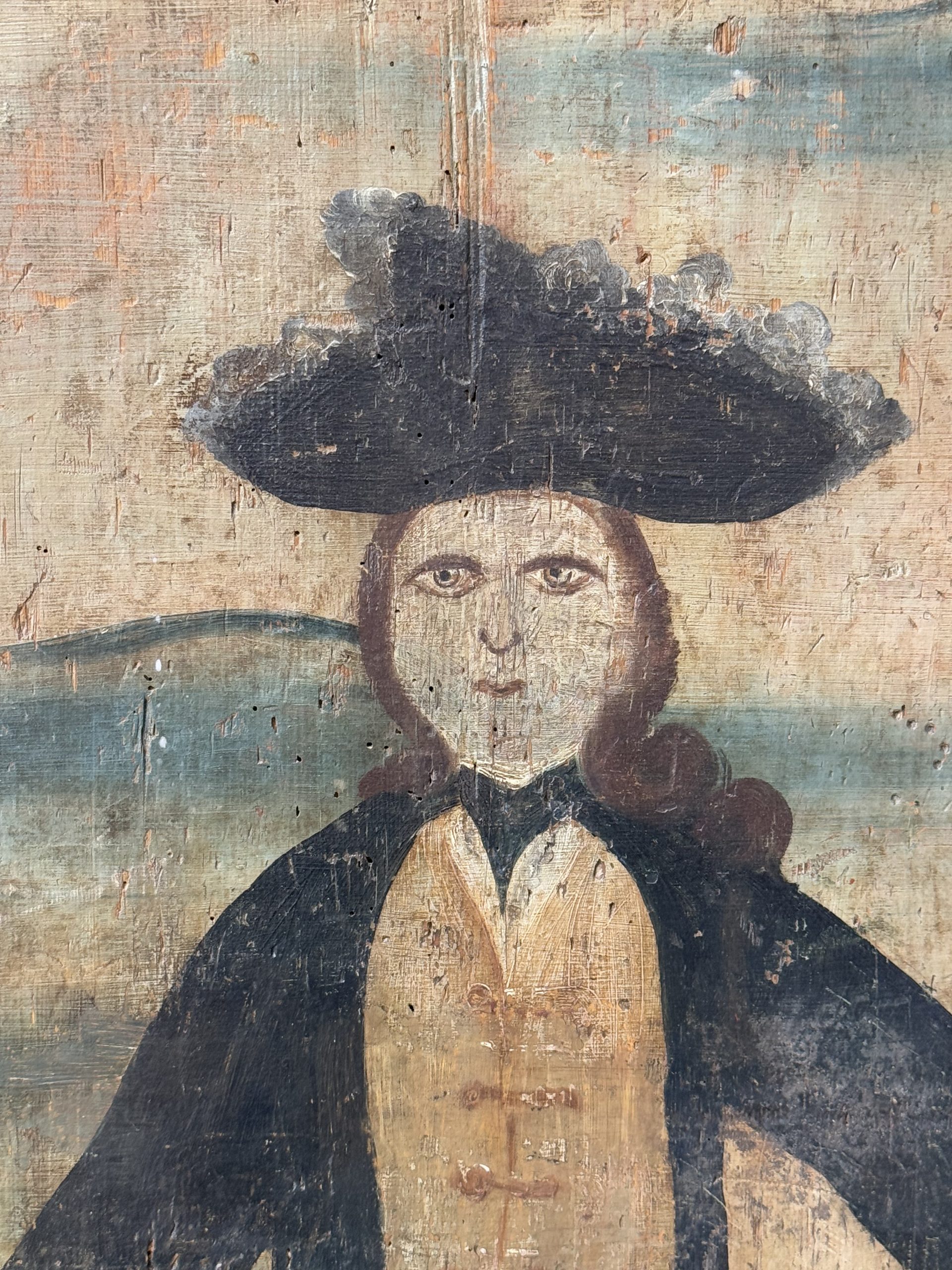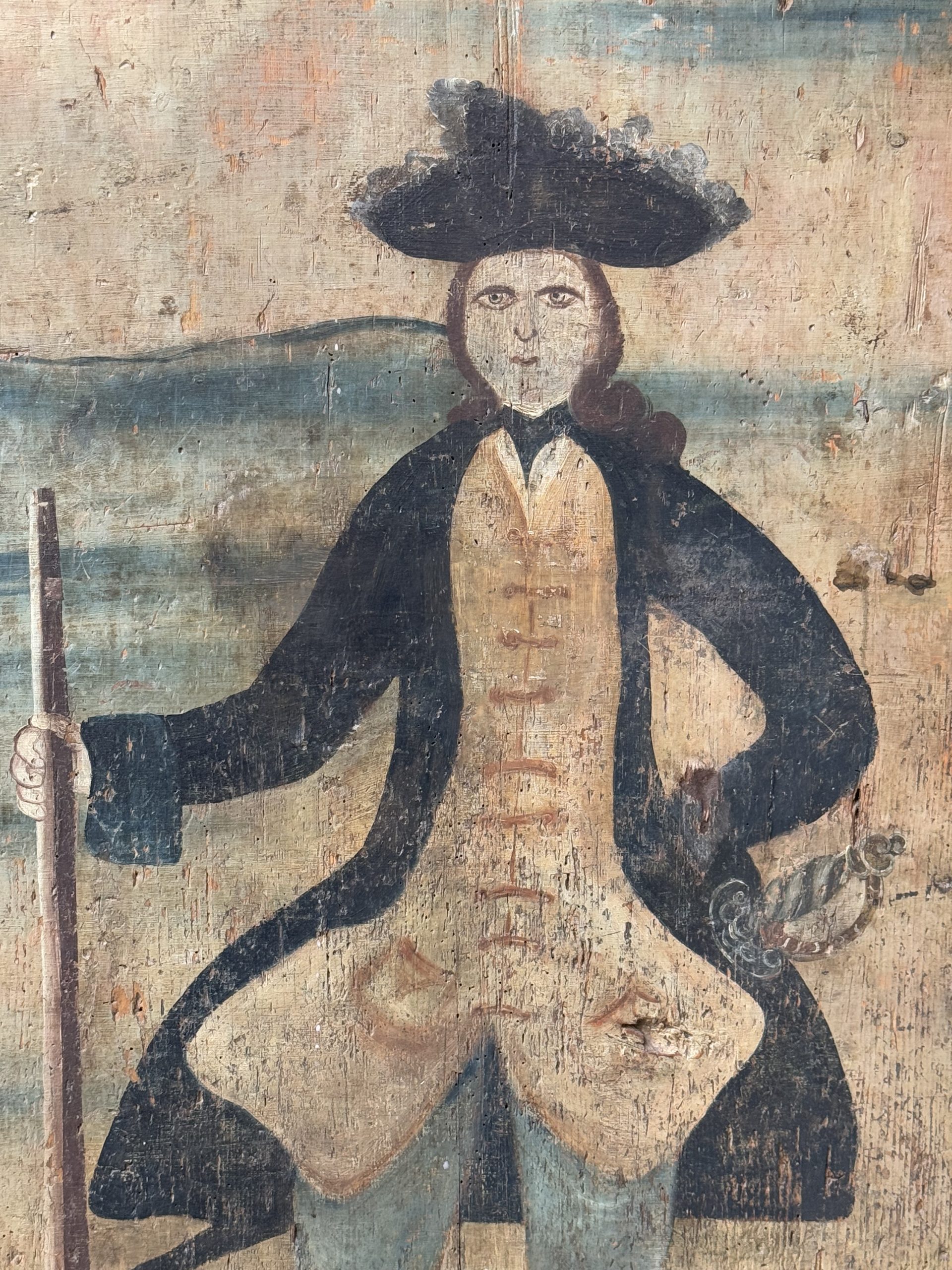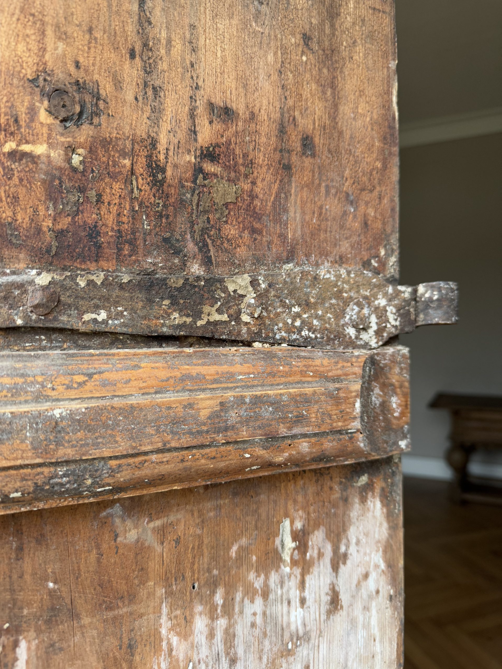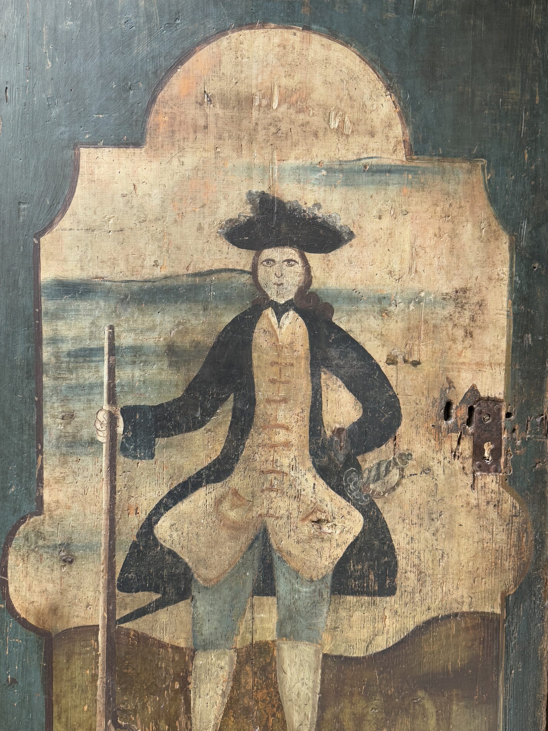 NEW ARRIVALS Painted Baroque Door From Around 1750 Rare 18th Century painted door. Soldier on top of the mountains. Lovely to build into a house or hang on the wall.hight 172,5 cm (67,91 in)depth 3,5 / 5,5 cm (1,37 in / 2,16 in)please contact for further info