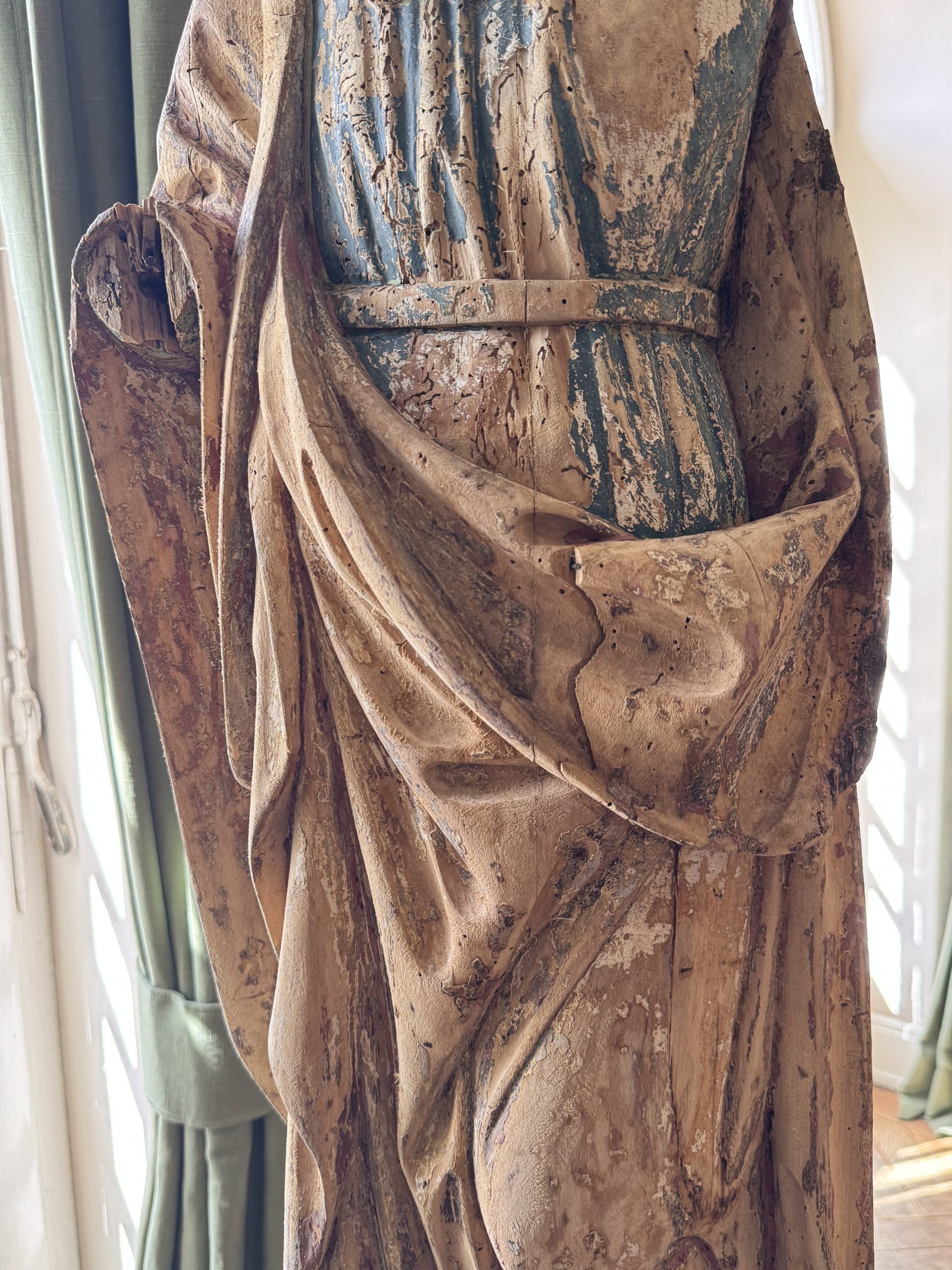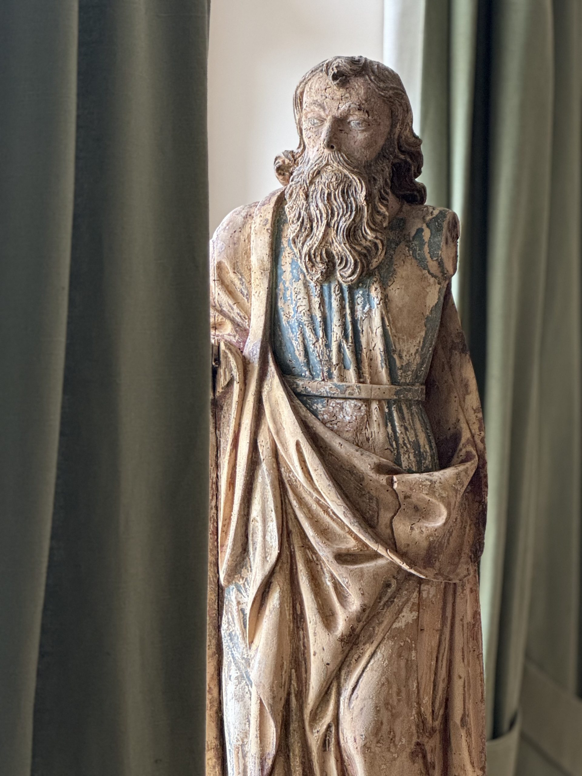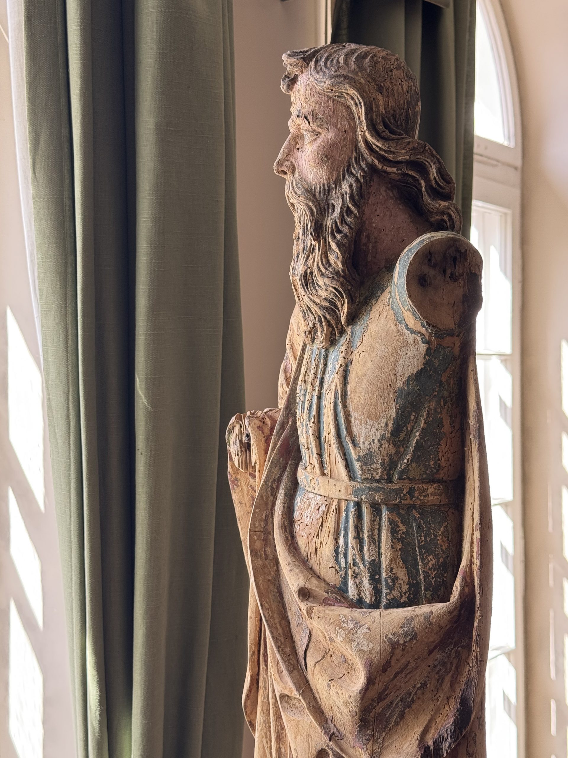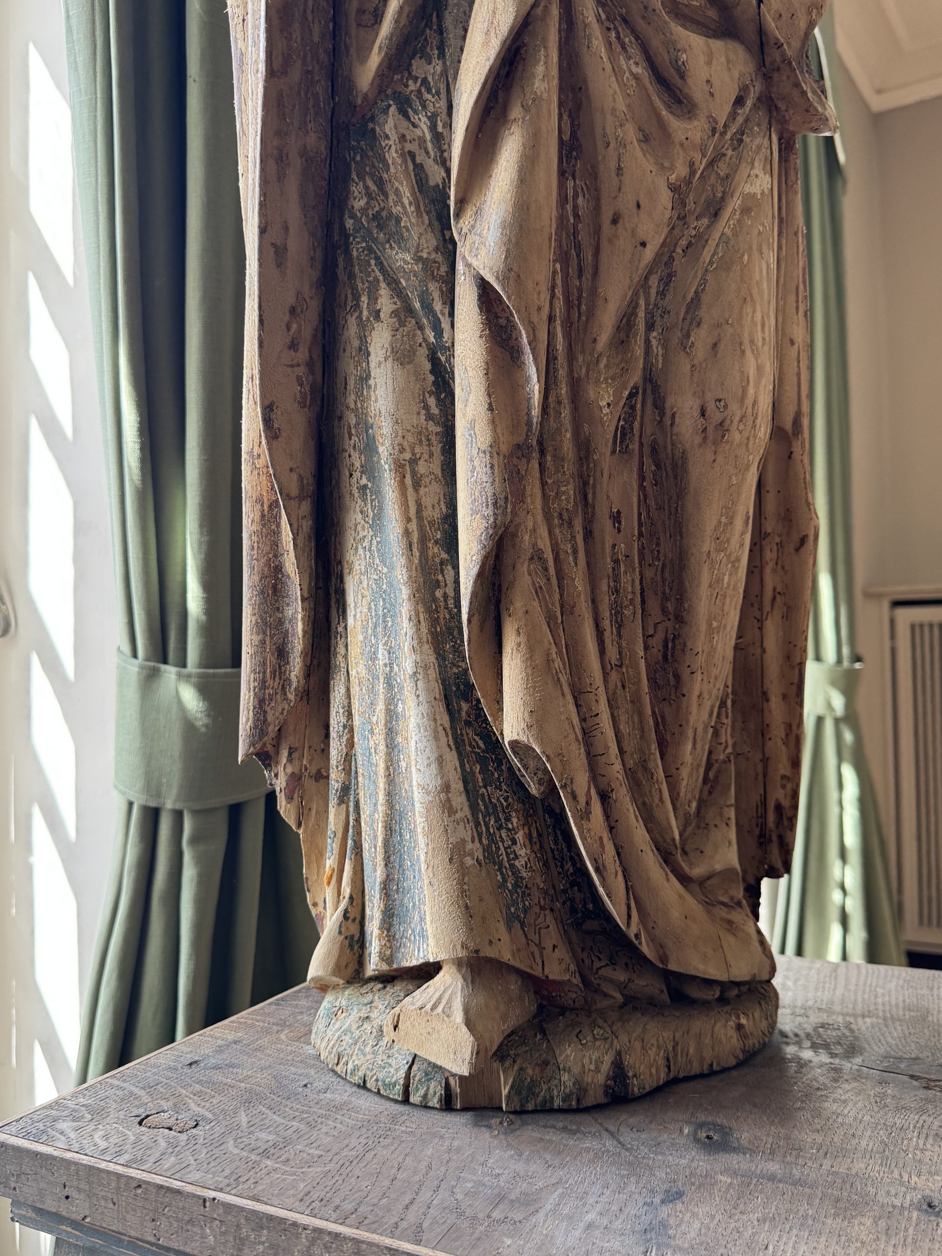 NEW ARRIVALS Large Linden Wood Sculpture - Italy 16th -17th Century Early detailed carved Petrus sculpture with rests of old paint.hight 105 cm (41,33 in)depth 18 cm (7,06 in)width 35 cm (13,77 in)please contact for further info