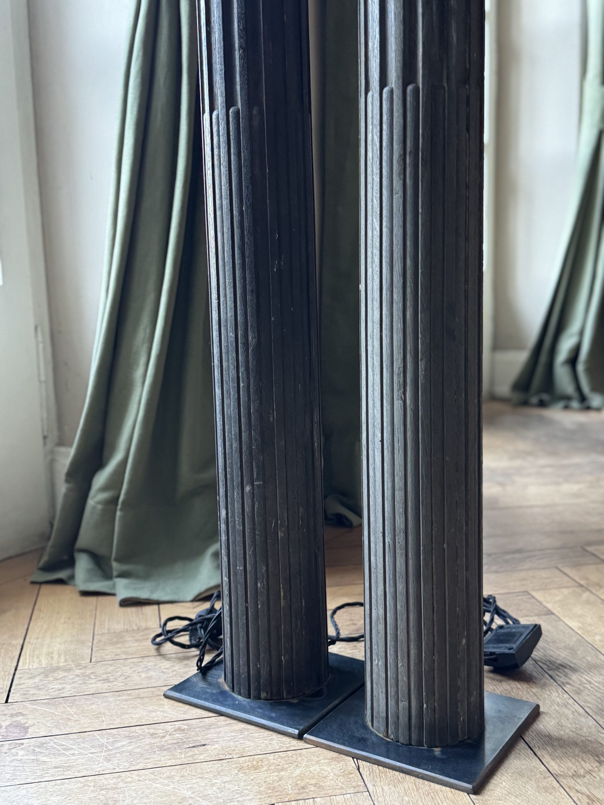 Pair of Floor Lamps - Carved Wooden Columns From Around 1780