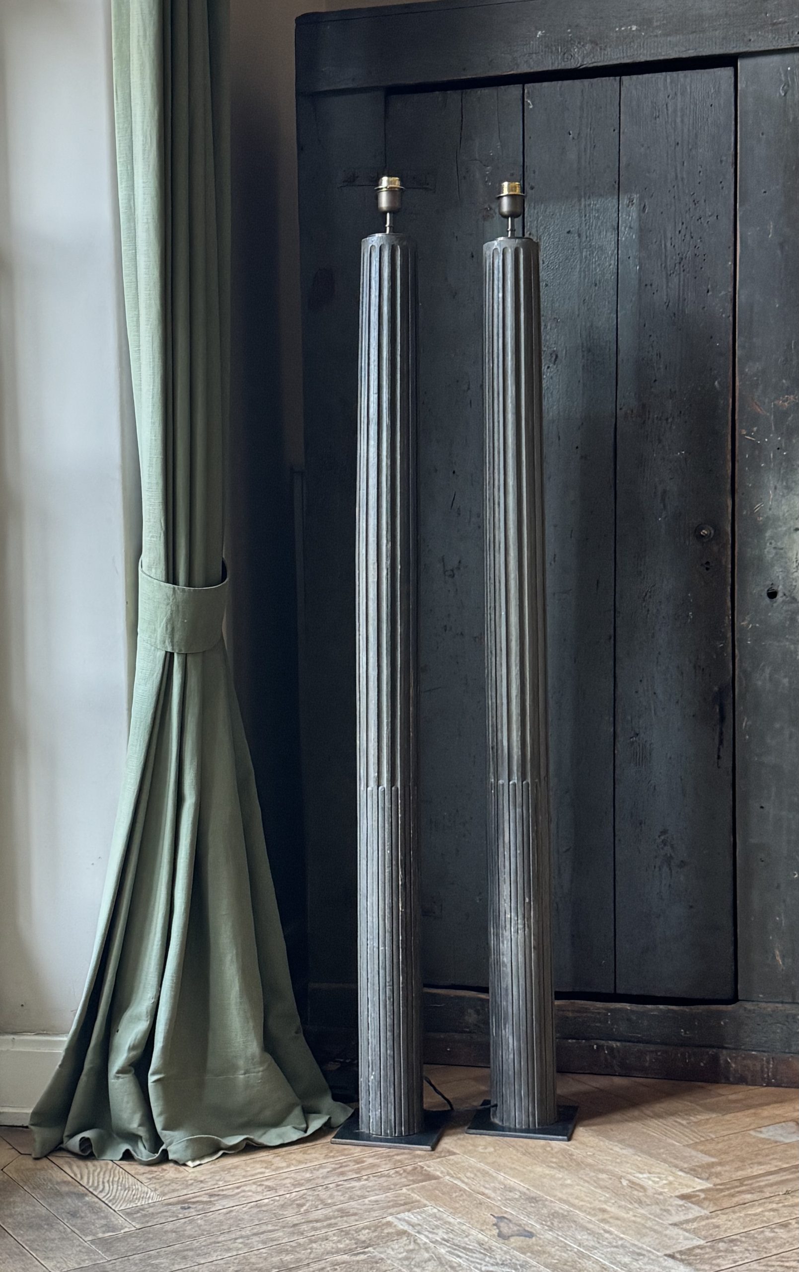 Unique pair of floor lamps made from late 18th Century Columns. Amazing dark colour & patina.