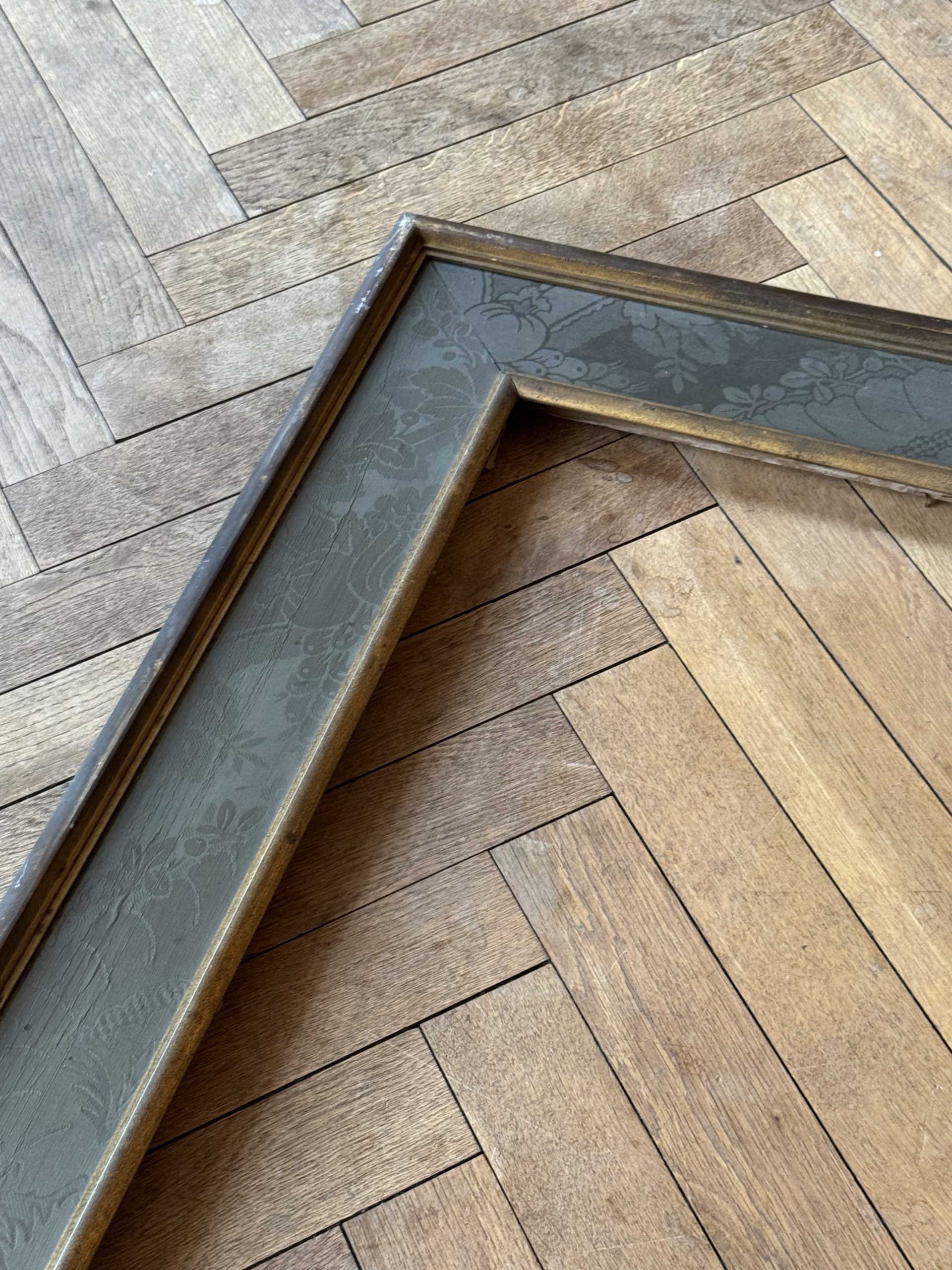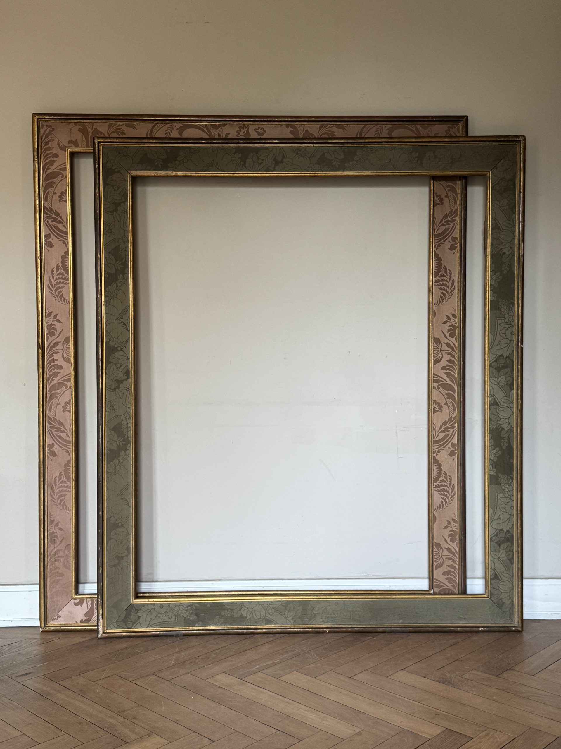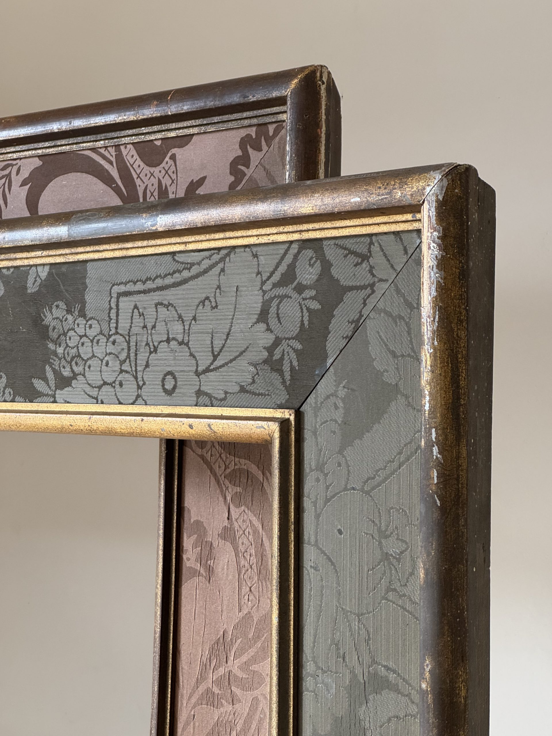 Impressive & very rare silk covered frames from an old Paris town house. Lovely patina & visible history.