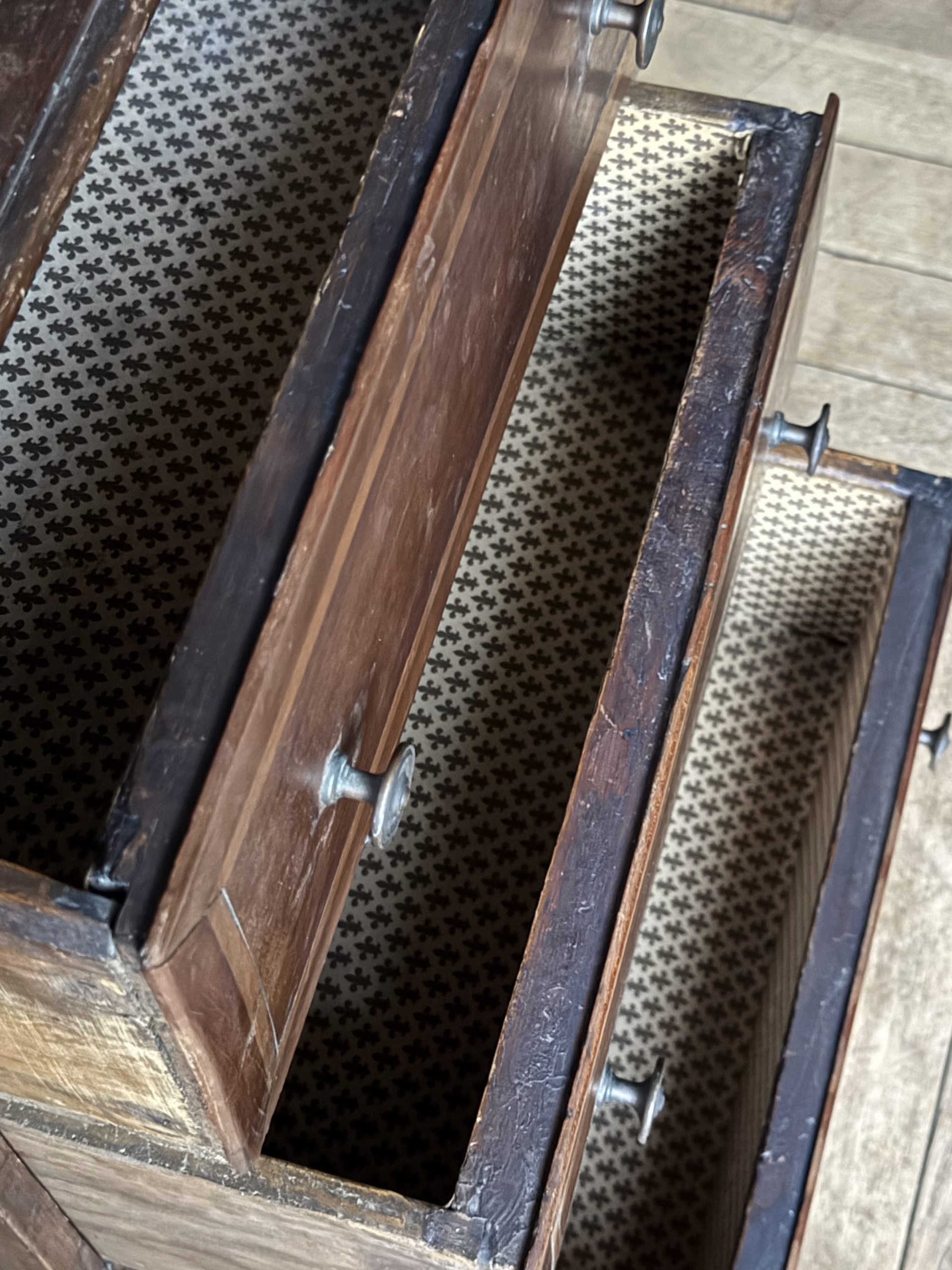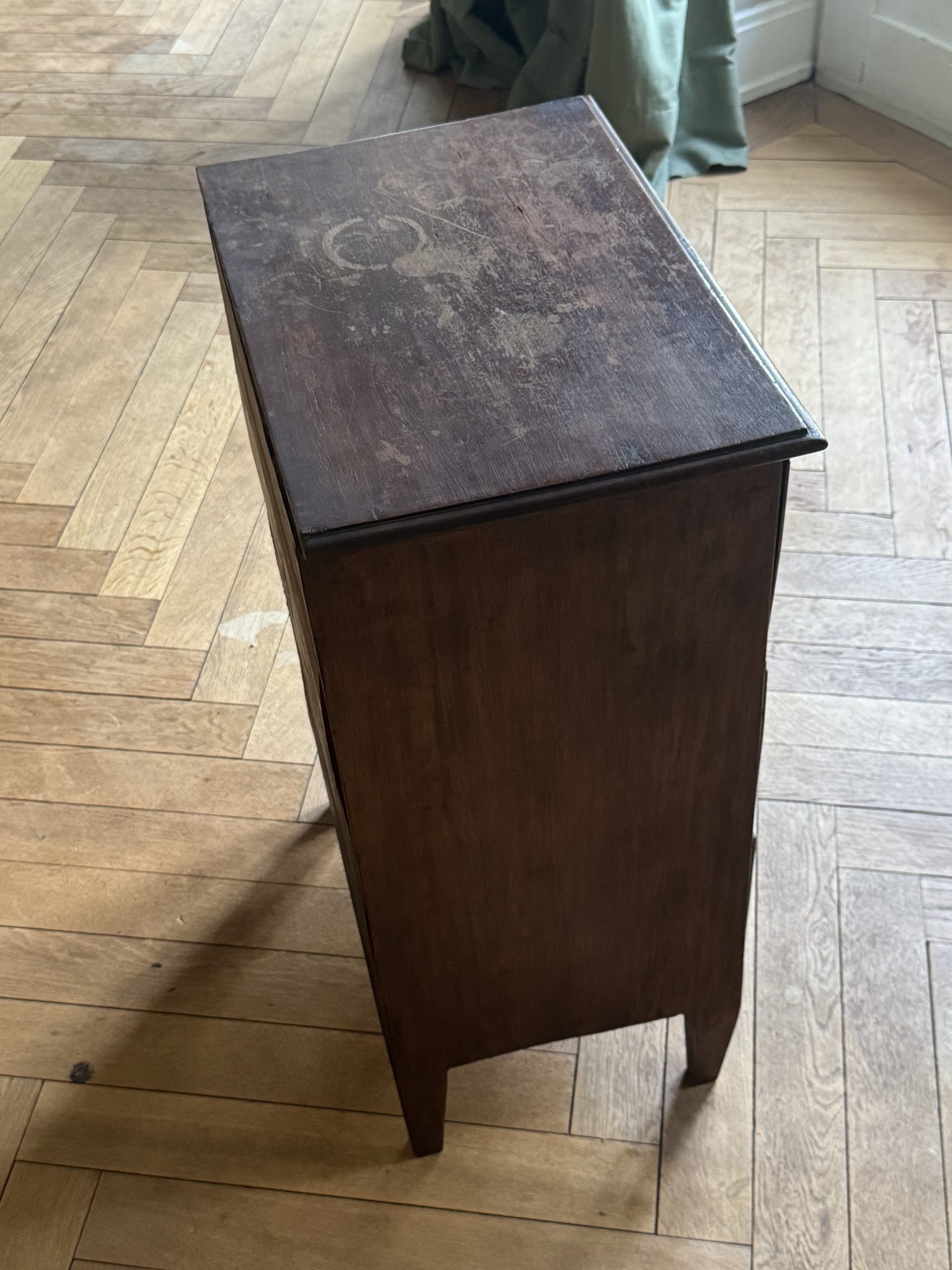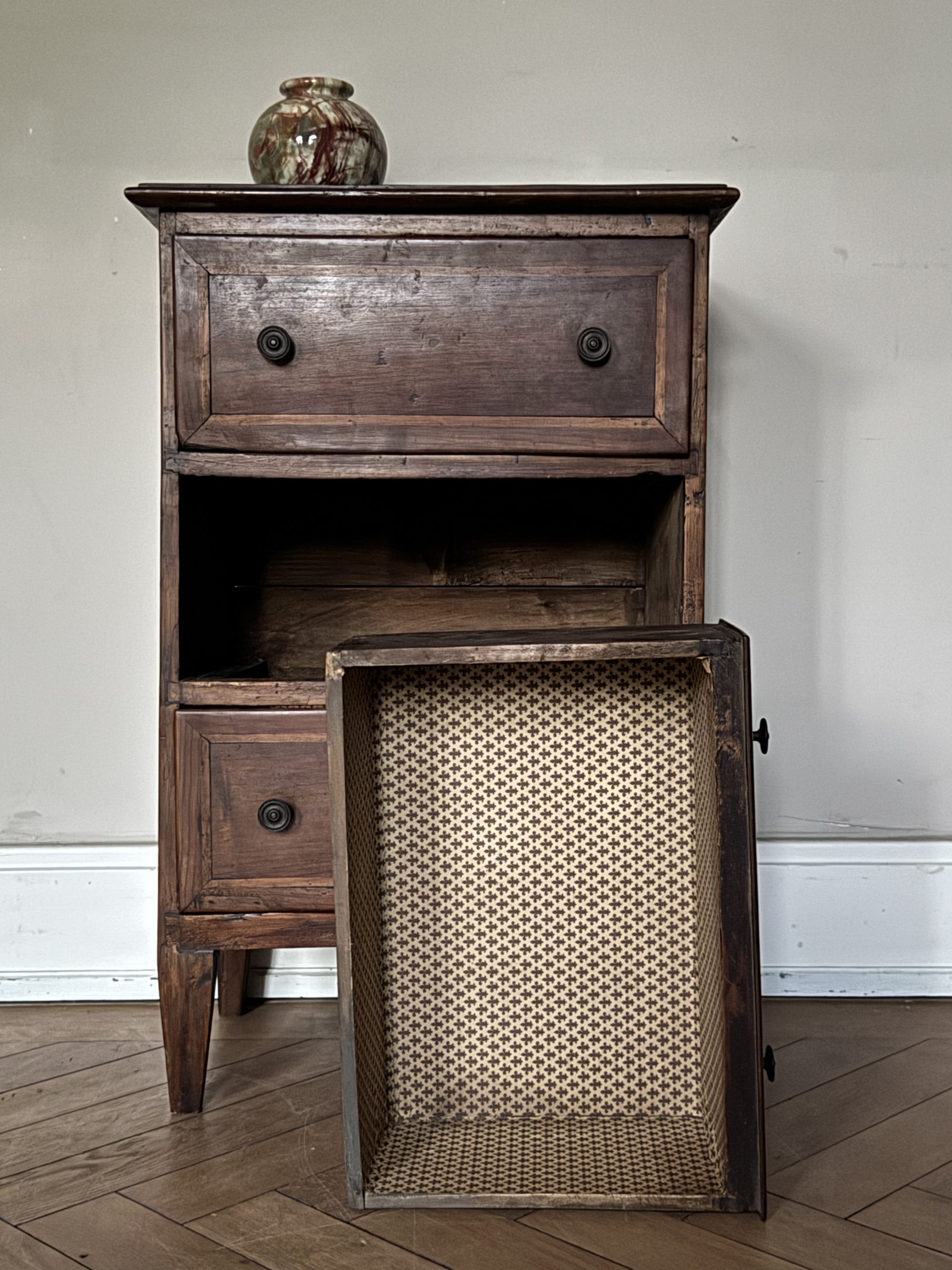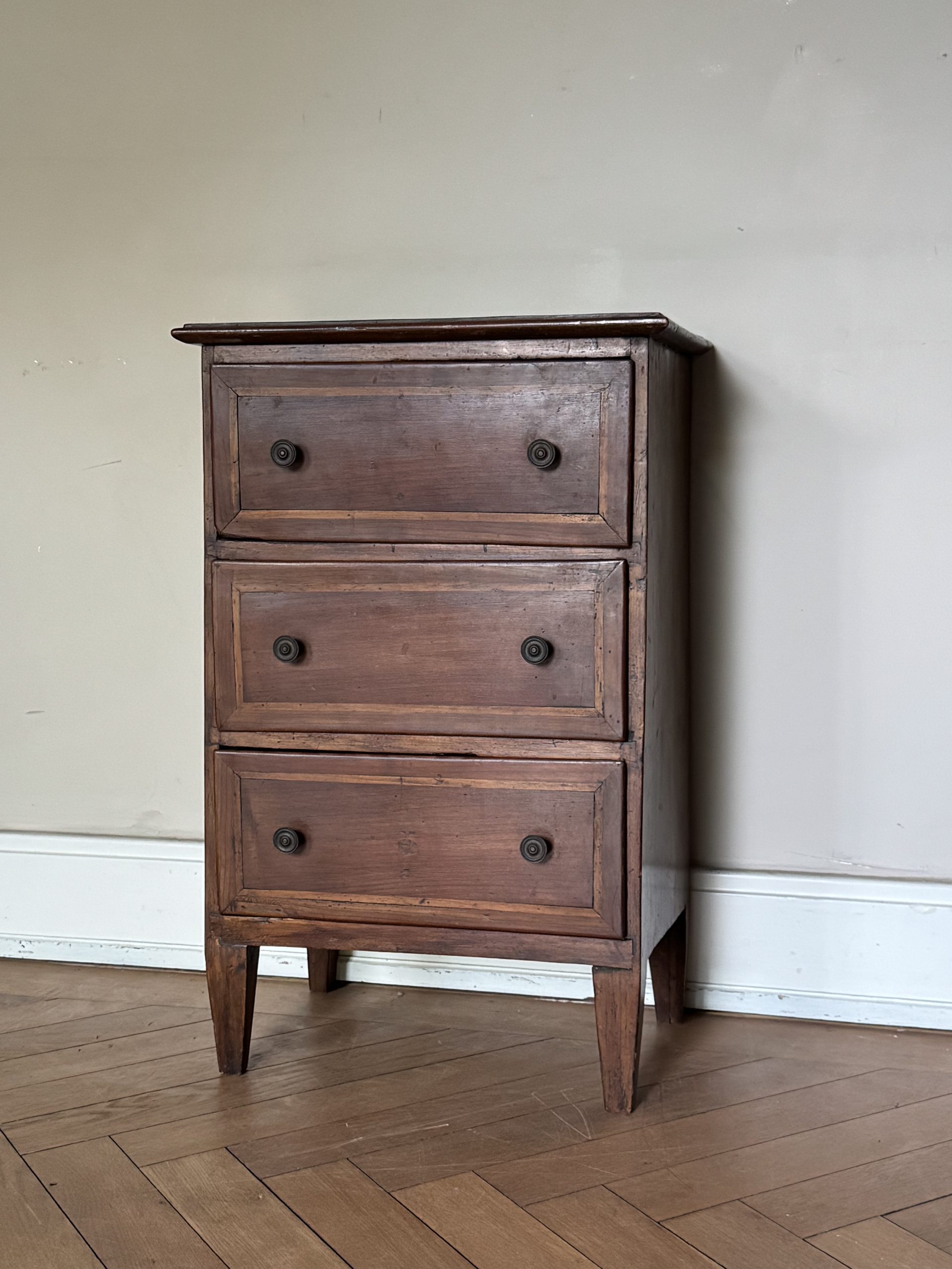 NEW ARRIVALS Small Walnut Commode Lovely walnut commode with rare dimensions. Drawers lined with wallpaper.hight 78 cm (30,70 in)depth 33,5 cm (13,18 in)width 50 cm (19,68 in)please contact for further info