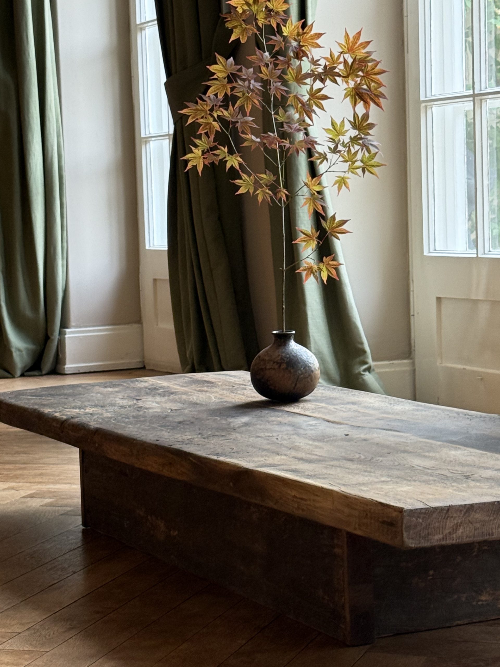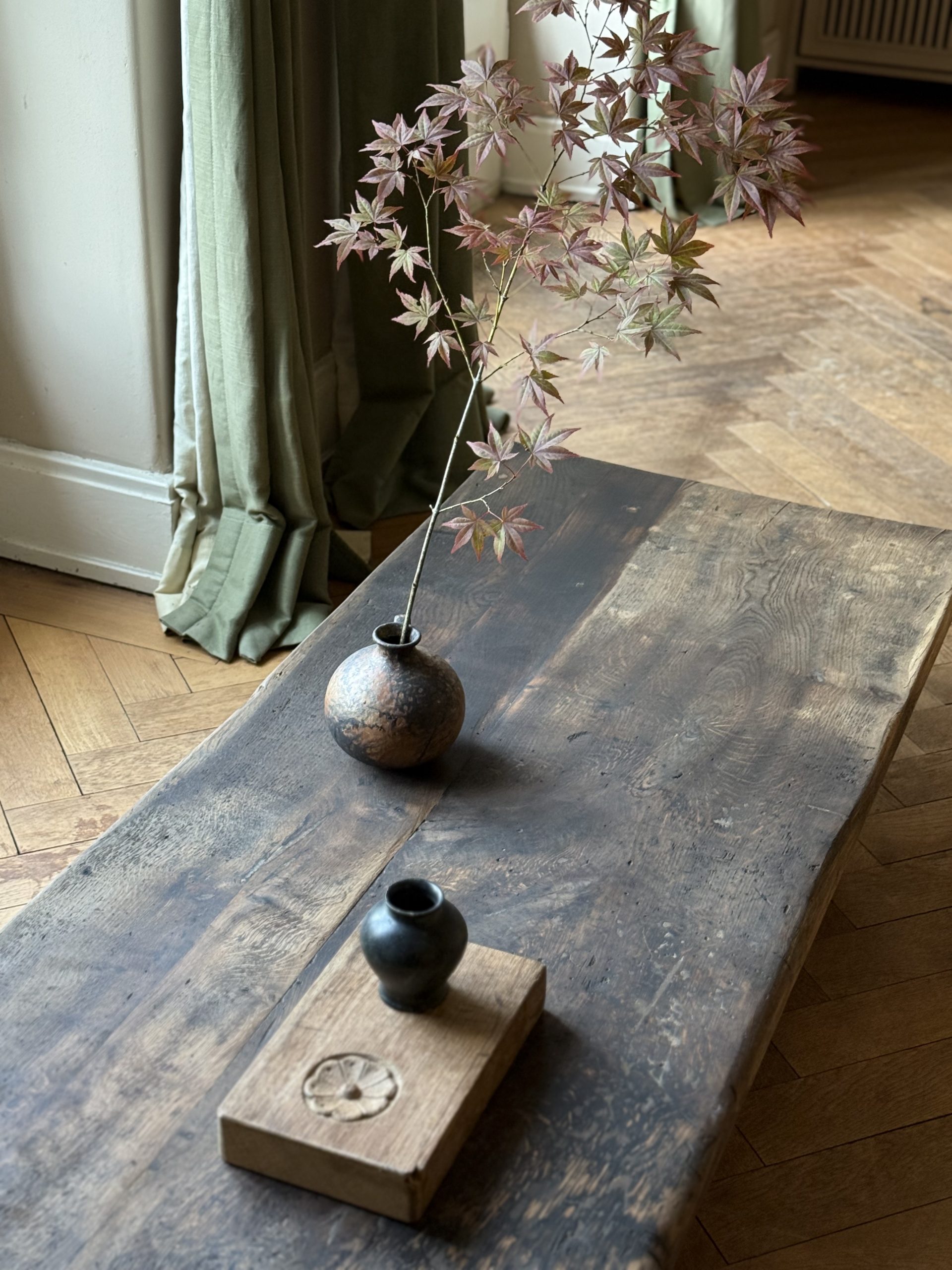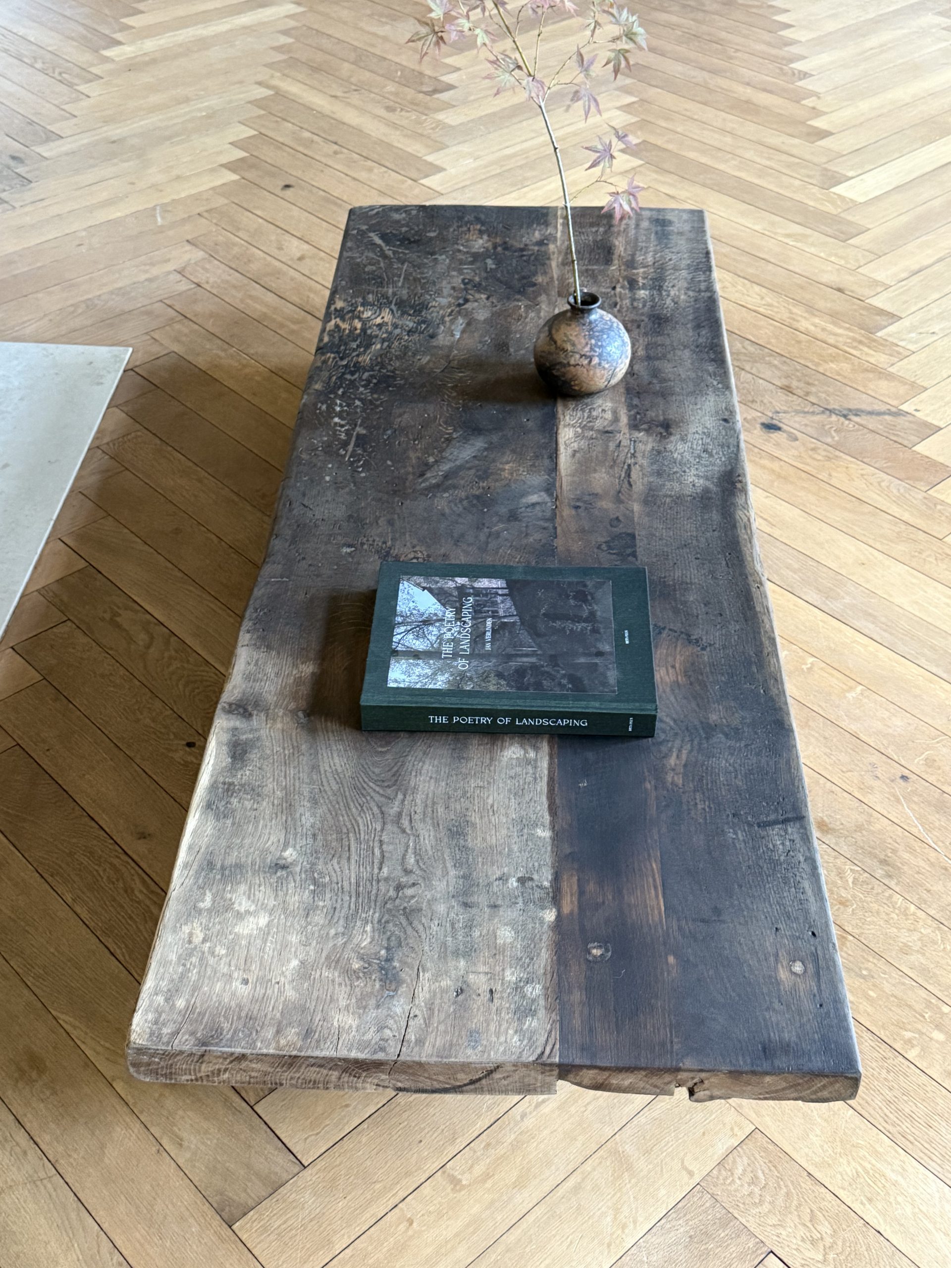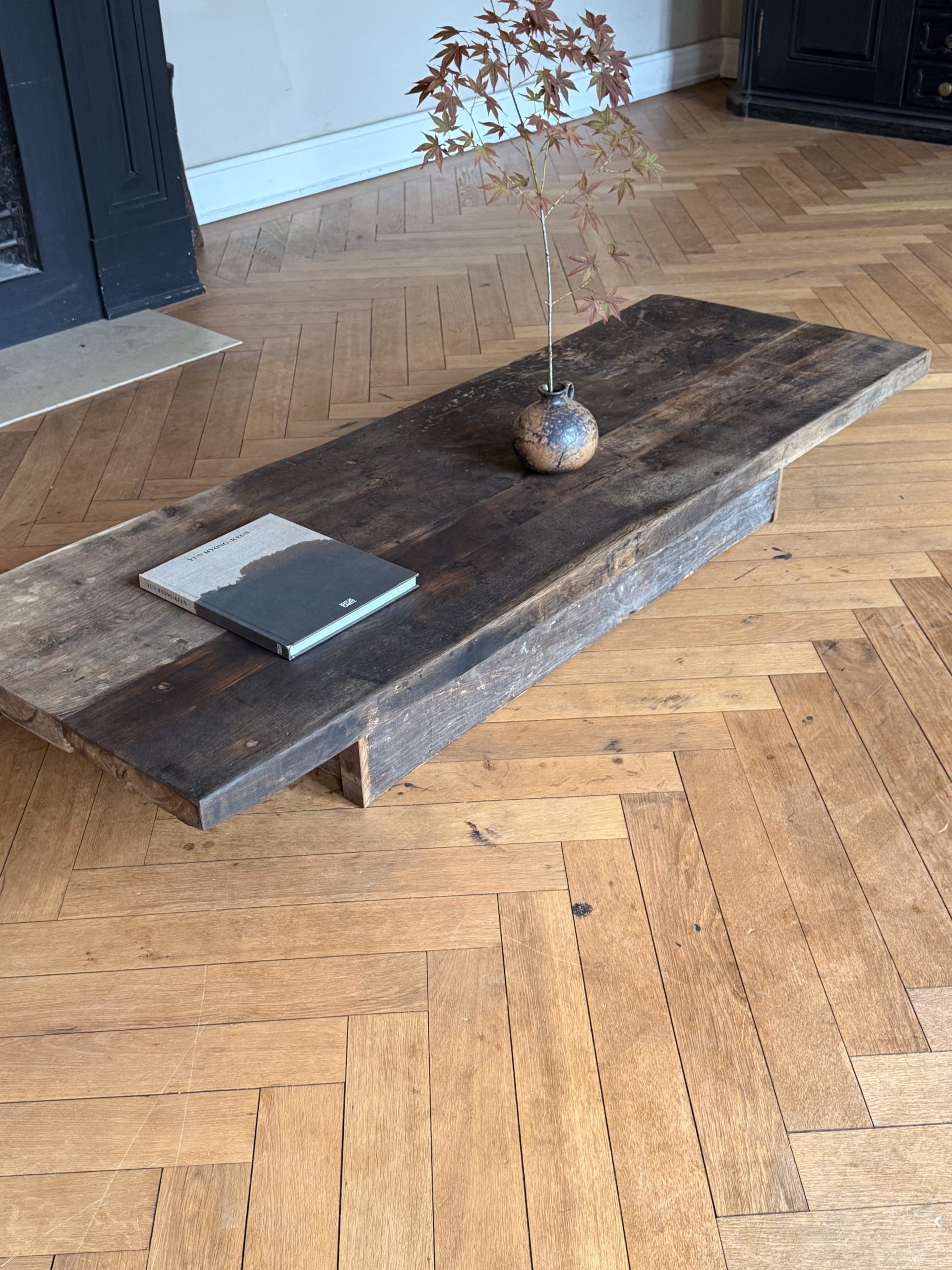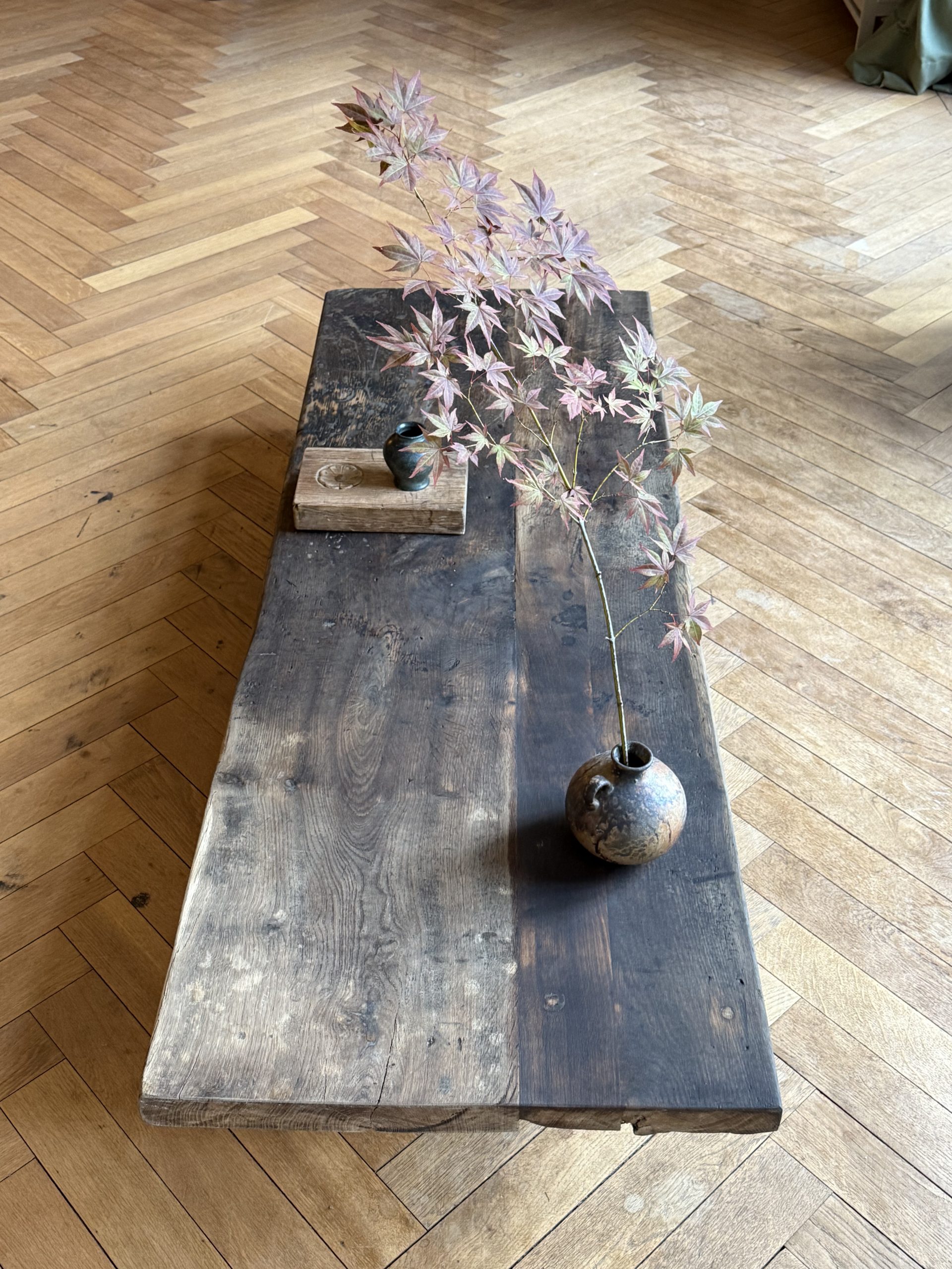 NEW ARRIVALS Wabi Sabi Coffee table No. 2 Beautiful oak & pine coffee table.hight 24 cm (9,44 in)depth 59 cm (23,22 in)width 164 cm (64,56 in)please contact for further info