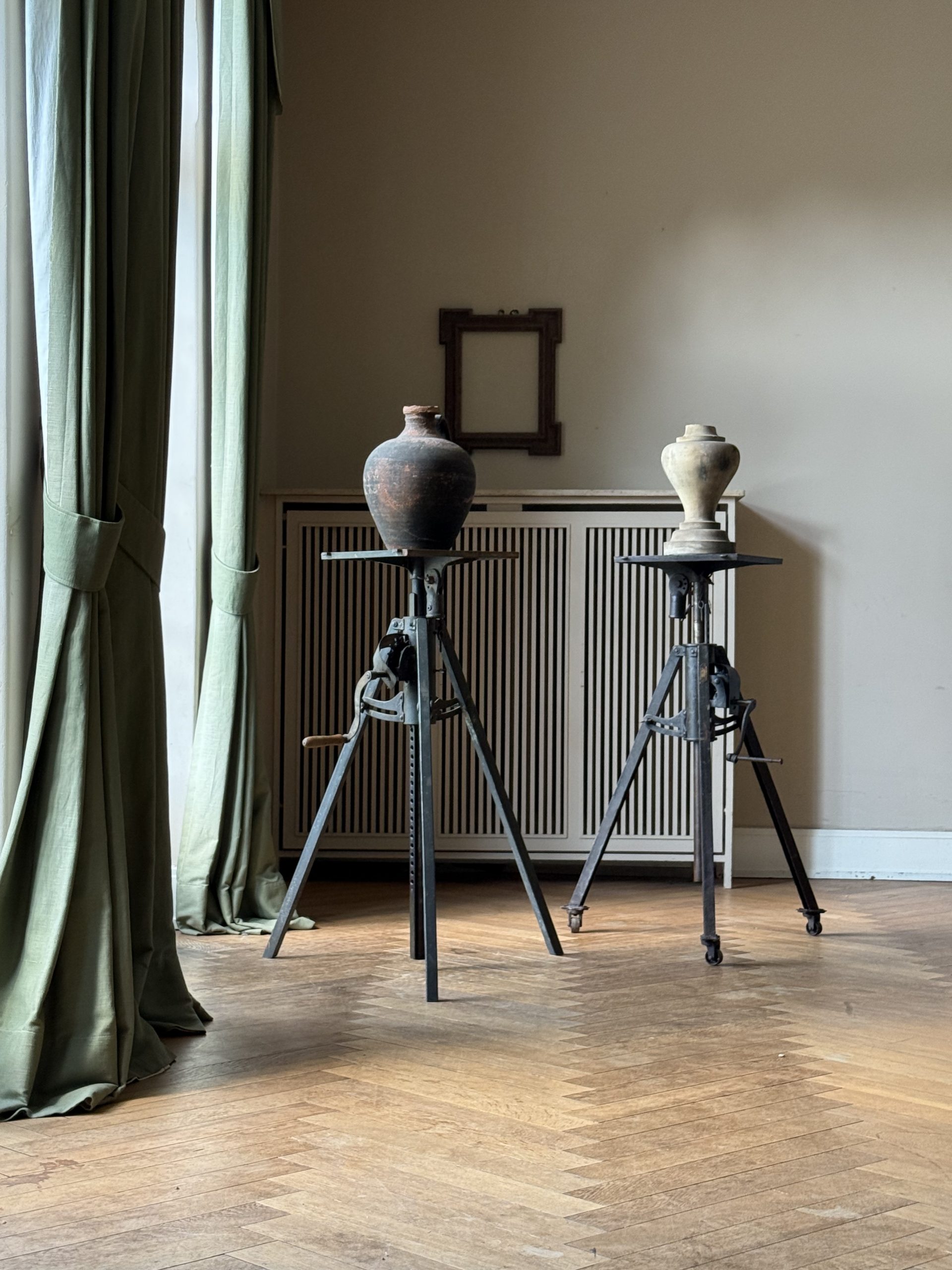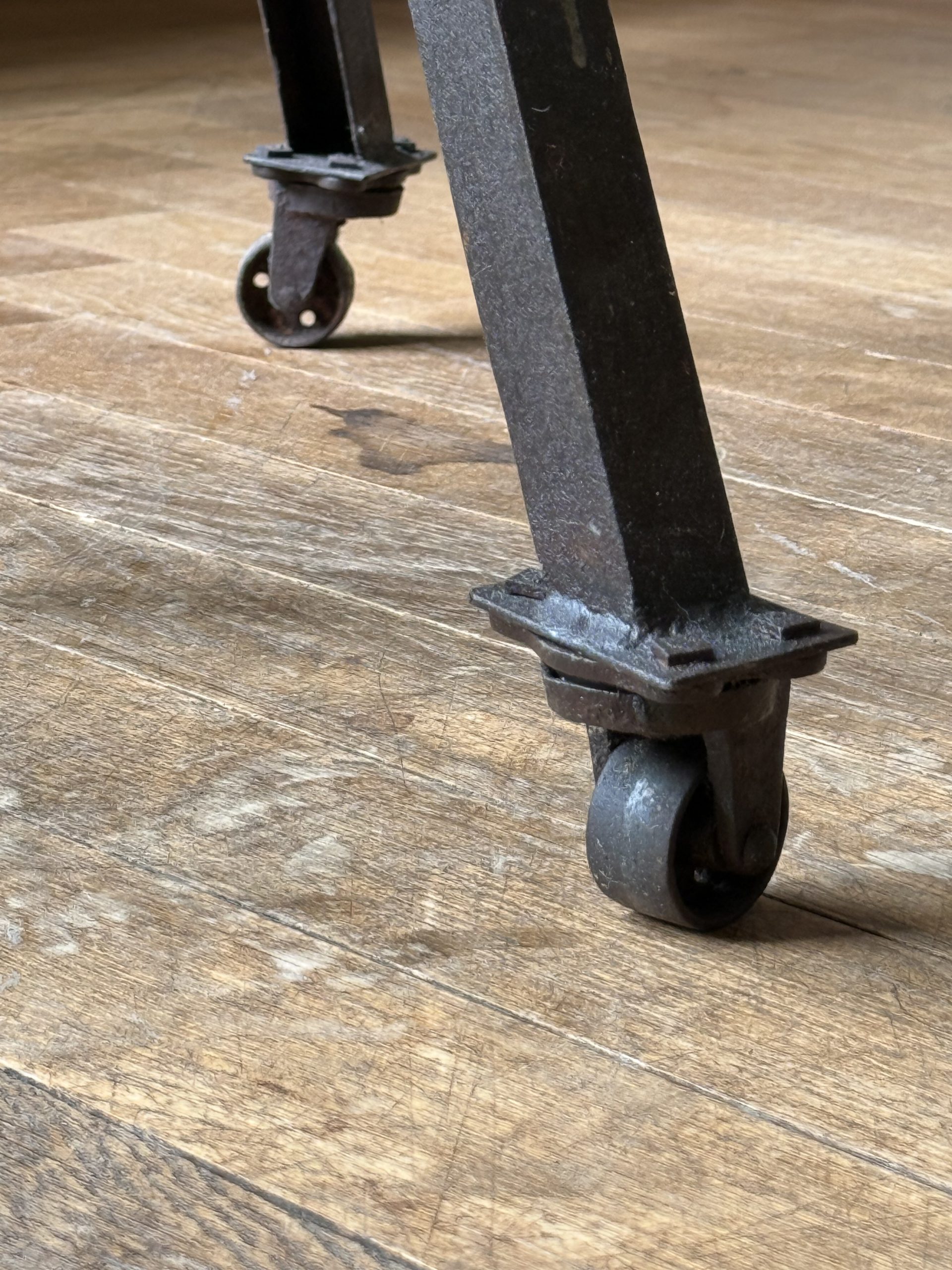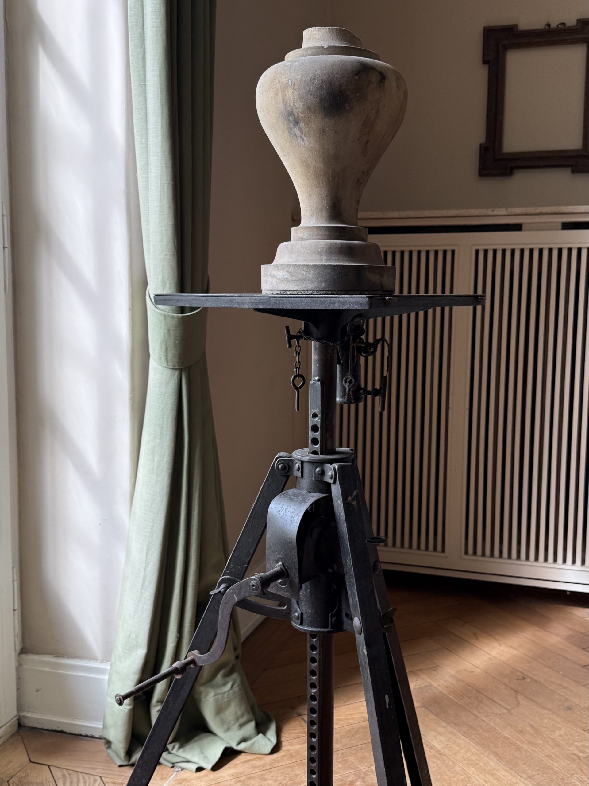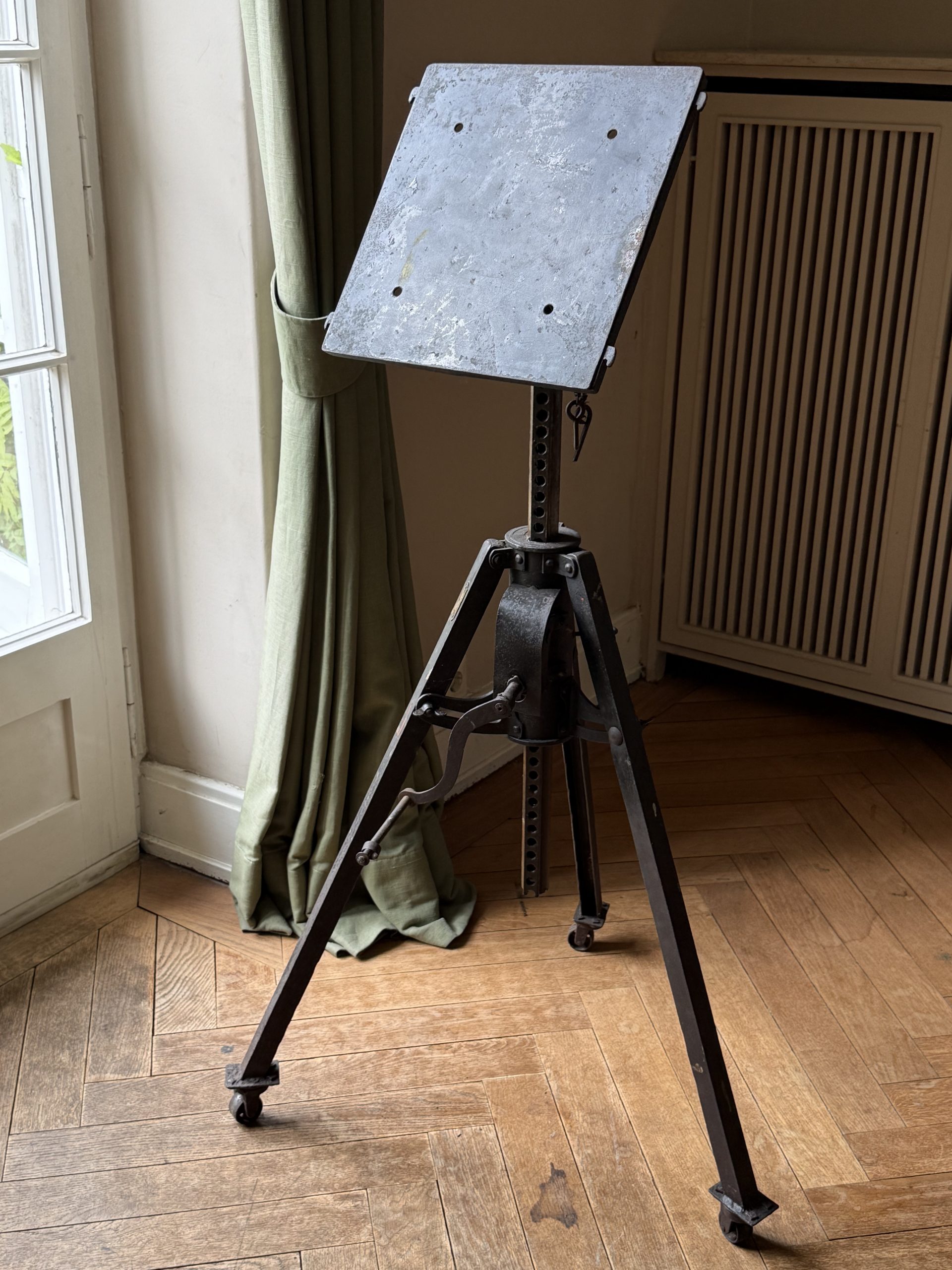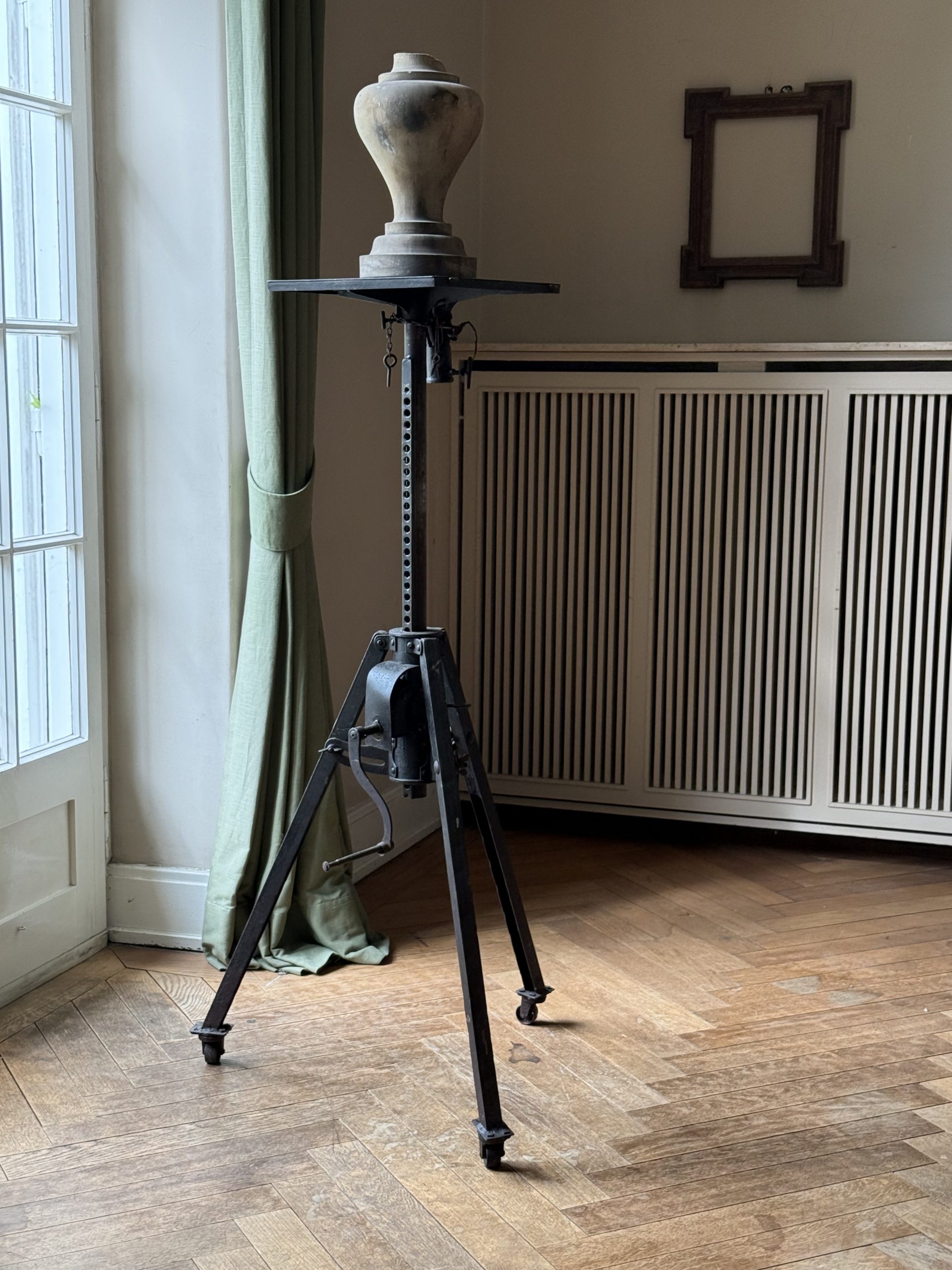 Wonderful and very rare 1920s sculptor table on castor feet. Height adjustable. The mechanism works perfectly. Very solid piece with a lovely patina.