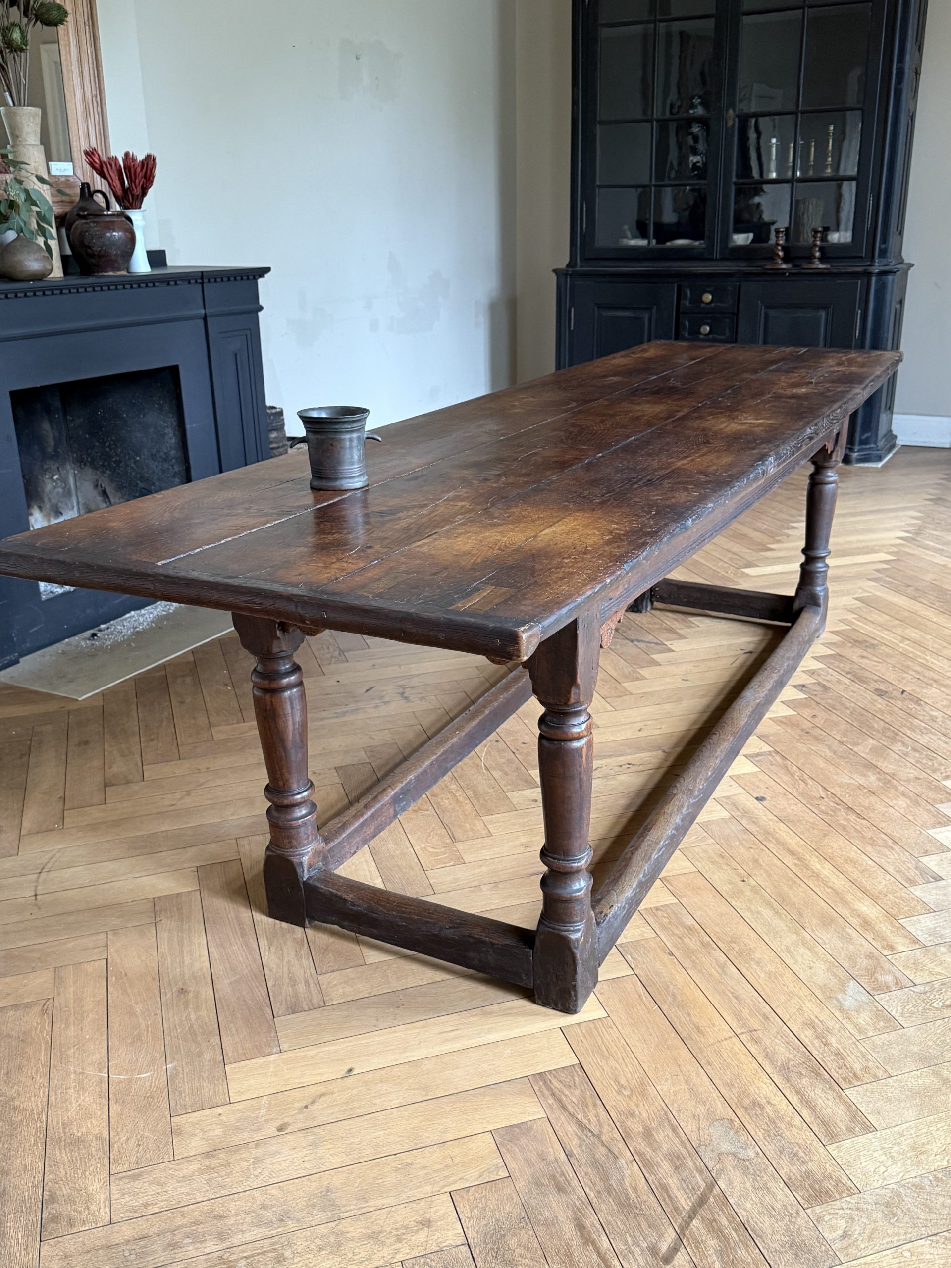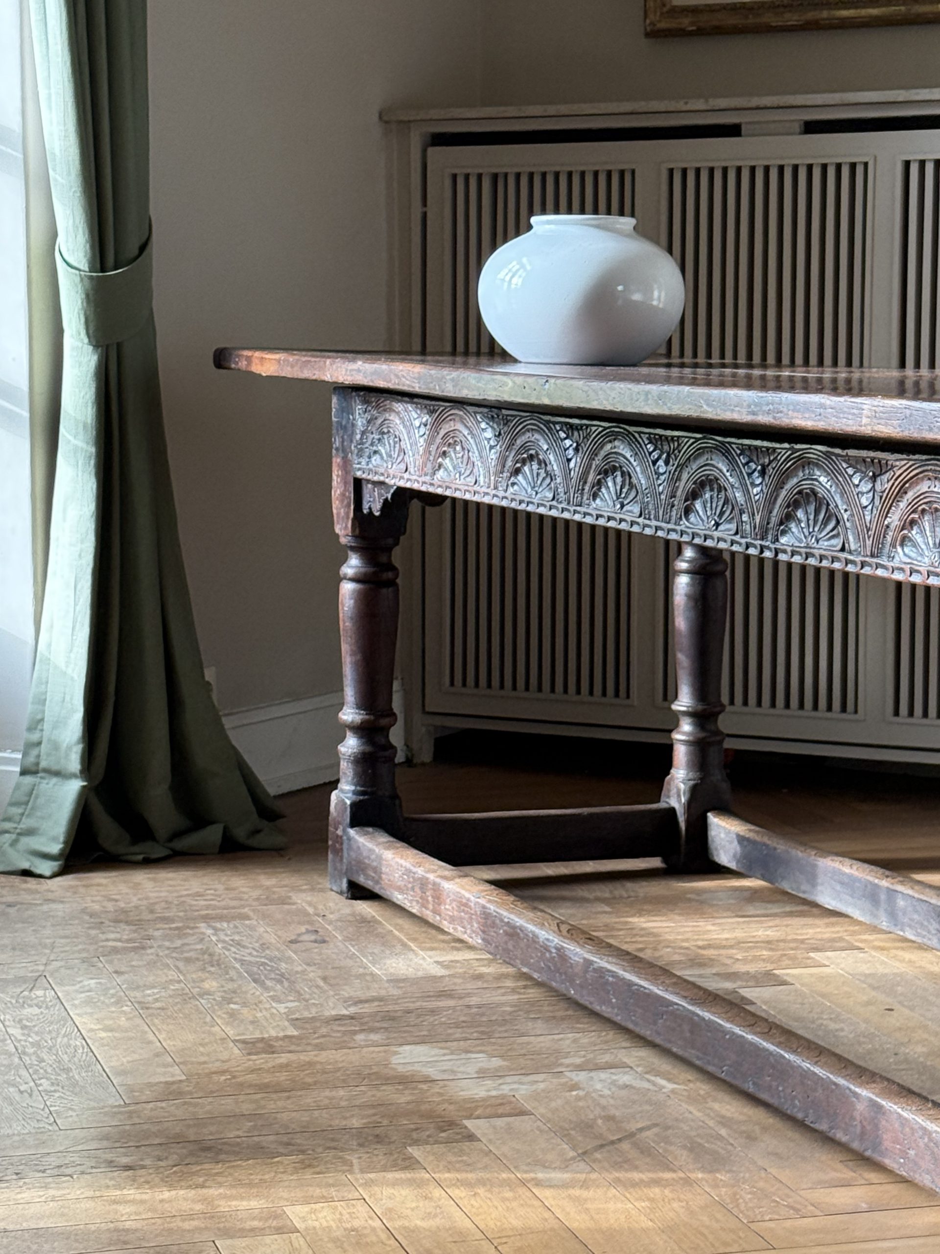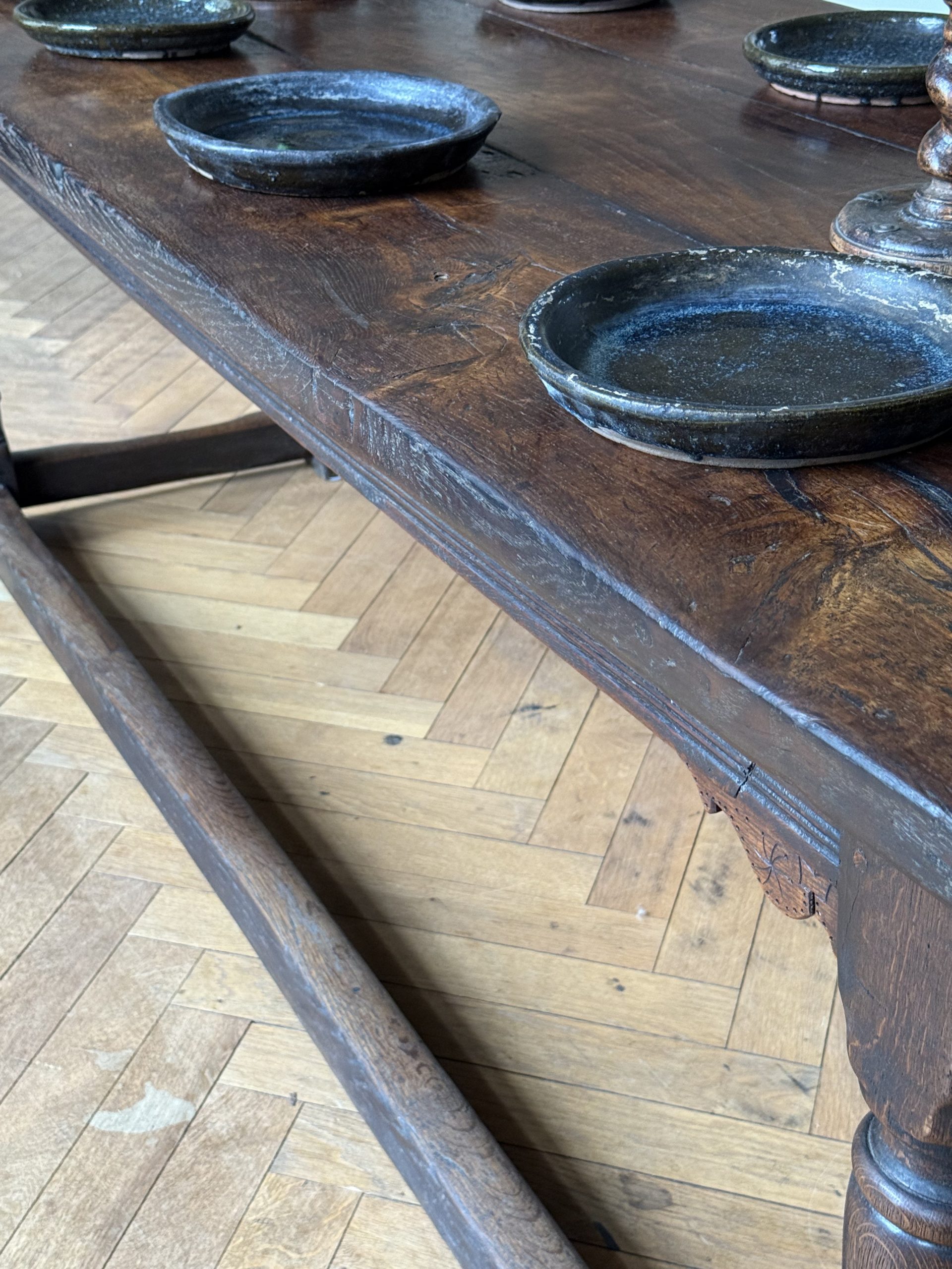 An exceptional 17th Century English carved oak refectory table circa 1680. A fine & large oak table from the reign of Kind Charles II.