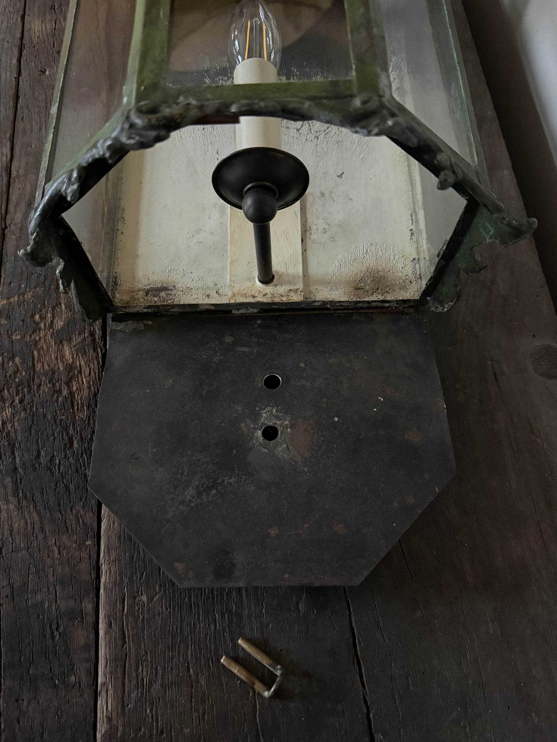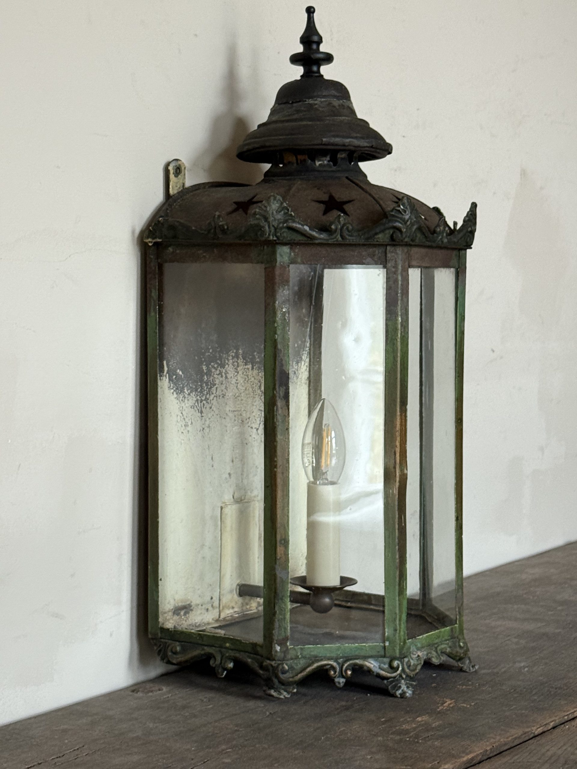 NEW ARRIVALS Antique Wall Lantern - London Around 1860 Victorian Wall Lantern with the original color & glass. Amazing patina ! New electrified.hight 52 (20,47 in)depth 20,5 (8,07 in)width 24,5 (9,64 in)please contact for further info