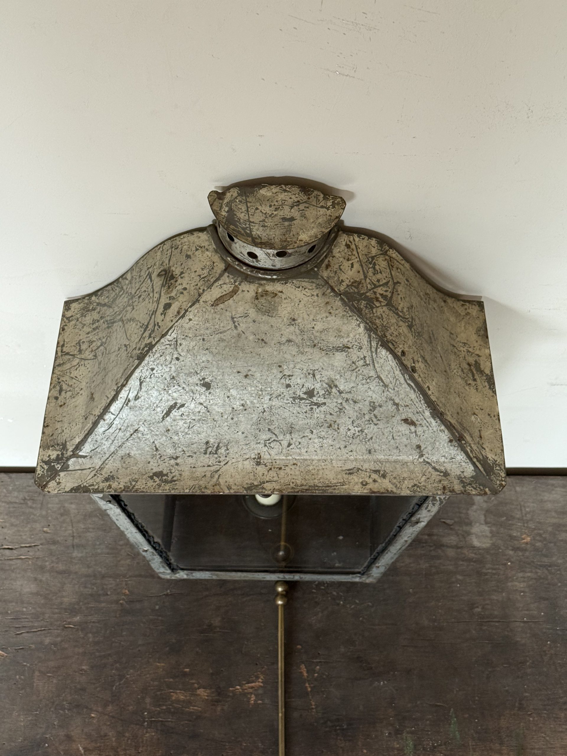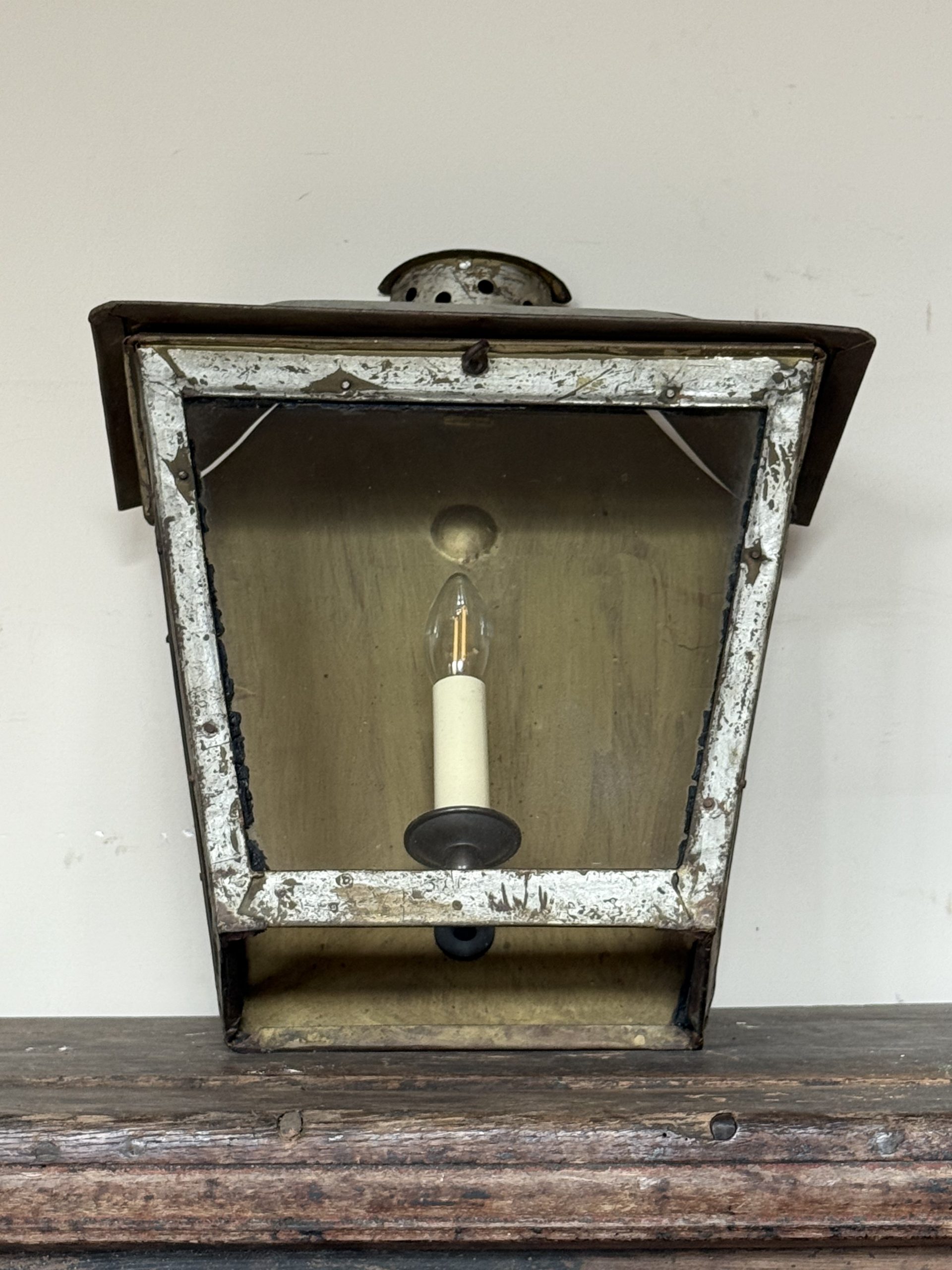NEW ARRIVALS 19th Century Wall Lantern Very elegant antique wall lantern. Brass with silvered finish. New electrified. Very nice patina !hight 44,5 cm (17,51 in)depth 18,5 cm (7,28 in)width 37 cm (14,56 in)please contact for further info.
