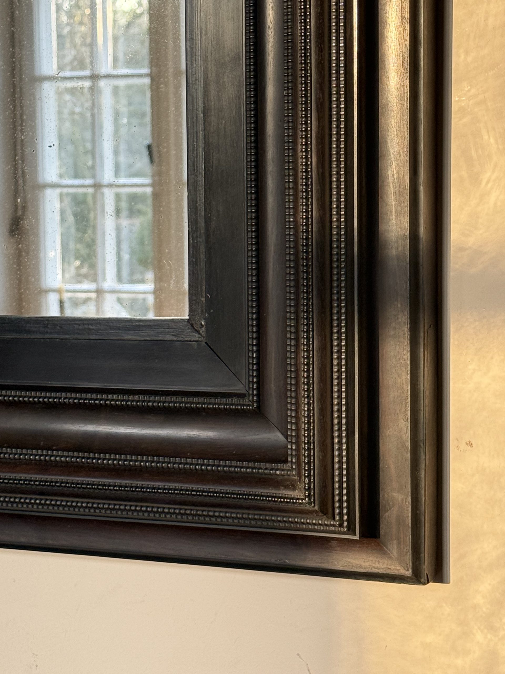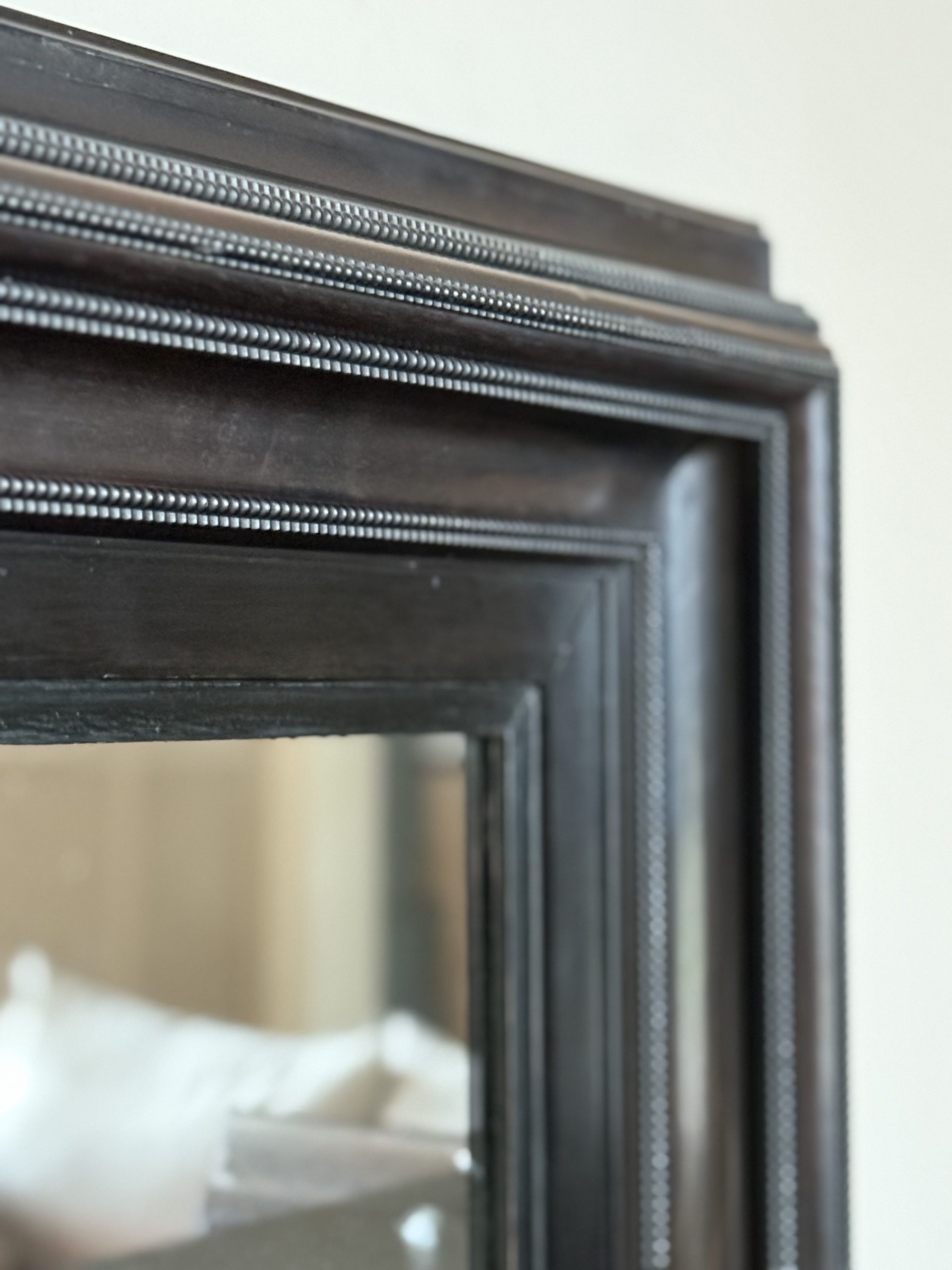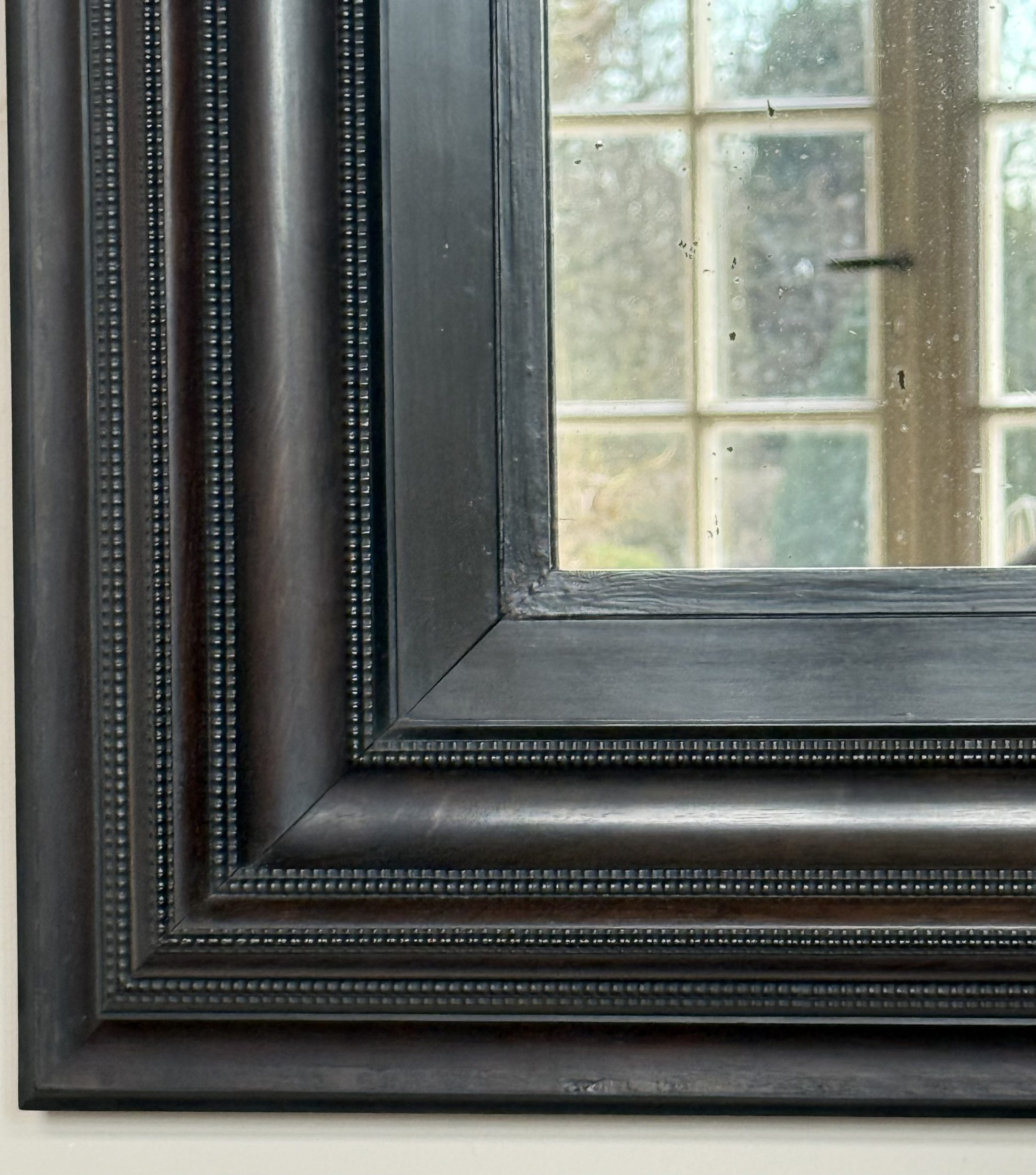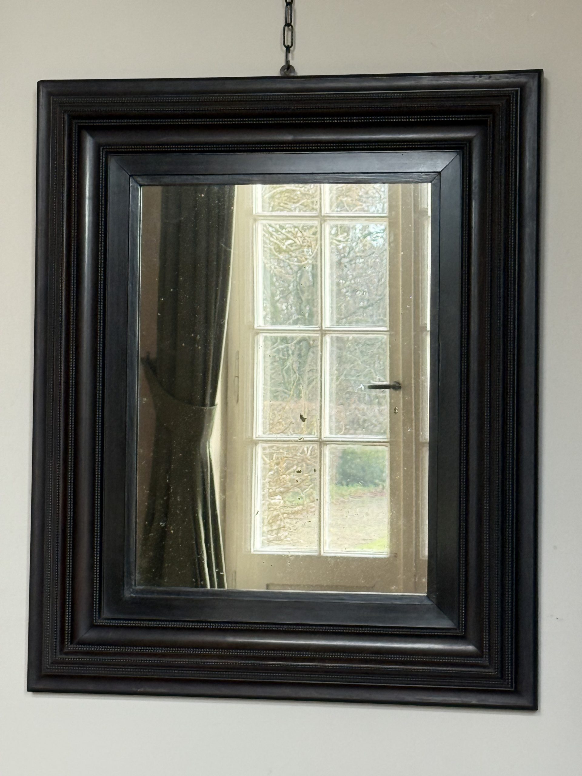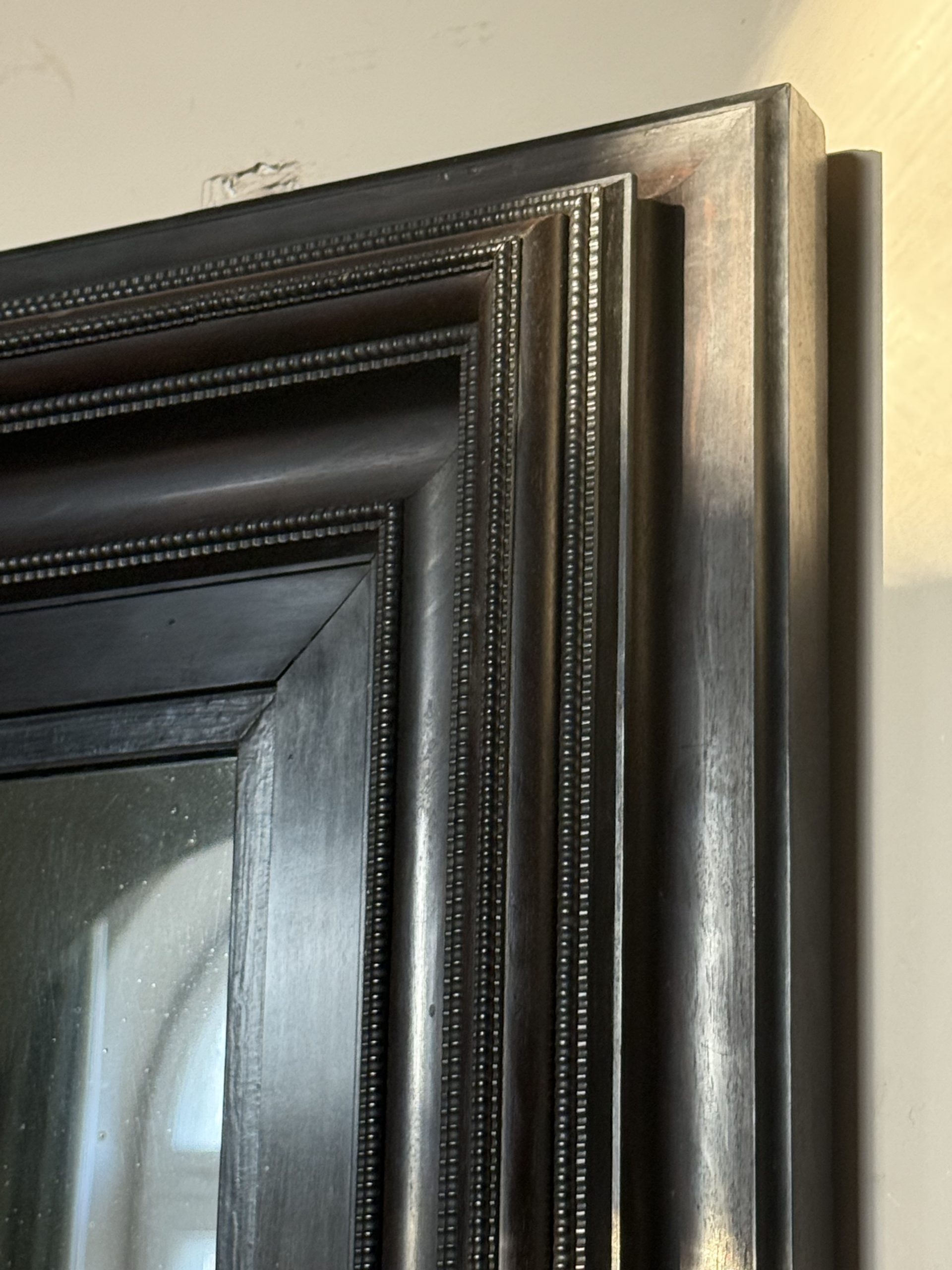 NEW ARRIVALS Large Flemish Mirror Very elegant 19th Century ebonized Belgian mirror. Impressive wide "old master" frame with old mirror plate.hight 85,5 cm (33,66 in)width 70,5 cm (27,75 in)please contact for further info