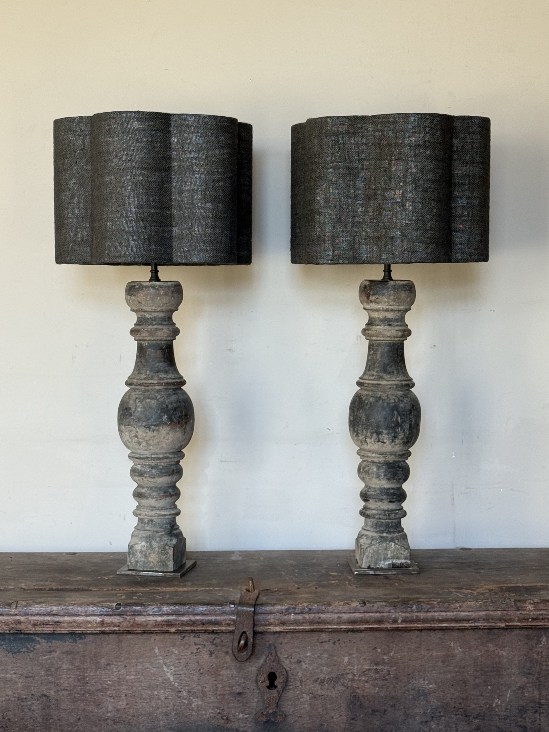 Pair of Table Lamps - Wooden Columns Florence 1650 (Pair No. I)
