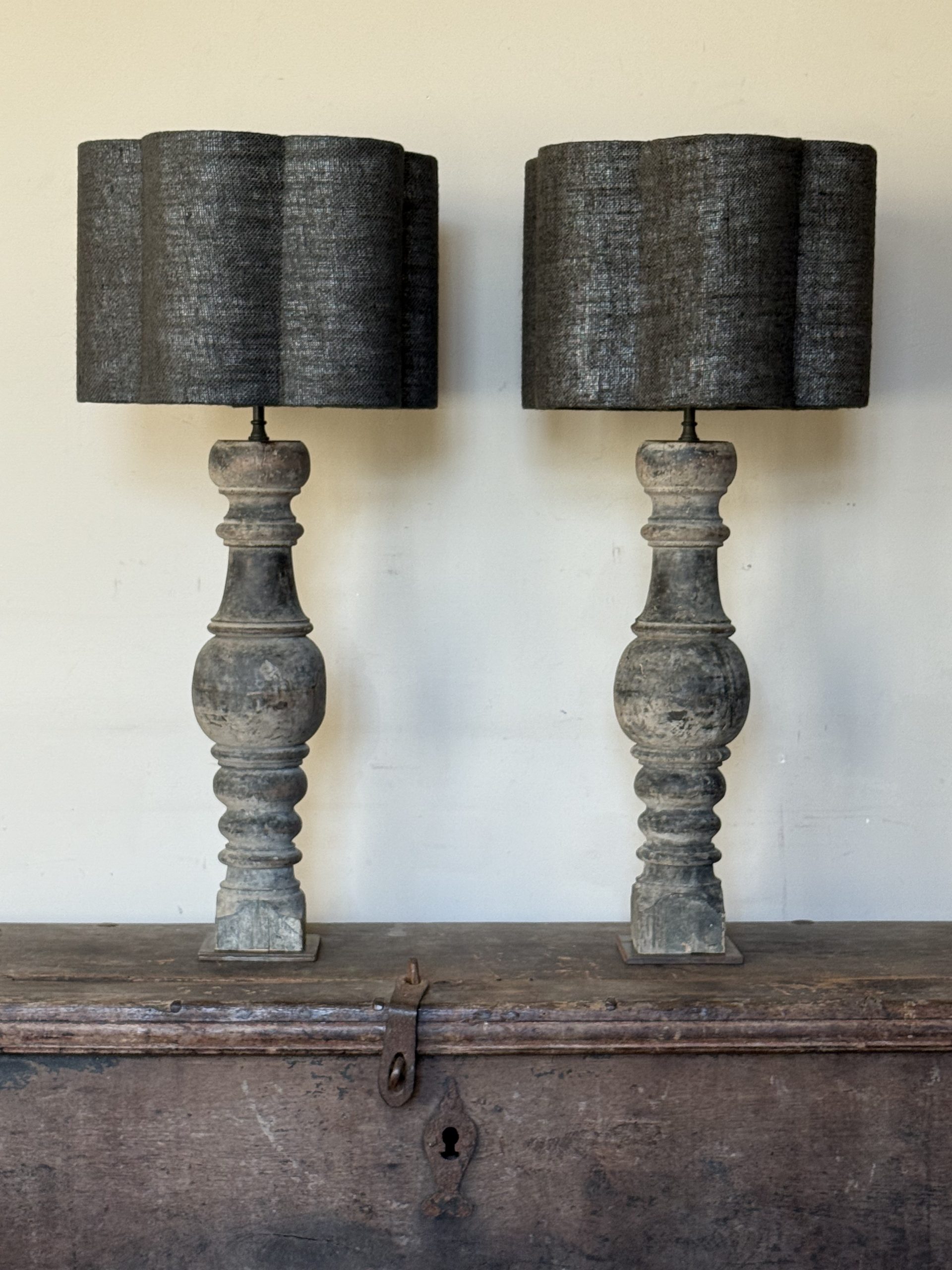 Pair of Table Lamps - Wooden Columns Florence 1650 (Pair No. II)