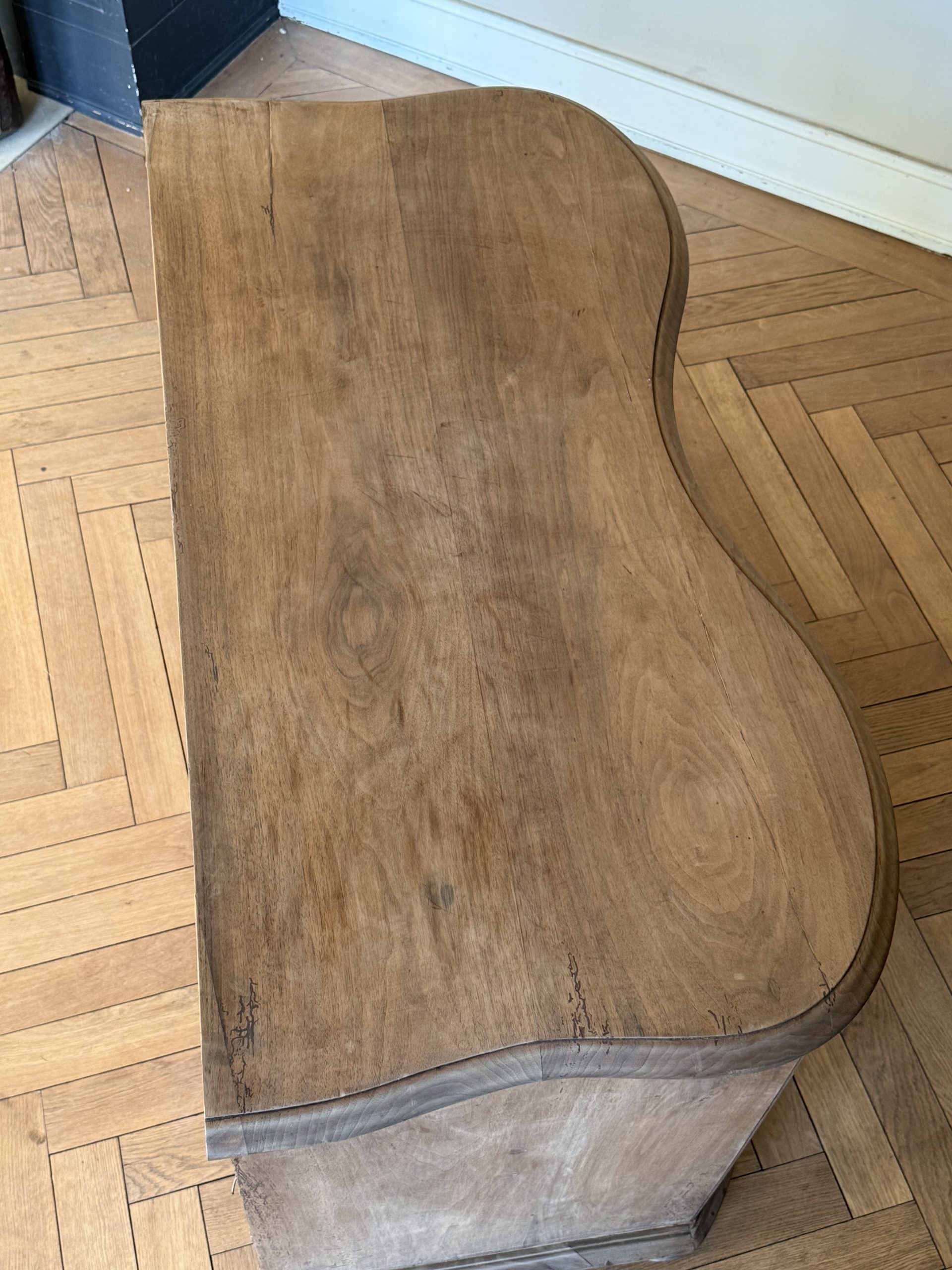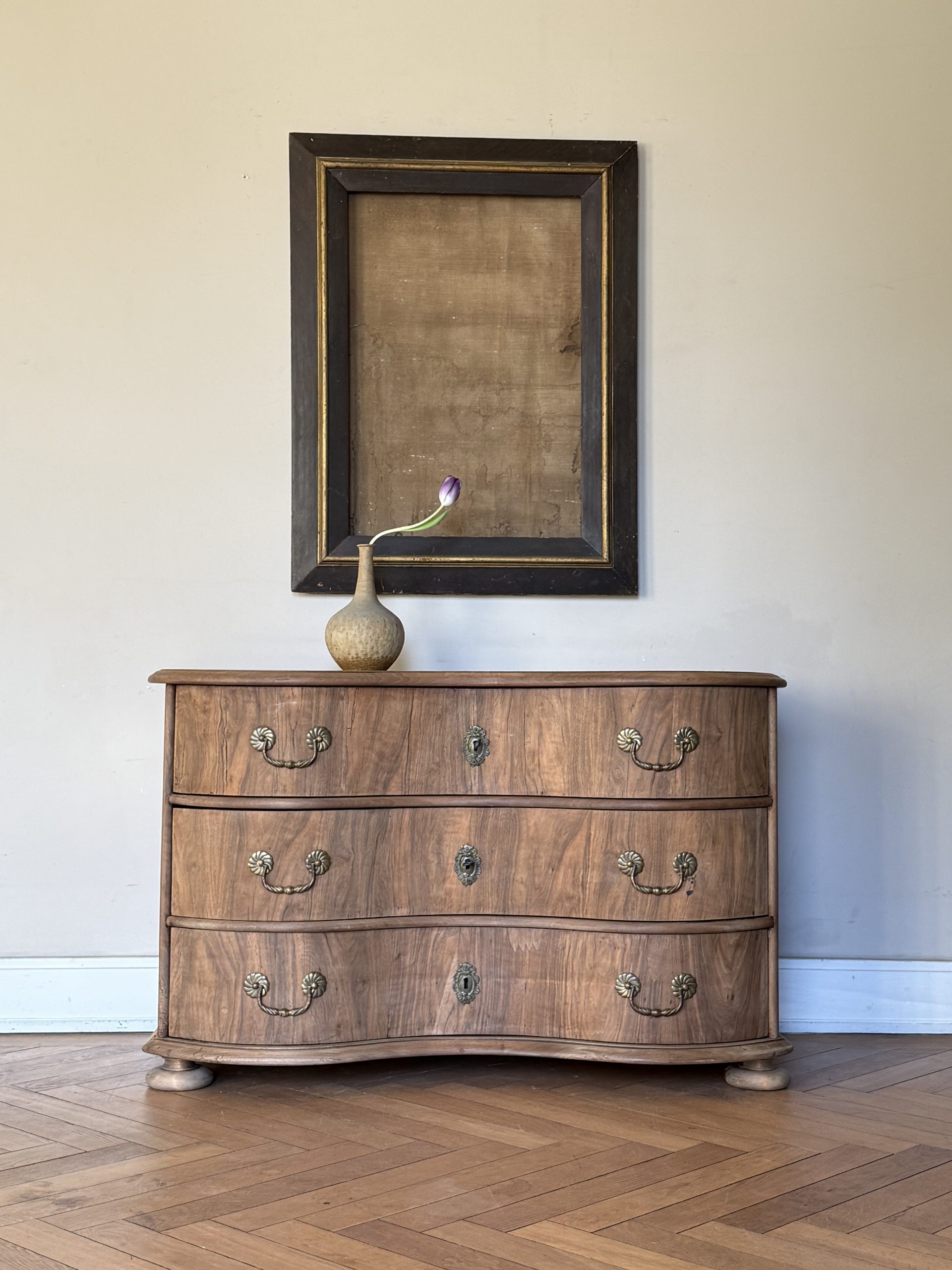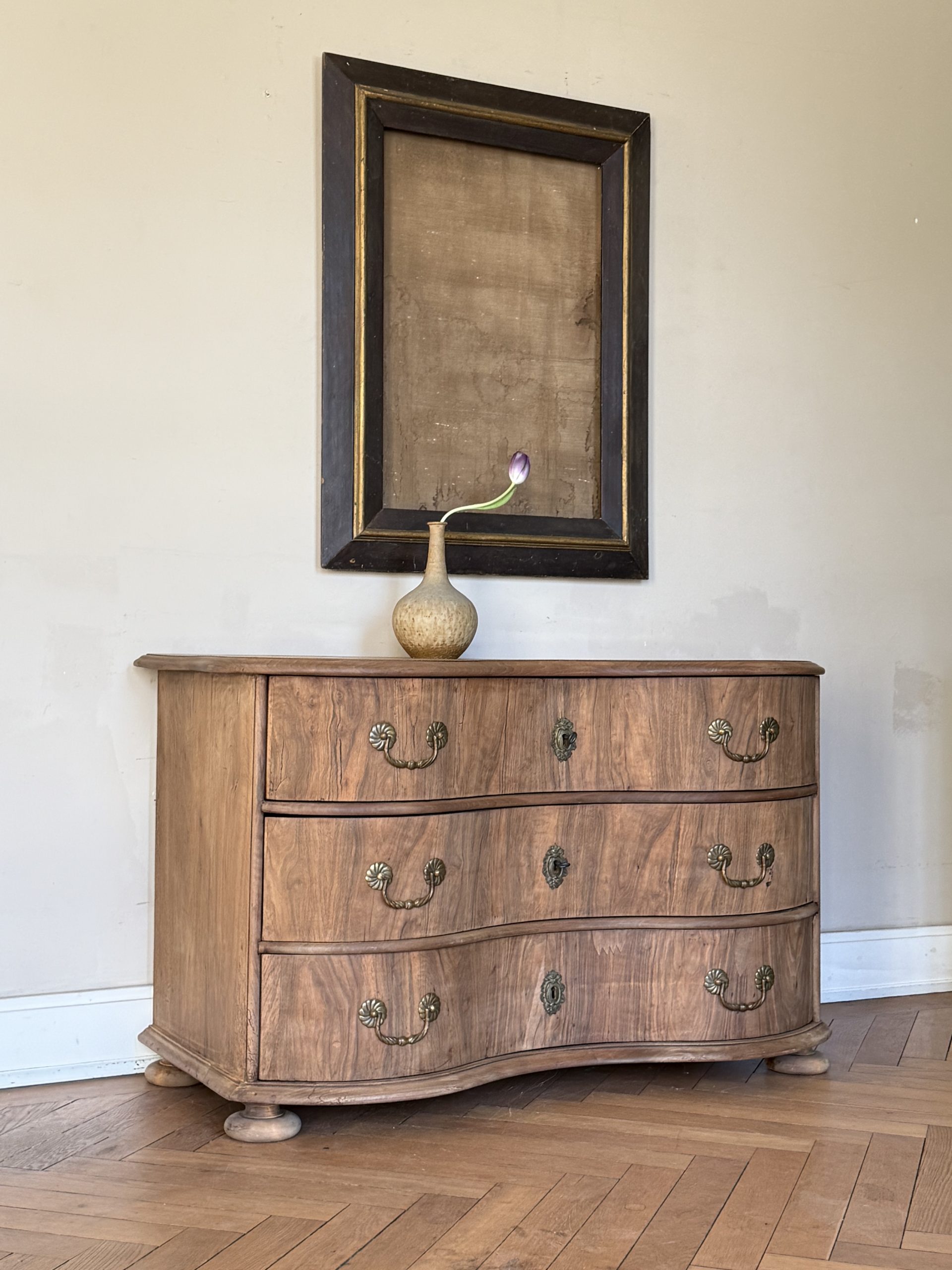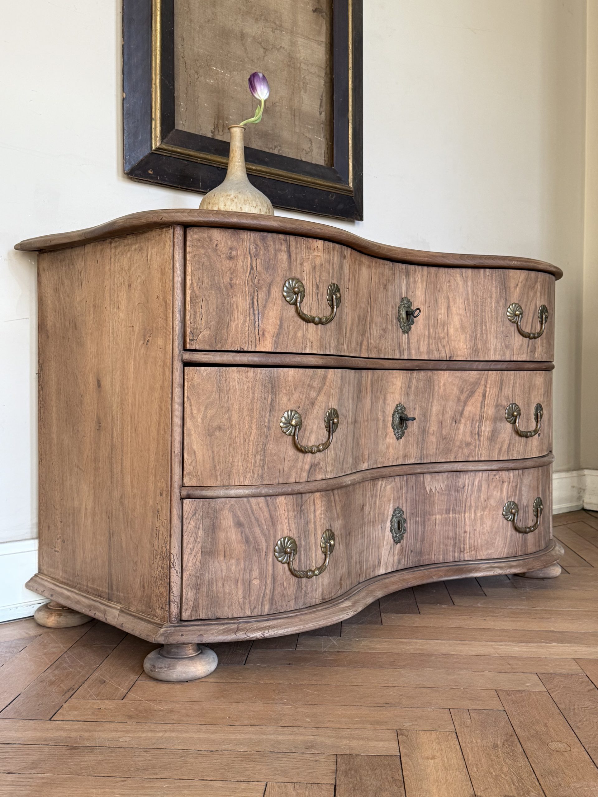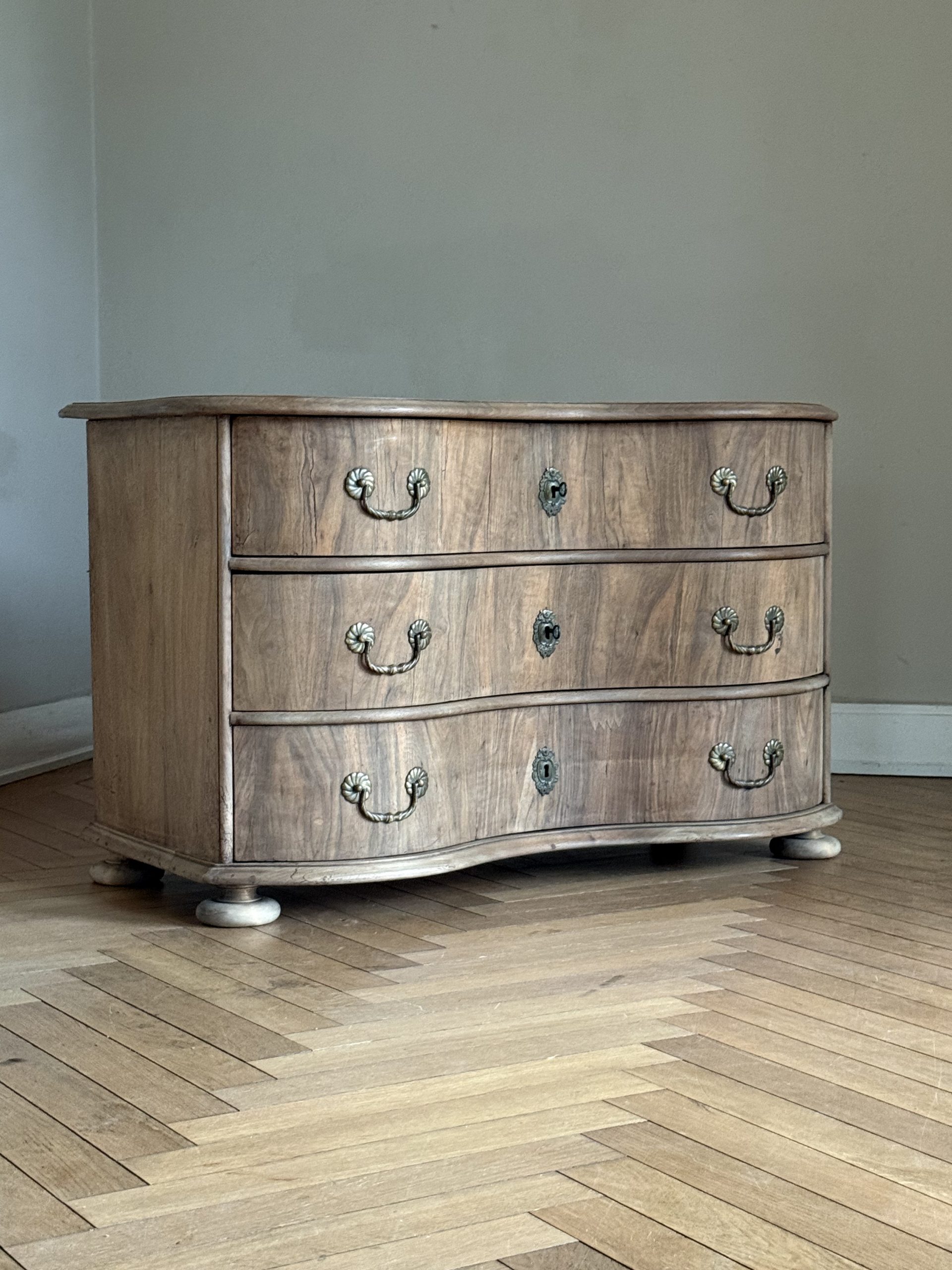 NEW ARRIVALS 18th Century Walnut Serpentine Dresser Very elegant baroque serpentine dresser.hight 80 cm (31,49 in)depth 61 cm (24,01 in)width 129,5 cm (50,98 in)please contact for further info