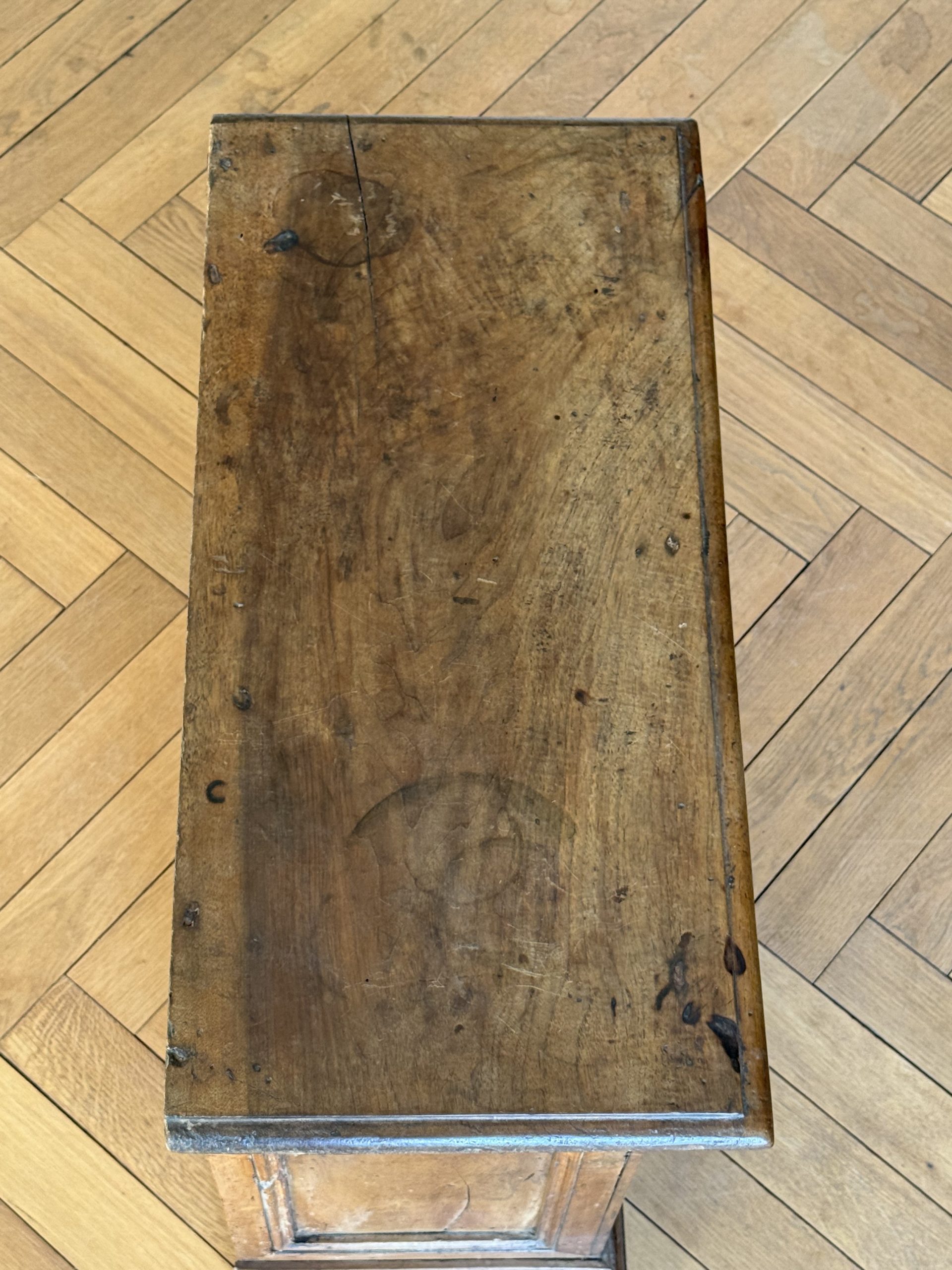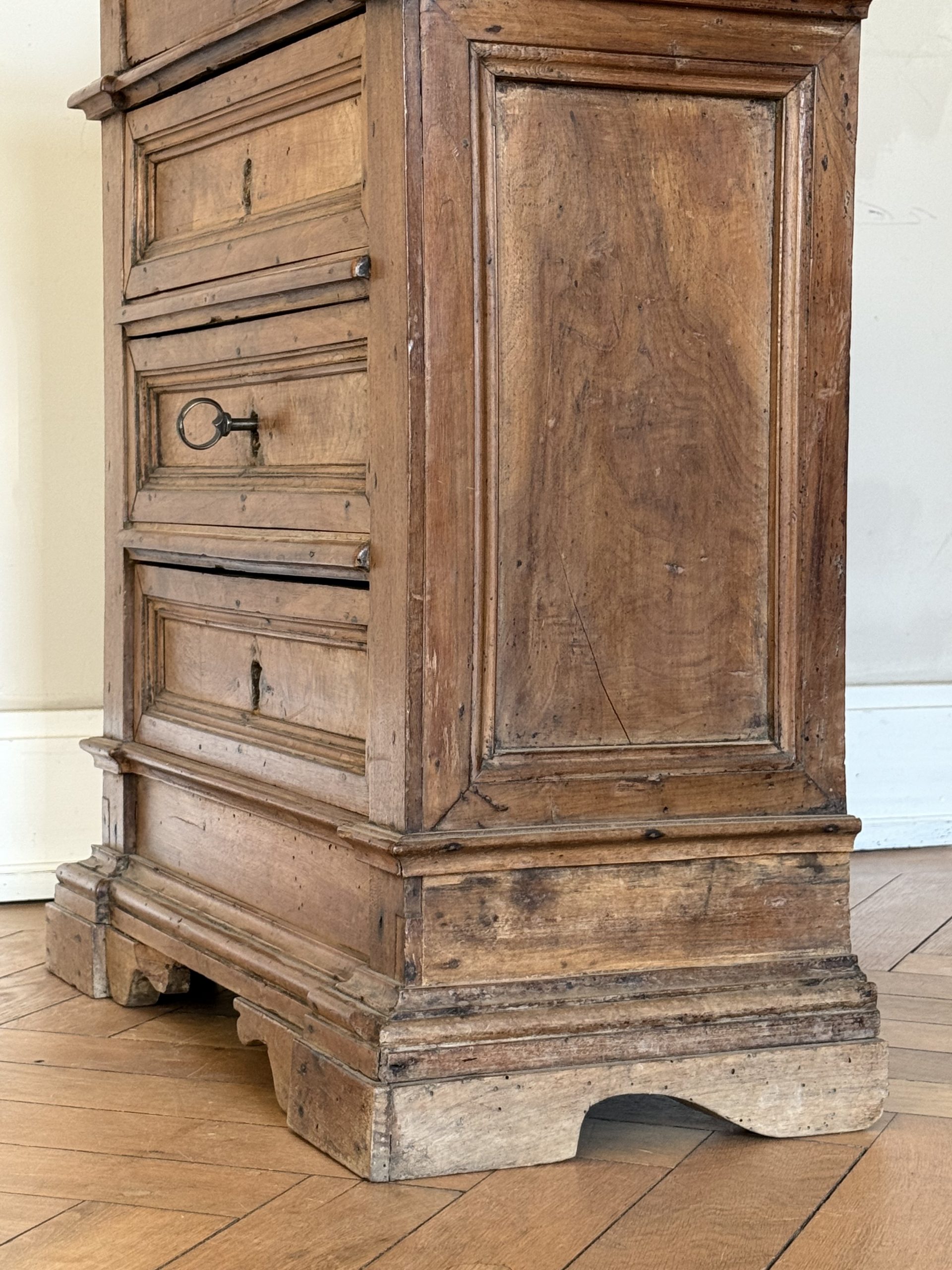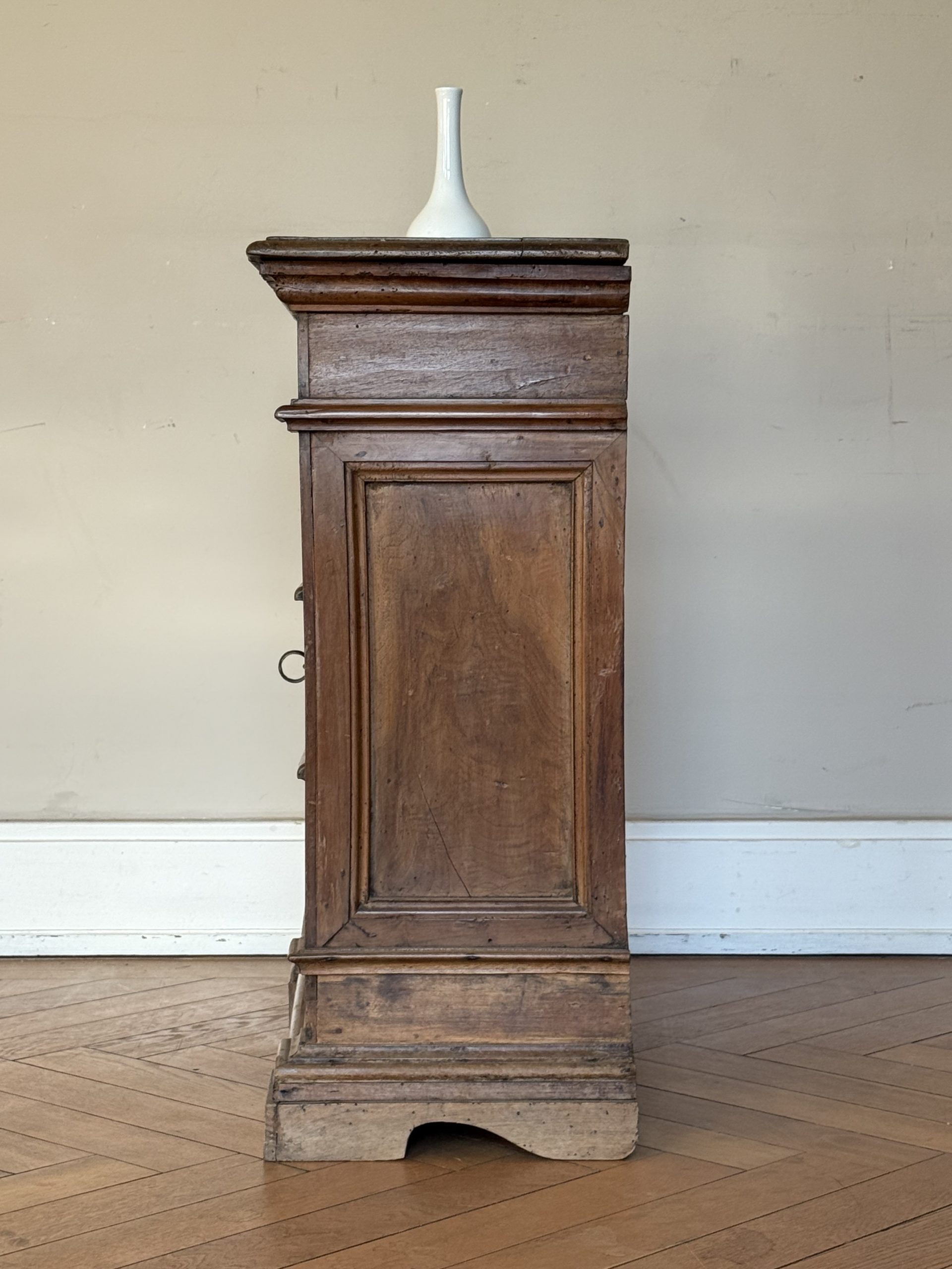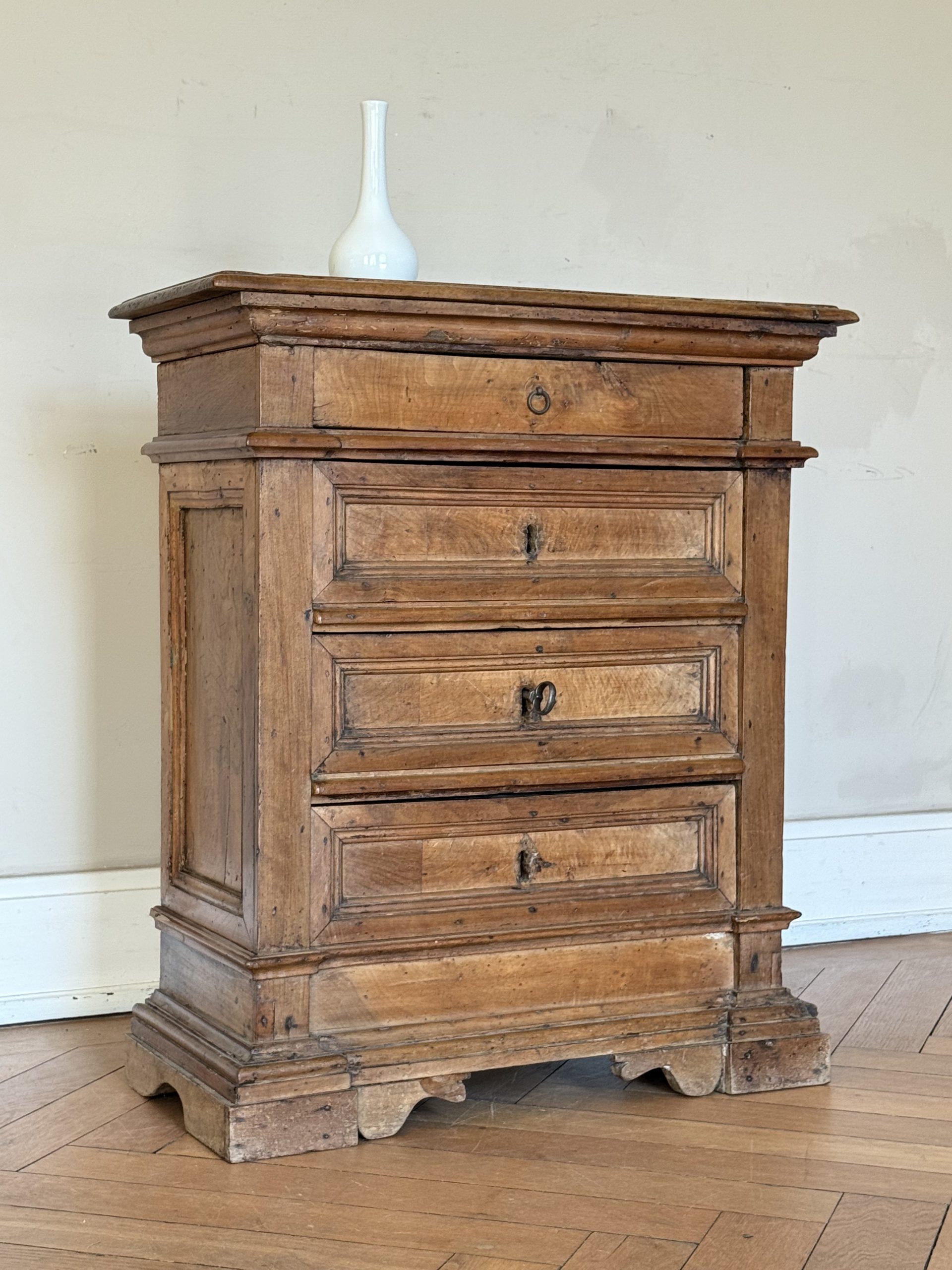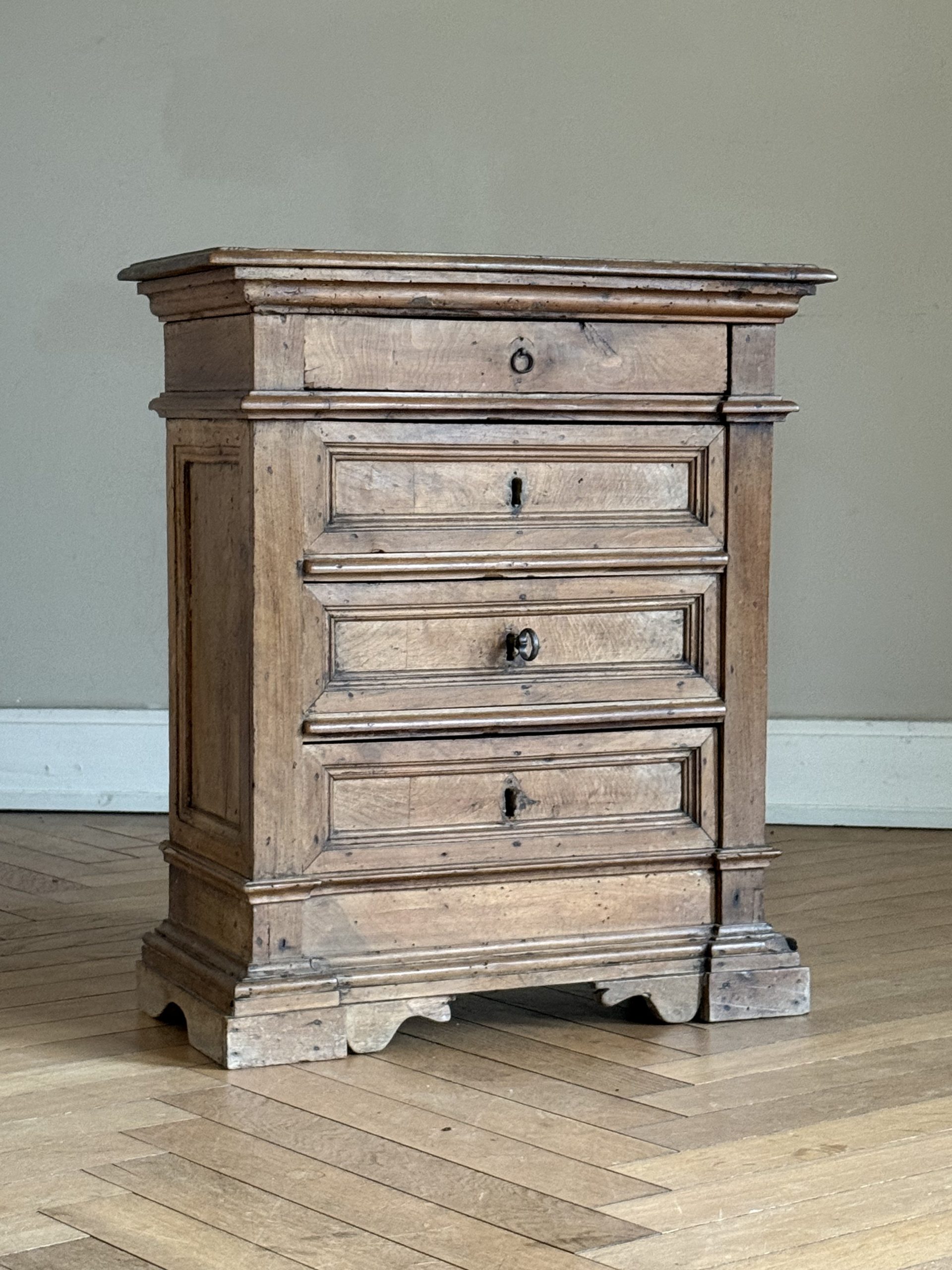 NEW ARRIVALS Small 18th Century Walnut Commode Fine architectural walnut chest of drawers with lovely dimensions. 4 drawers & very pretty little locks.hight 78 cm (30,70 in)depth 31,5 cm (12,40 in)width 67 cm (26,37 in)please contact for further info