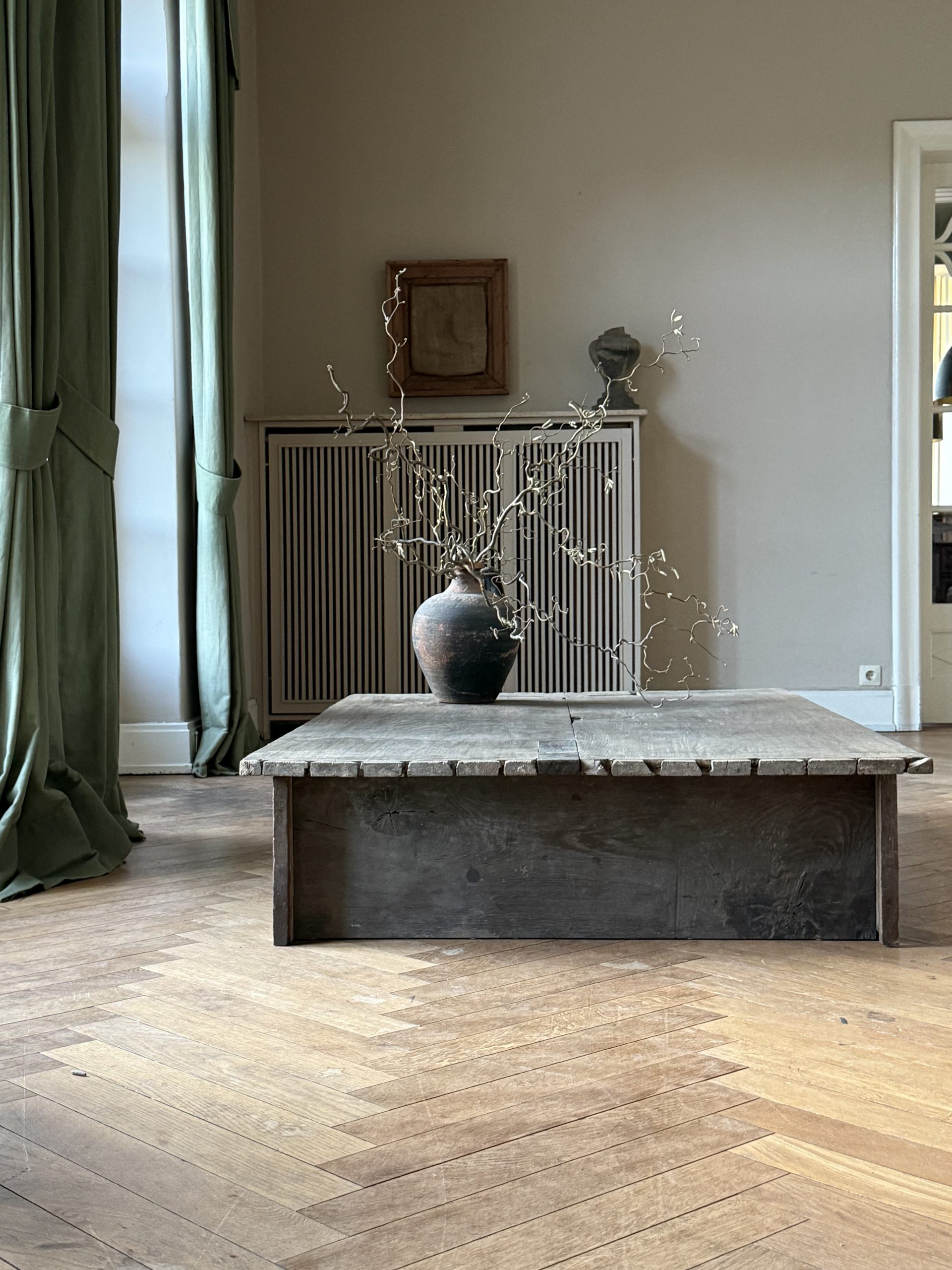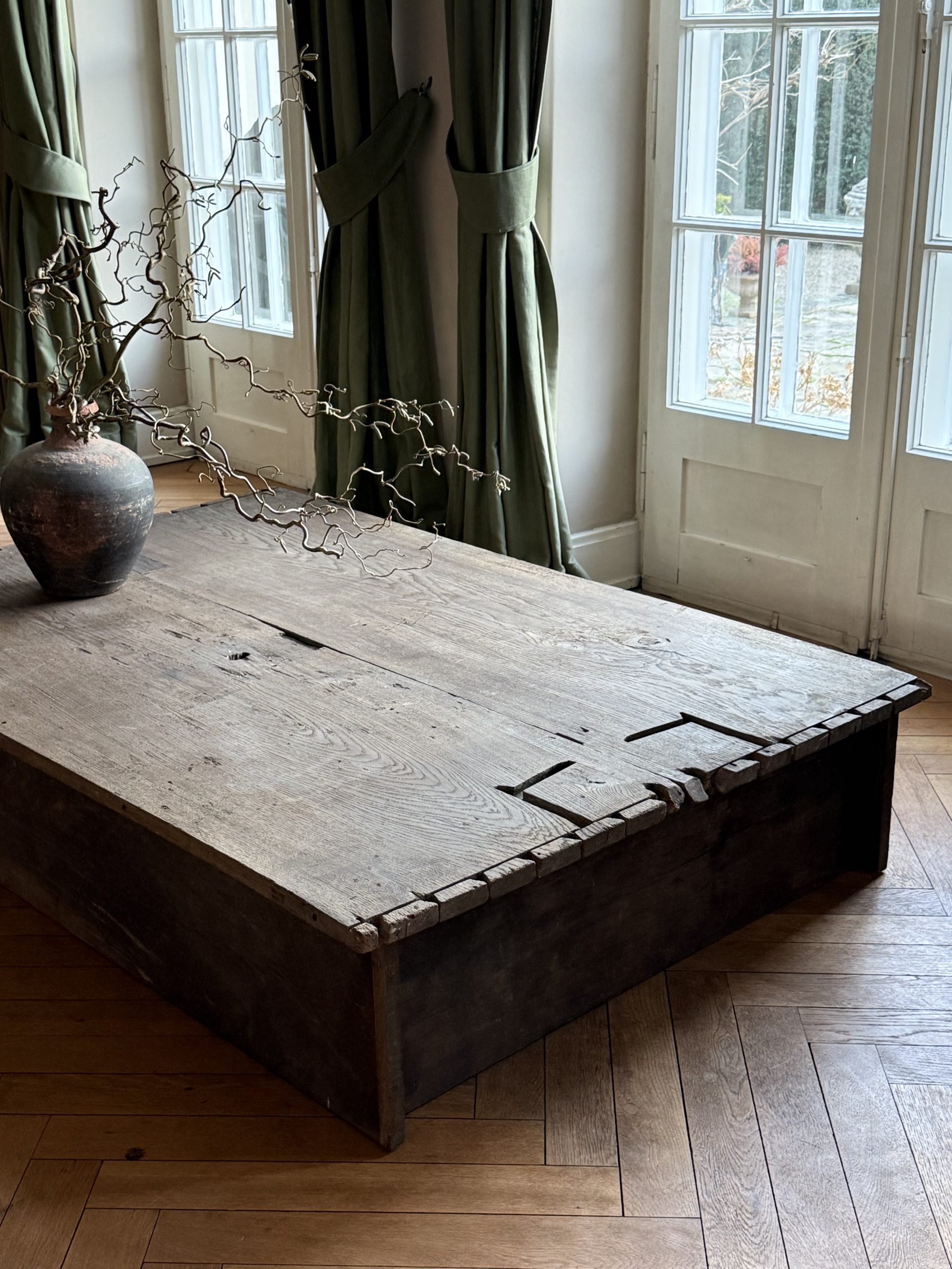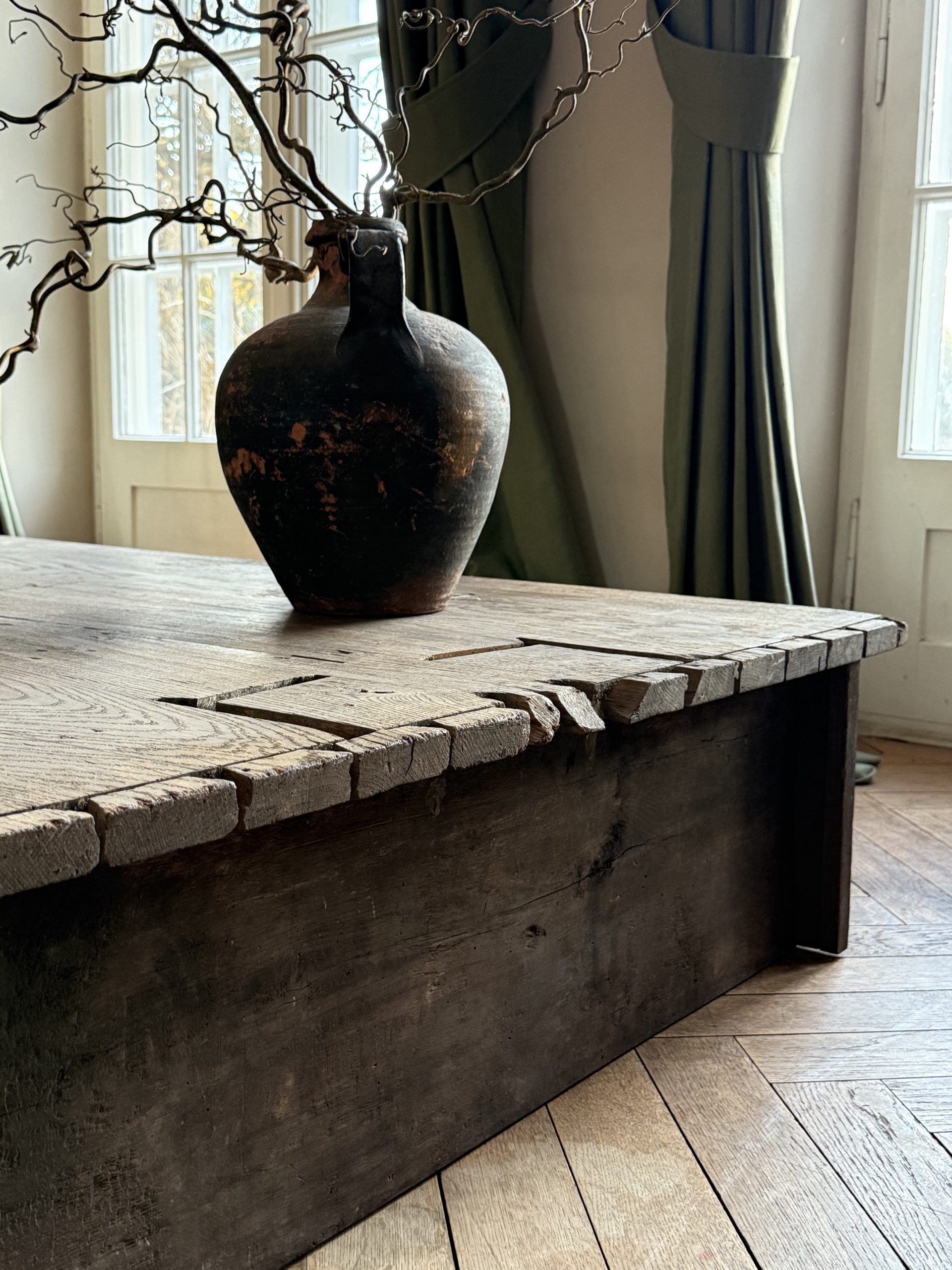 NEW ARRIVALS Large Oak Coffee Table Impressive coffee table with an amazing patina. Made of historic Baroque oak.hight 31 cm (12,20 in)depth 112,5 cm (44,29 in)width 168 cm (66,14 in)please contact for further info