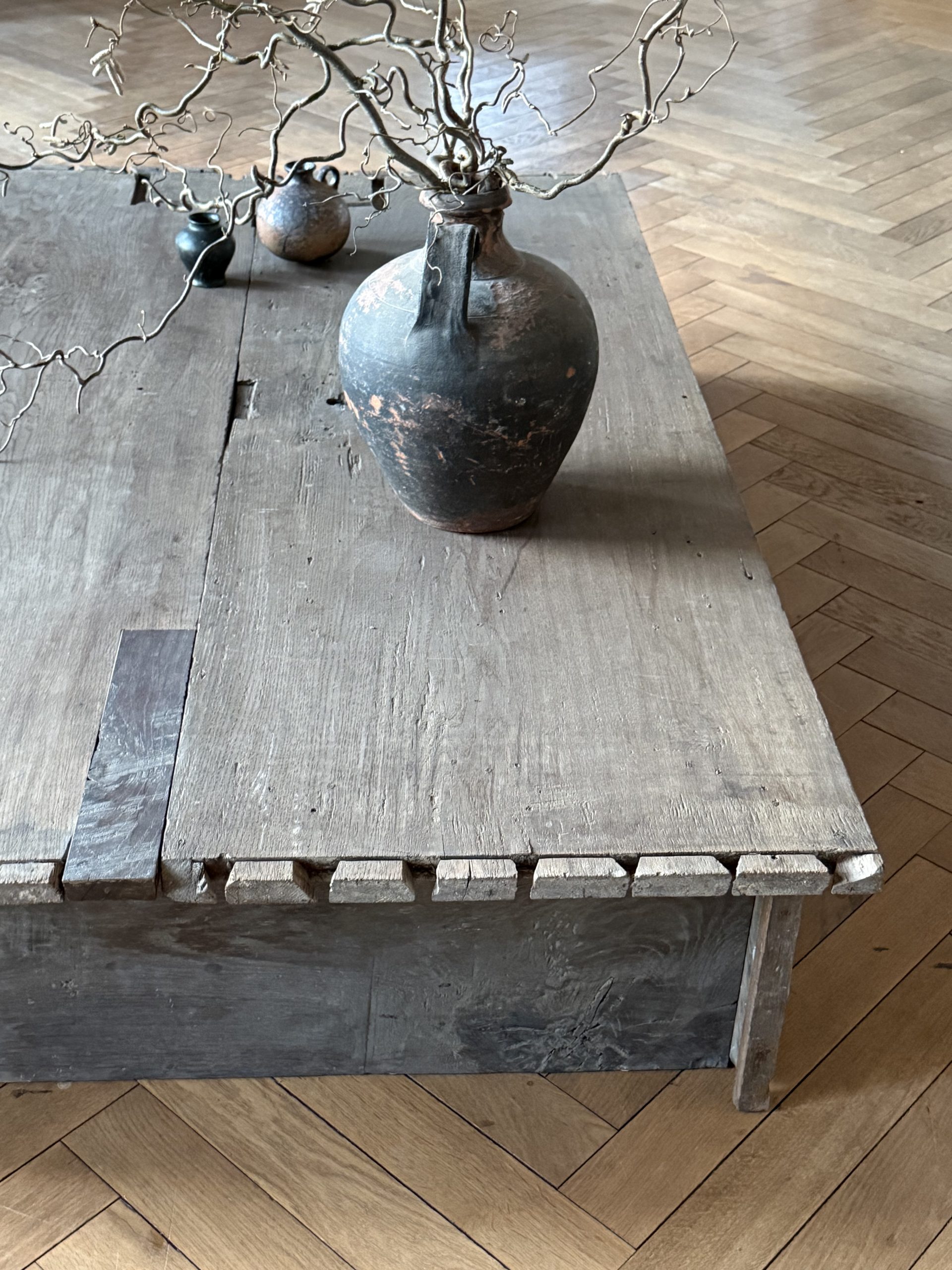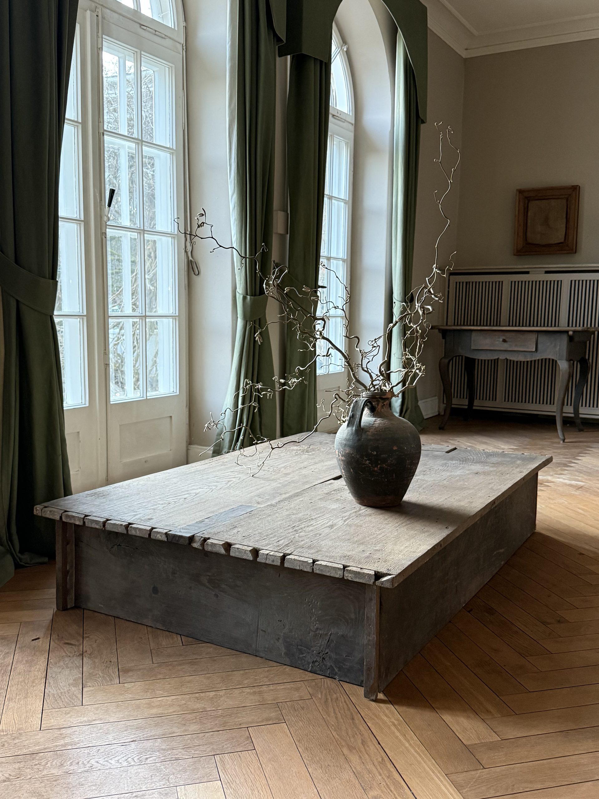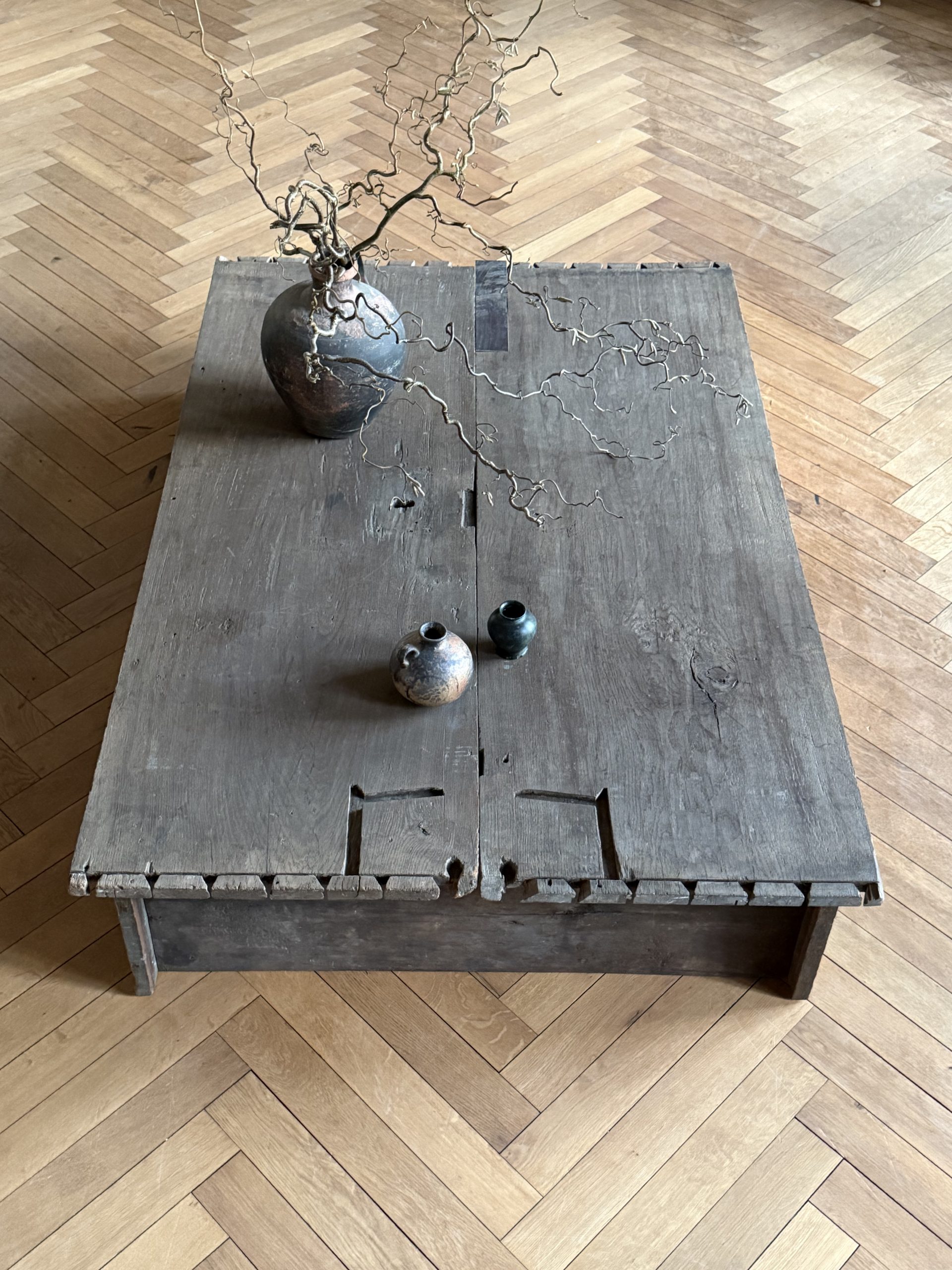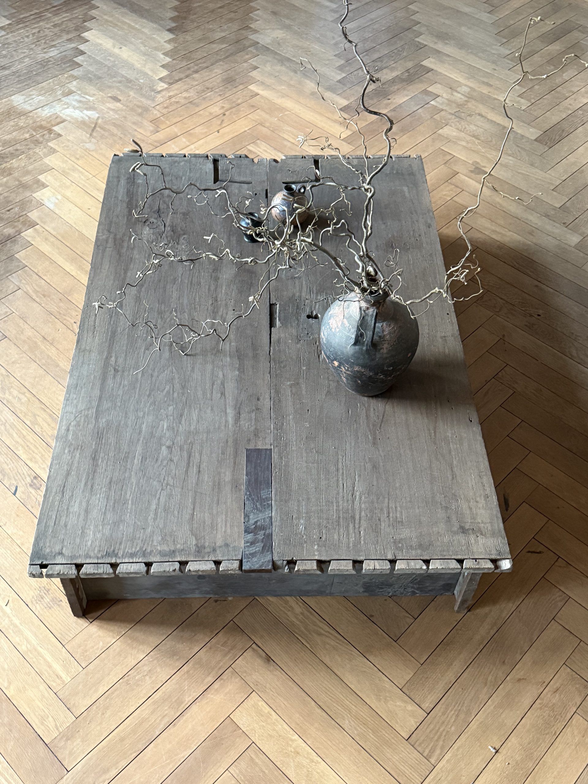 NEW ARRIVALS Large Oak Coffee Table Impressive coffee table with an amazing patina. Made of historic Baroque oak.hight 31 cm (12,20 in)depth 112,5 cm (44,29 in)width 168 cm (66,14 in)please contact for further info
