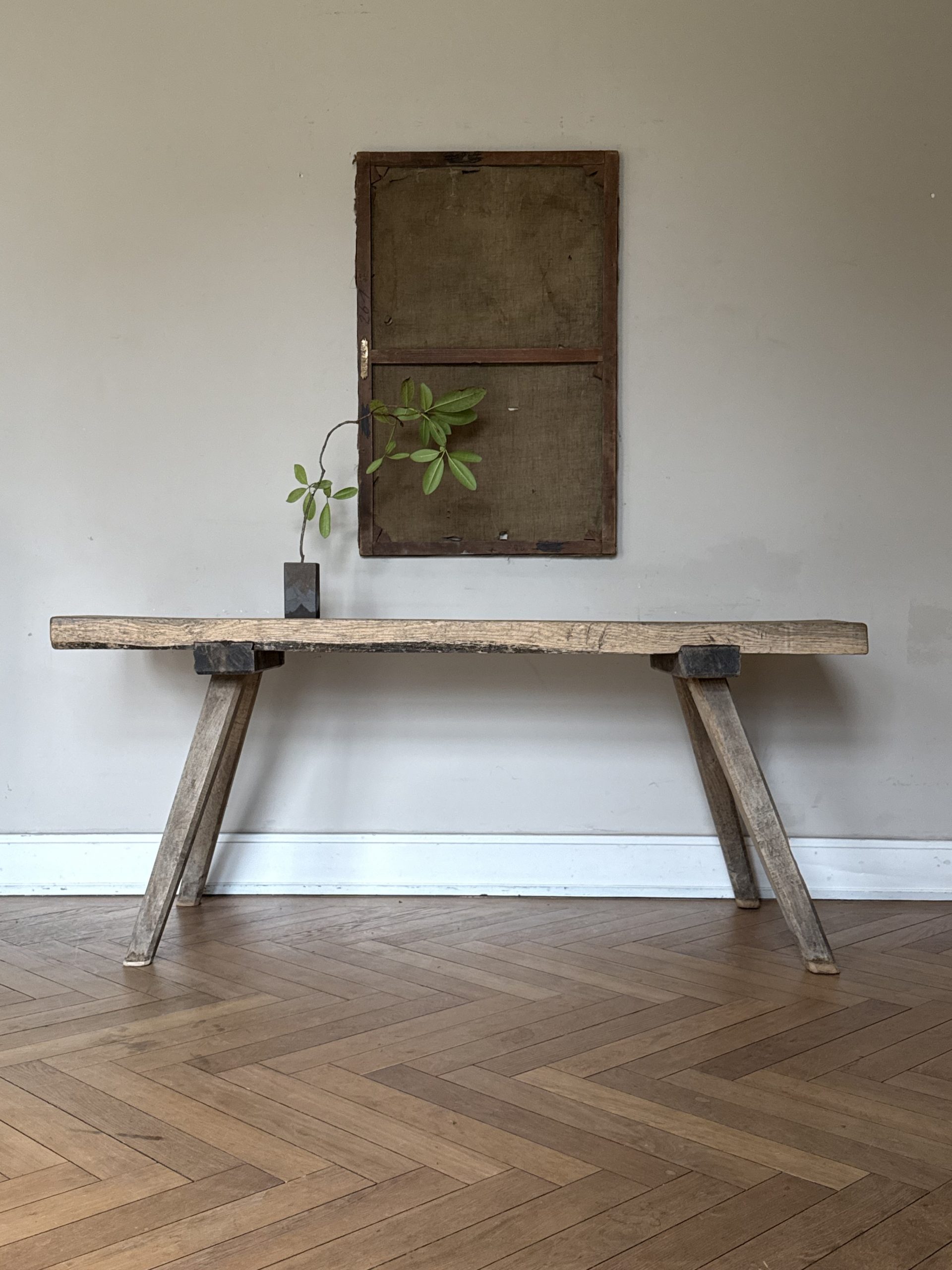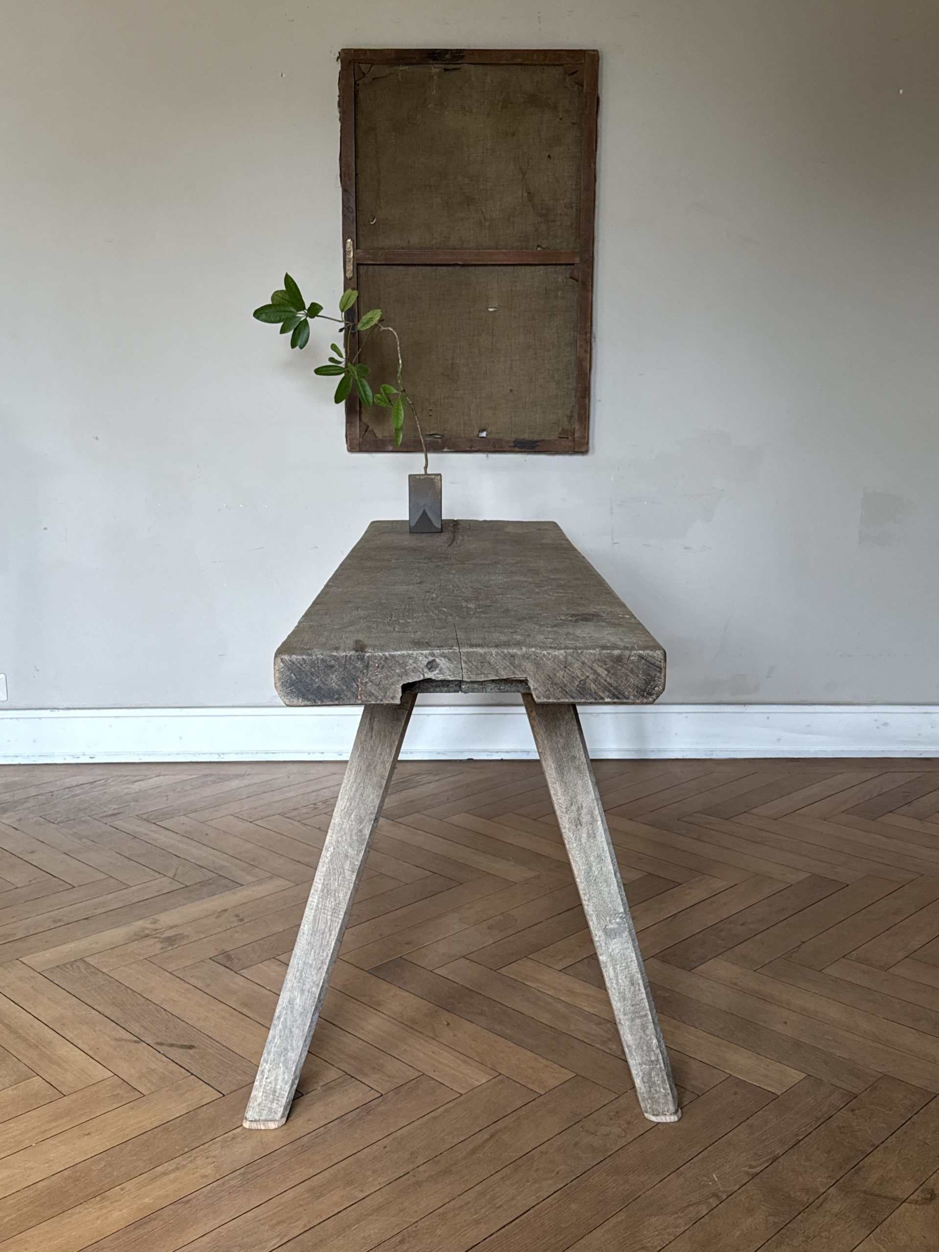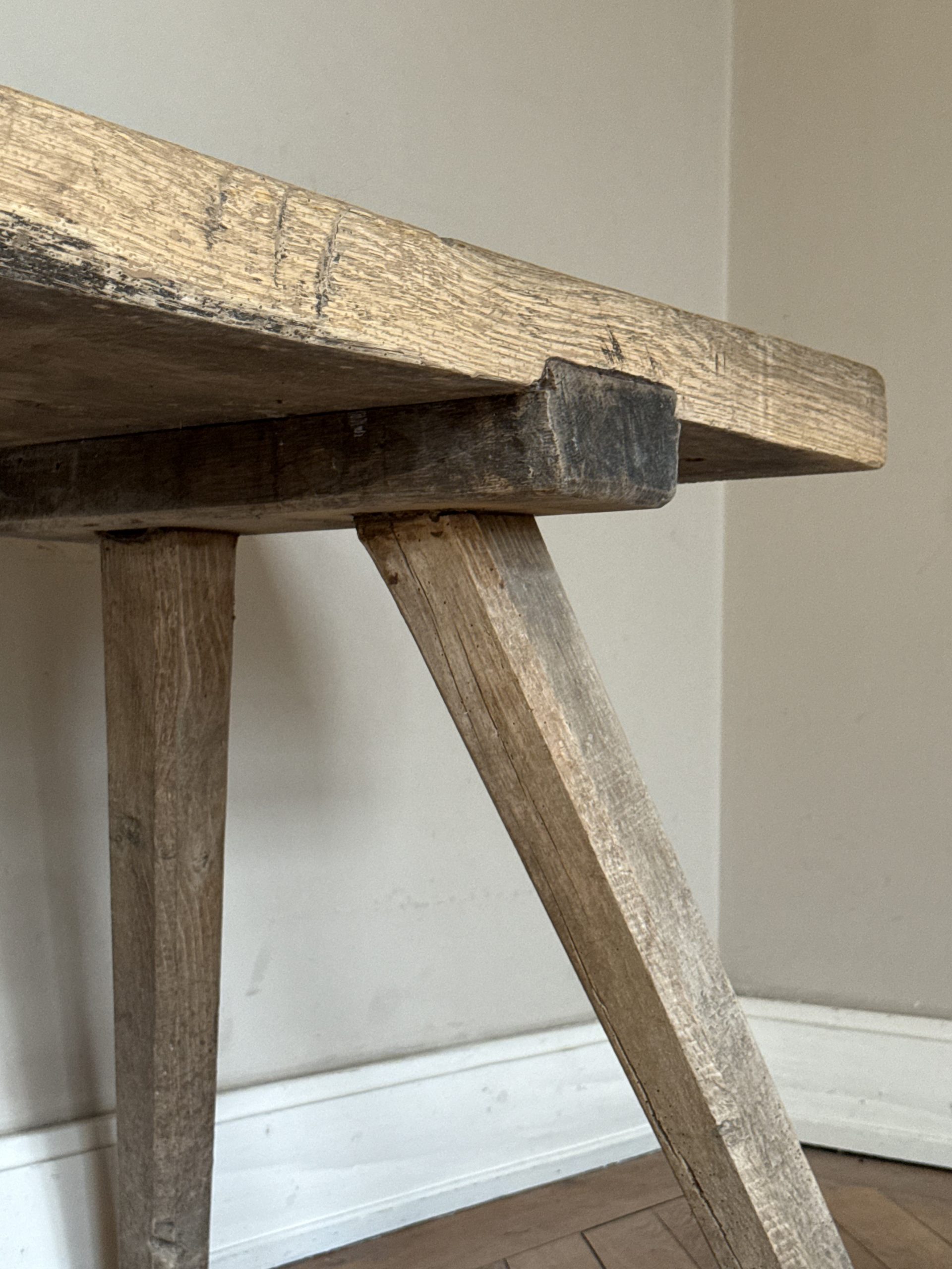 NEW ARRIVALS Rustic Oak Table Beautiful antique light oak table with signs of wear.hight 75 cm (29,52 in)depth 49 cm (19,29 in)width 180 cm (70,86 in)please contact for further info