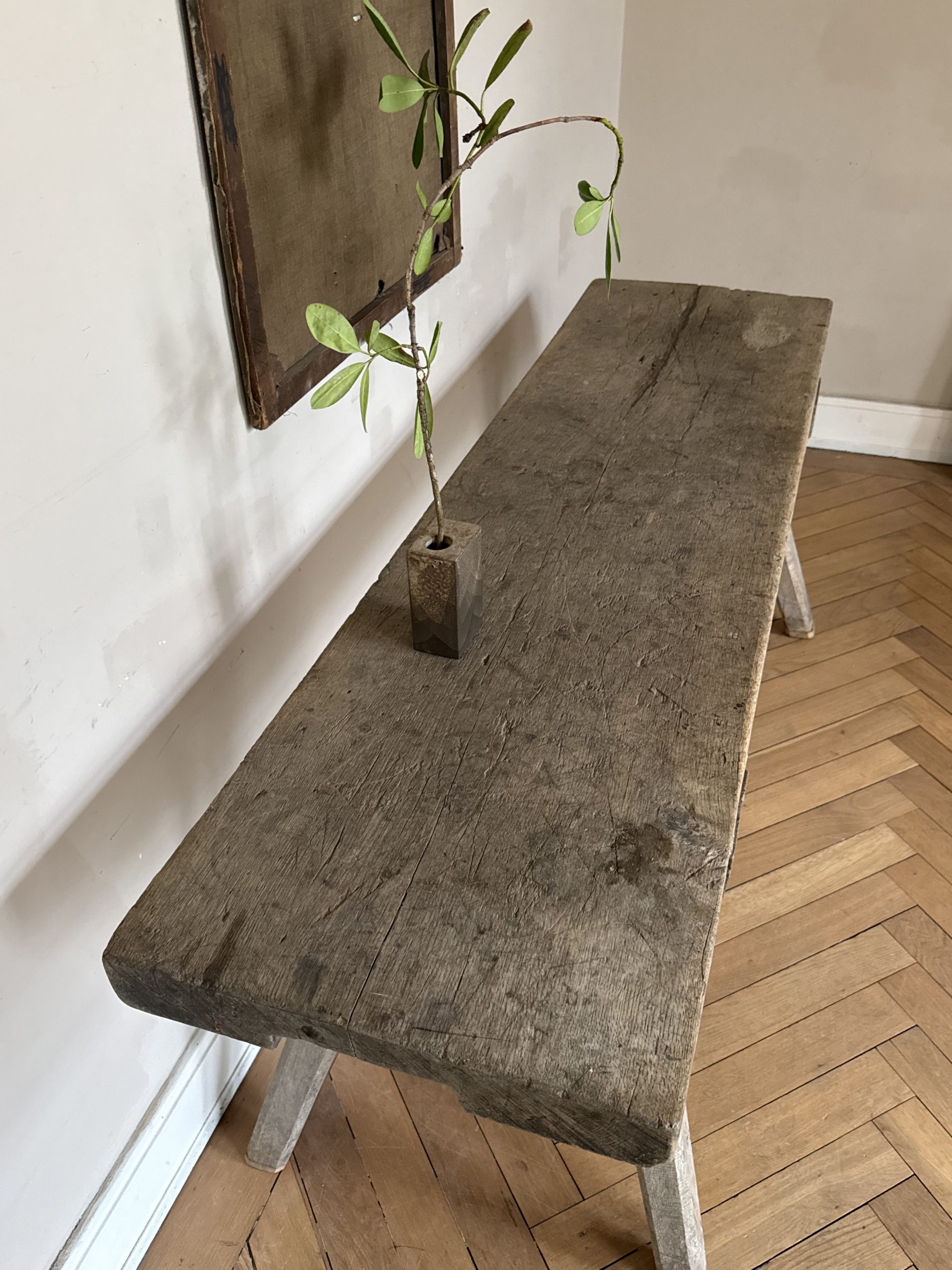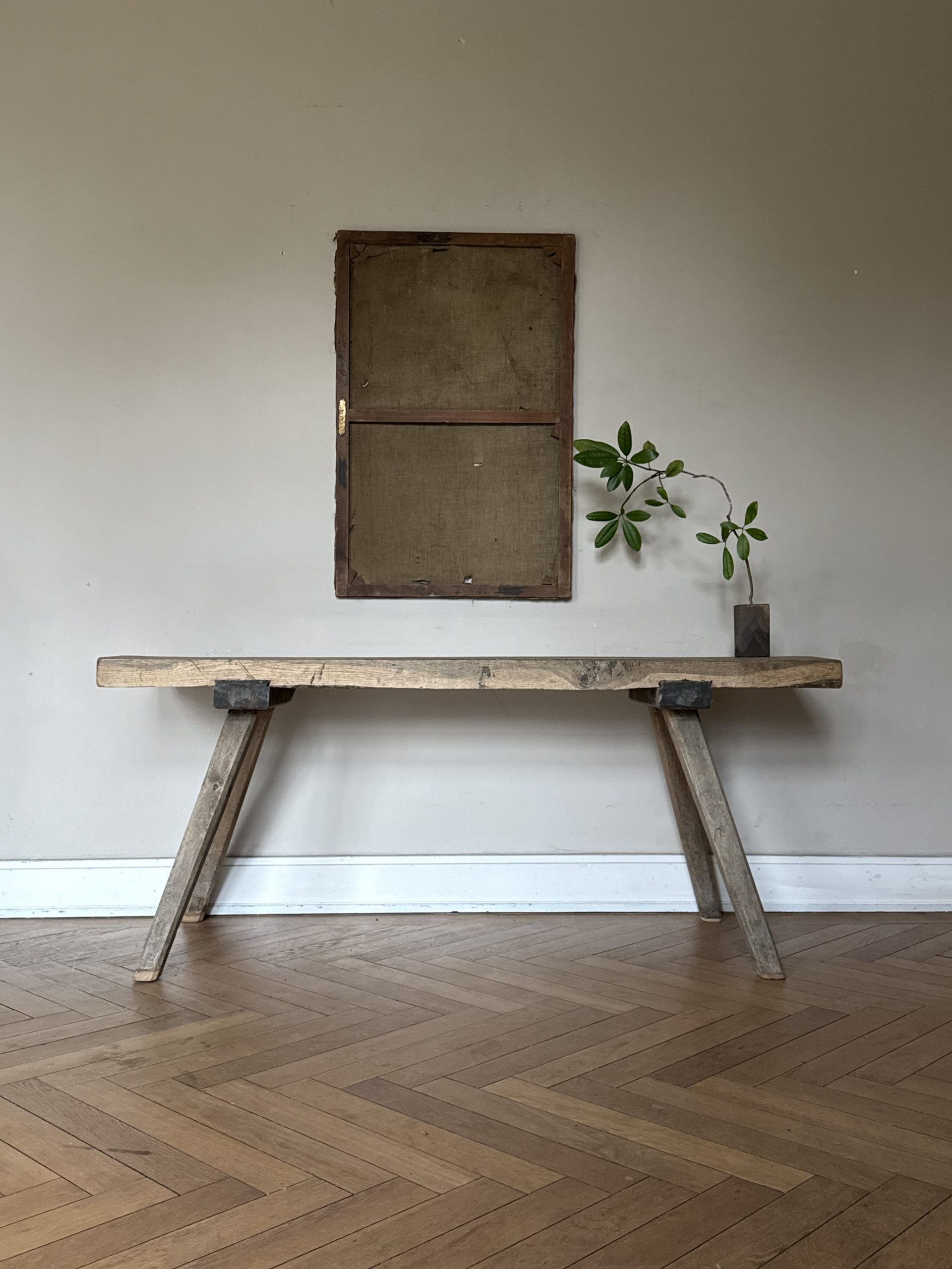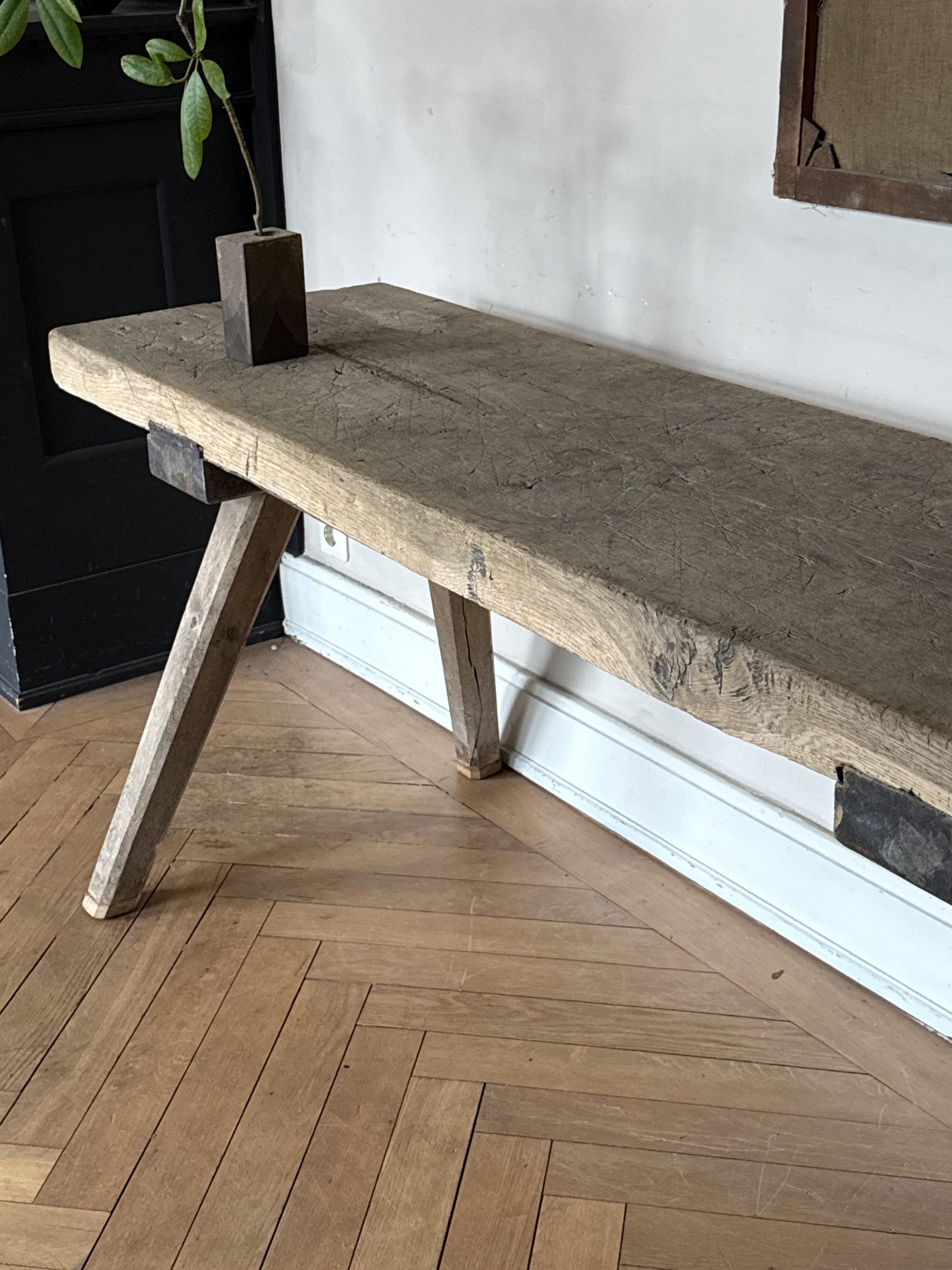 NEW ARRIVALS Rustic Oak Table Beautiful antique light oak table with signs of wear.hight 75 cm (29,52 in)depth 49 cm (19,29 in)width 180 cm (70,86 in)please contact for further info