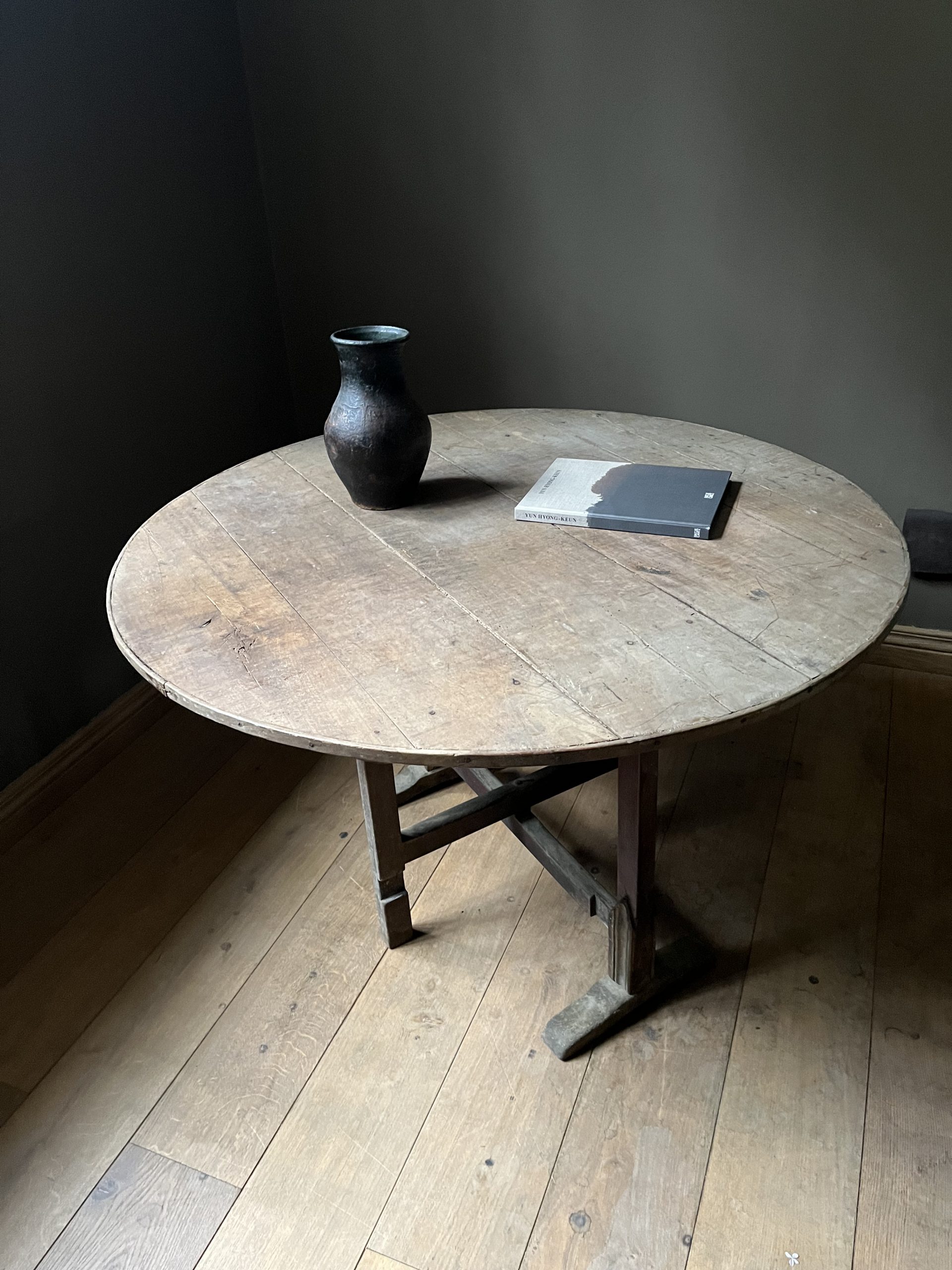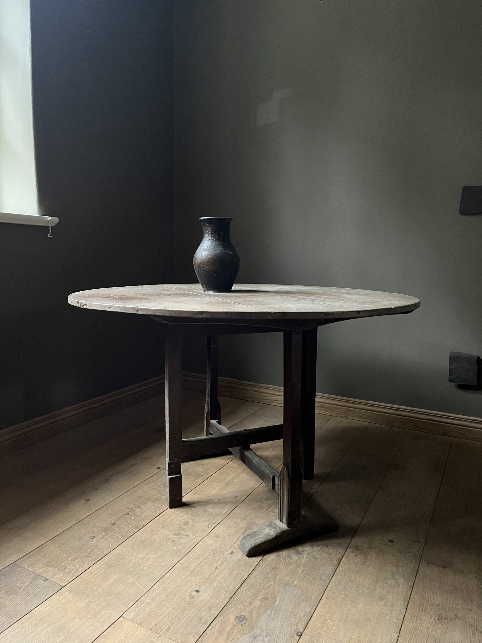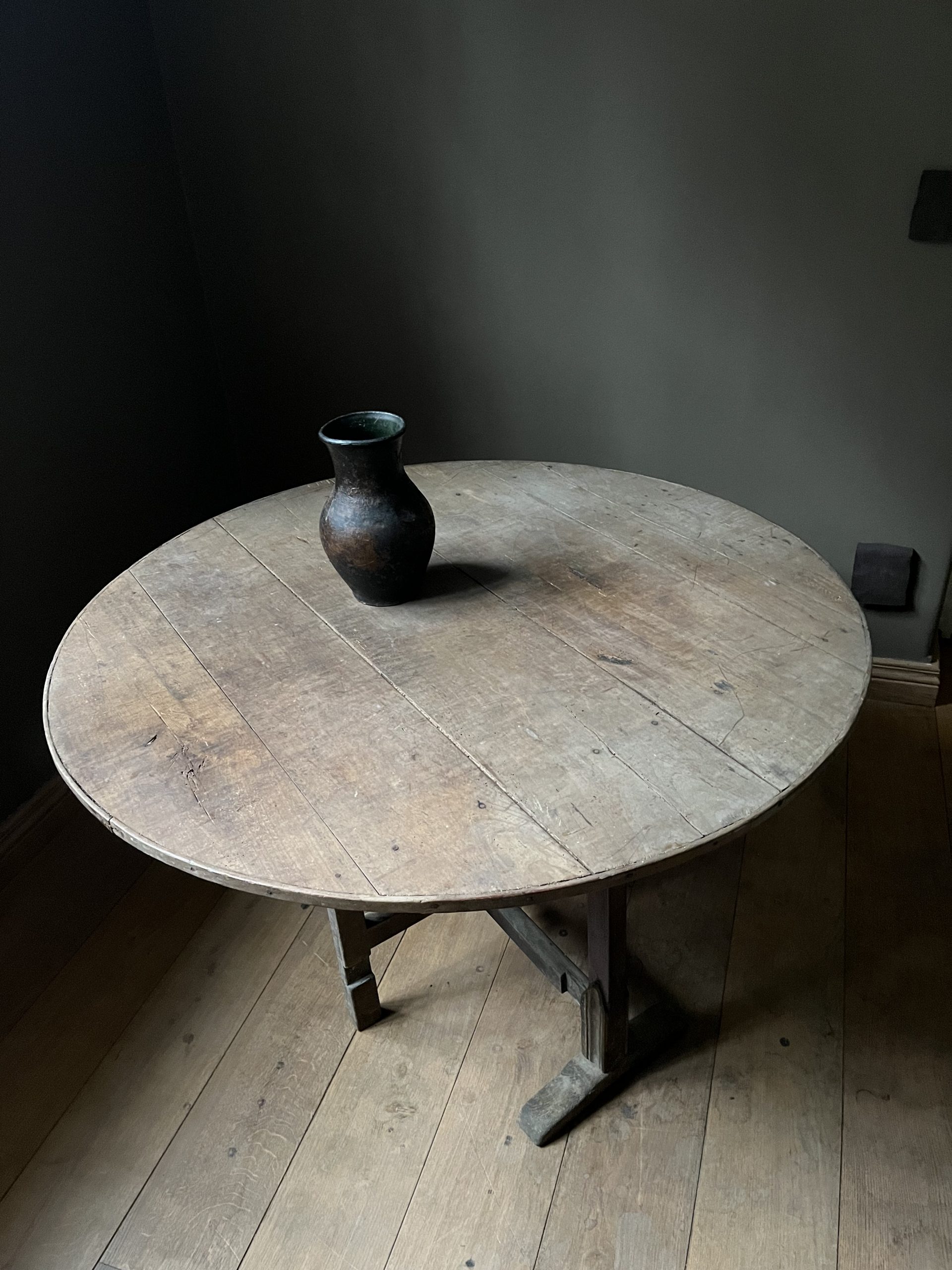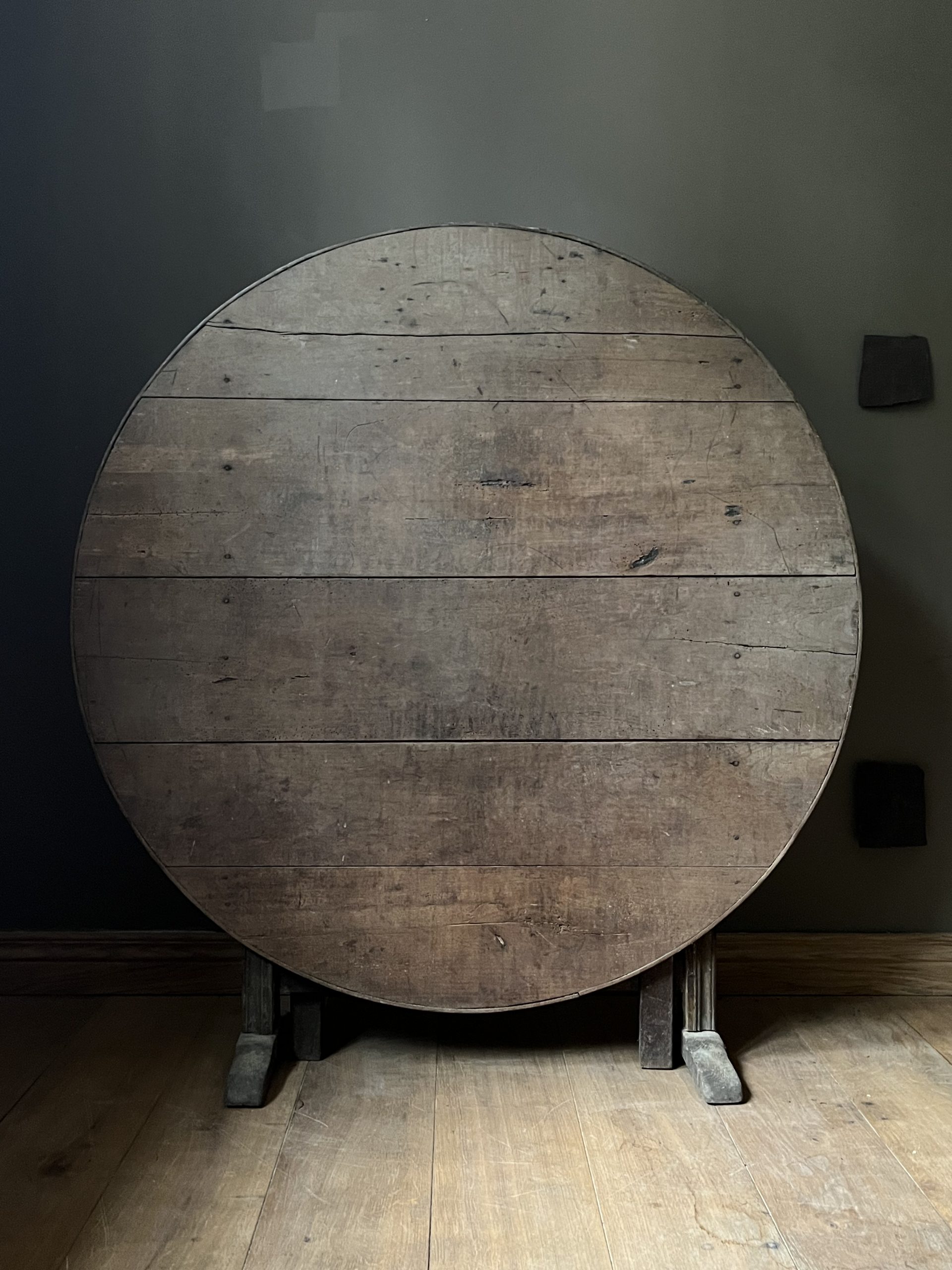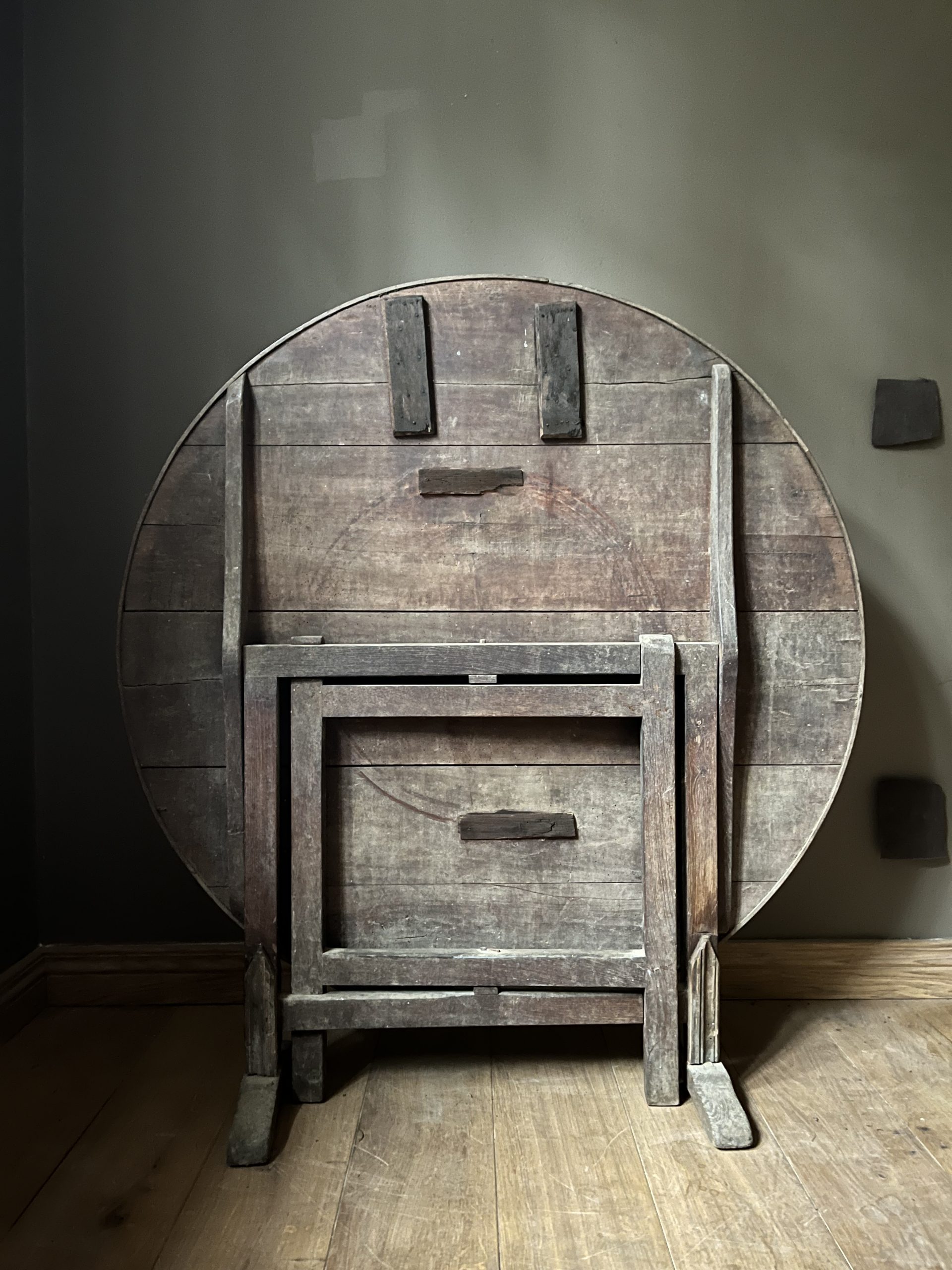 NEW ARRIVALS Large Folding Table Lovely Belgian antique folding table with a wonderful patina that speak to its rich history.hight 70 cm (27,55 in)diameter 113 cm (44,48 in)please contact for further info