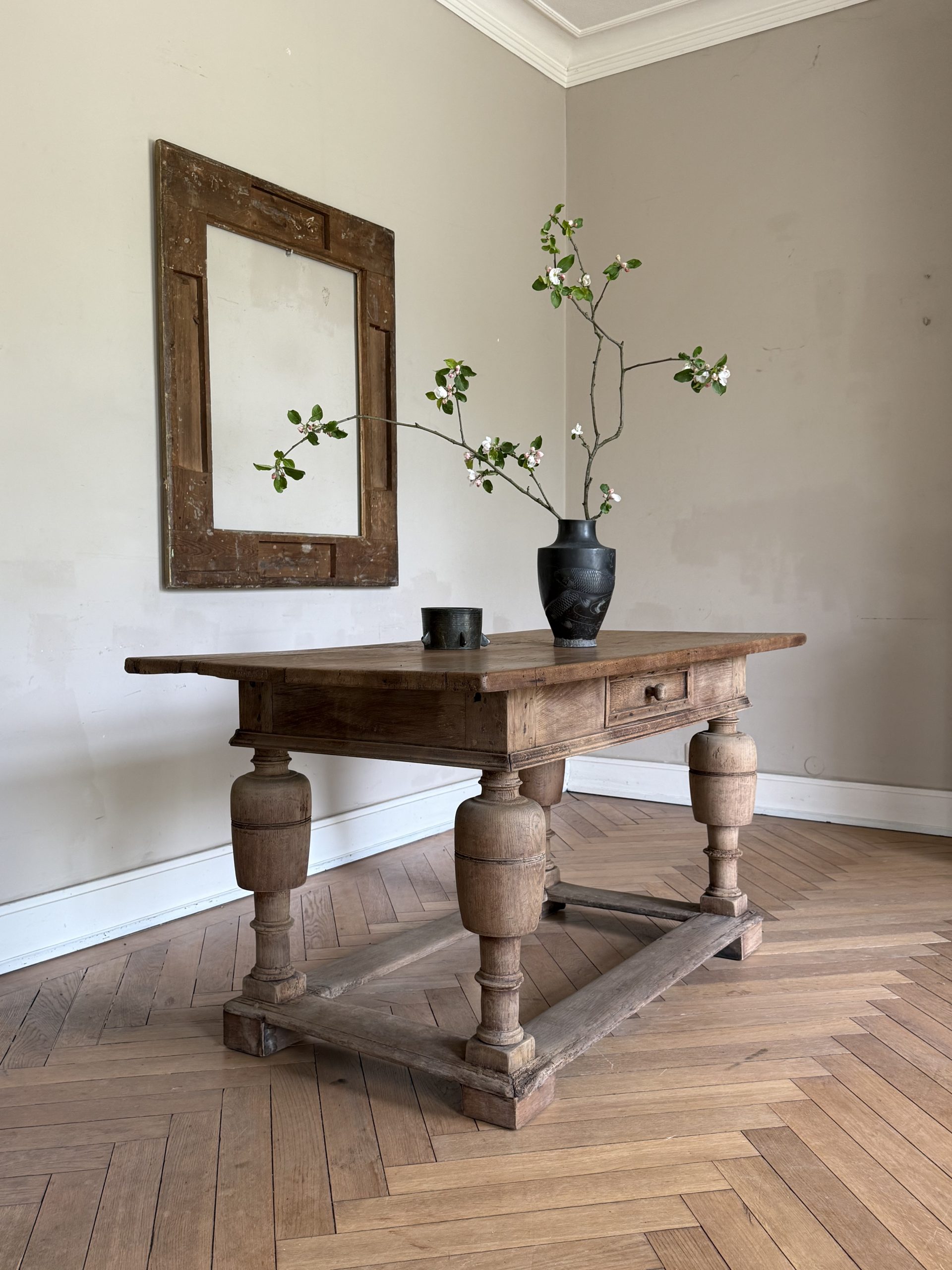 NEW ARRIVALS 18th Century Oak Refectory Table Outstanding light oak baroque table from around 1750 with baluster legs.hight 79 cm (31,10 in)depth 80 cm (31,49 in)width 156 cm (61,41 in)please contact for further info