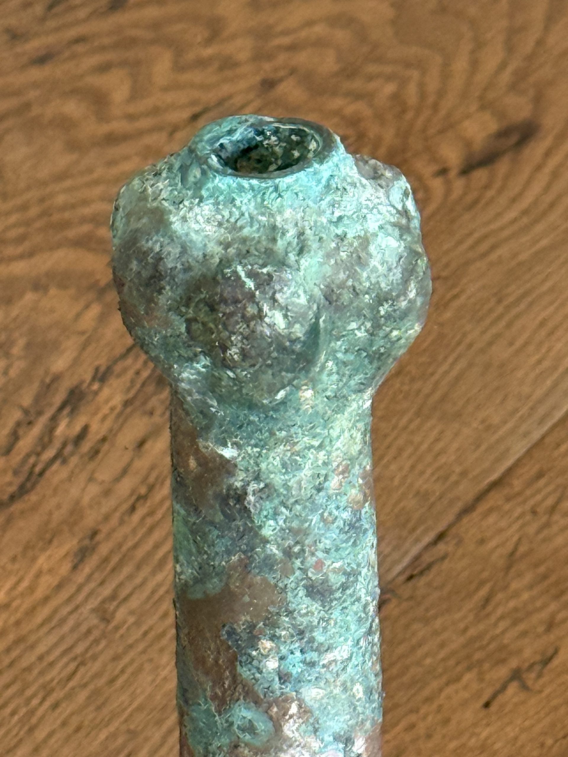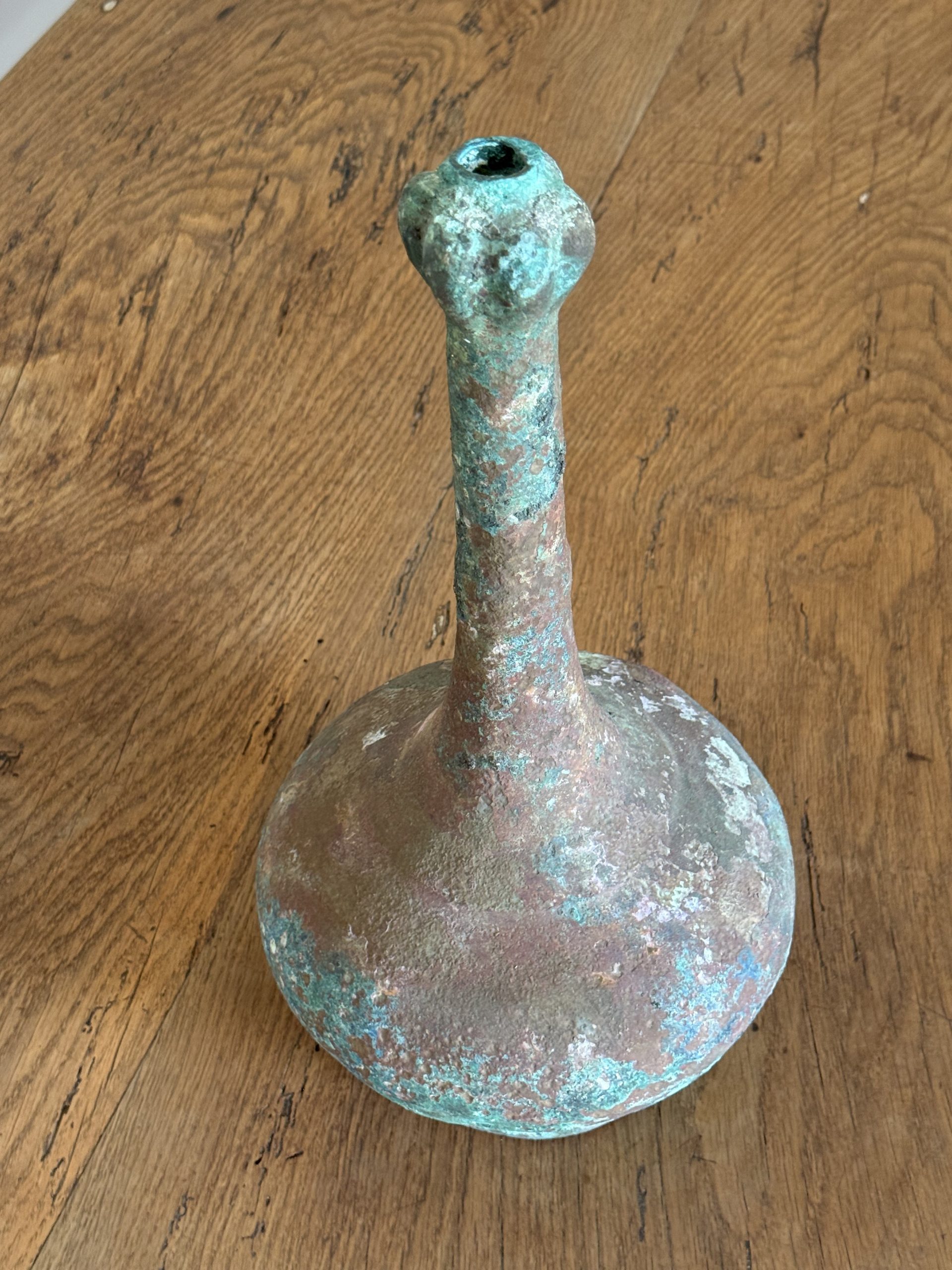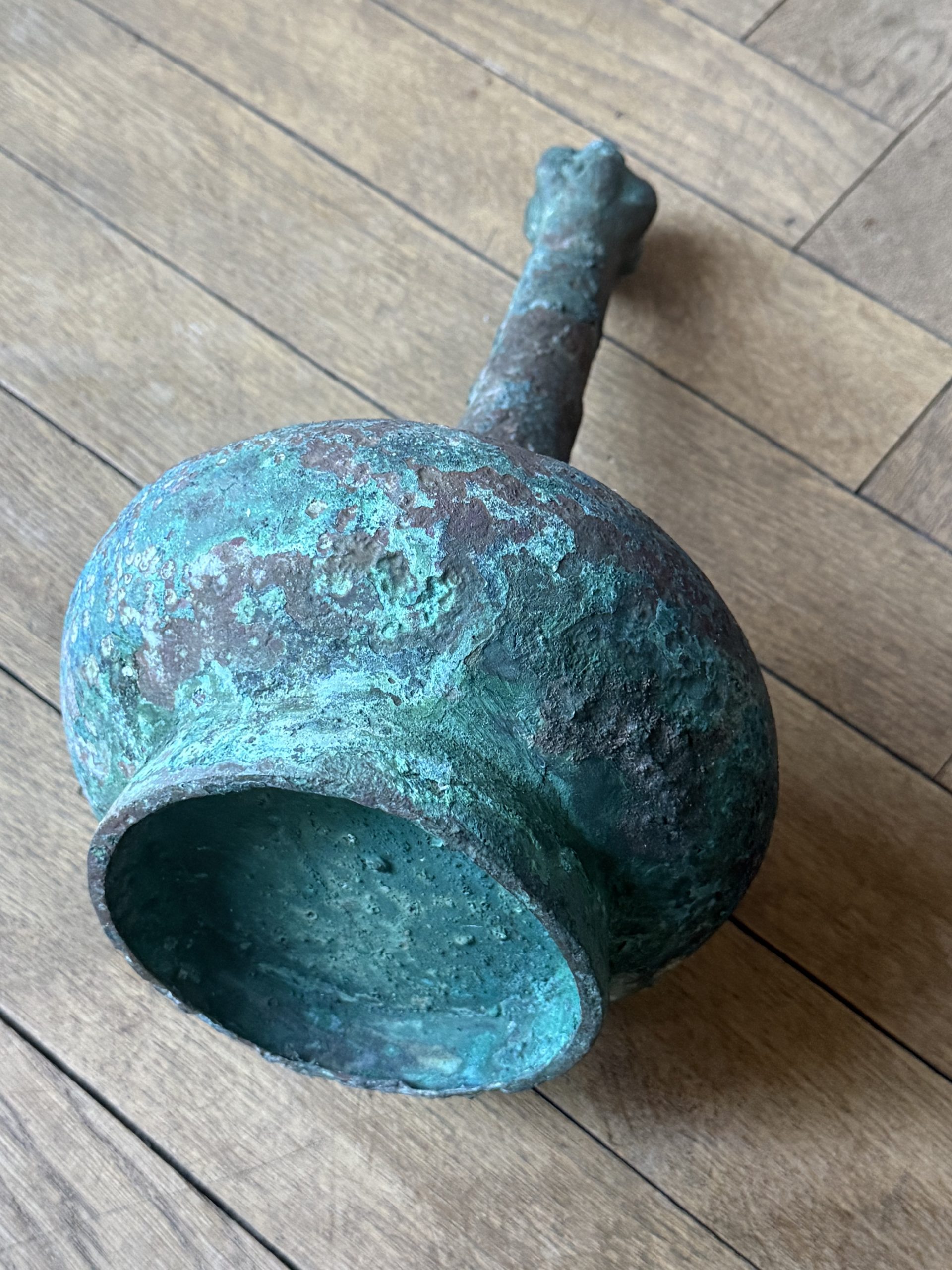 NEW ARRIVALS Bronze Bottle II - Han Dynasty (207 B.C. - 9 A.D.) A large bronze garlic-shaped bottle from the western Han Dynasty.hight 38 cm (14,96 in)please contact for further info